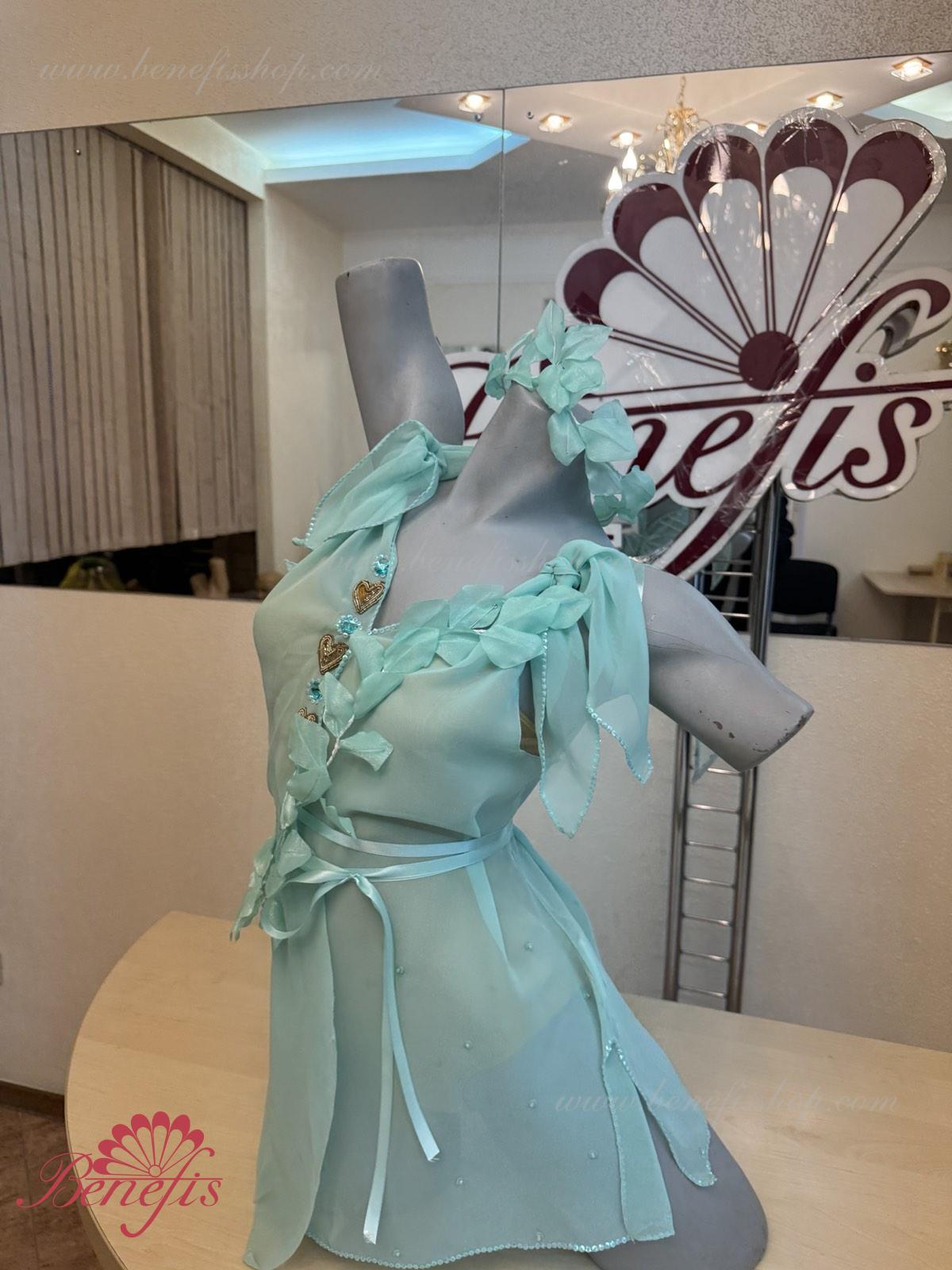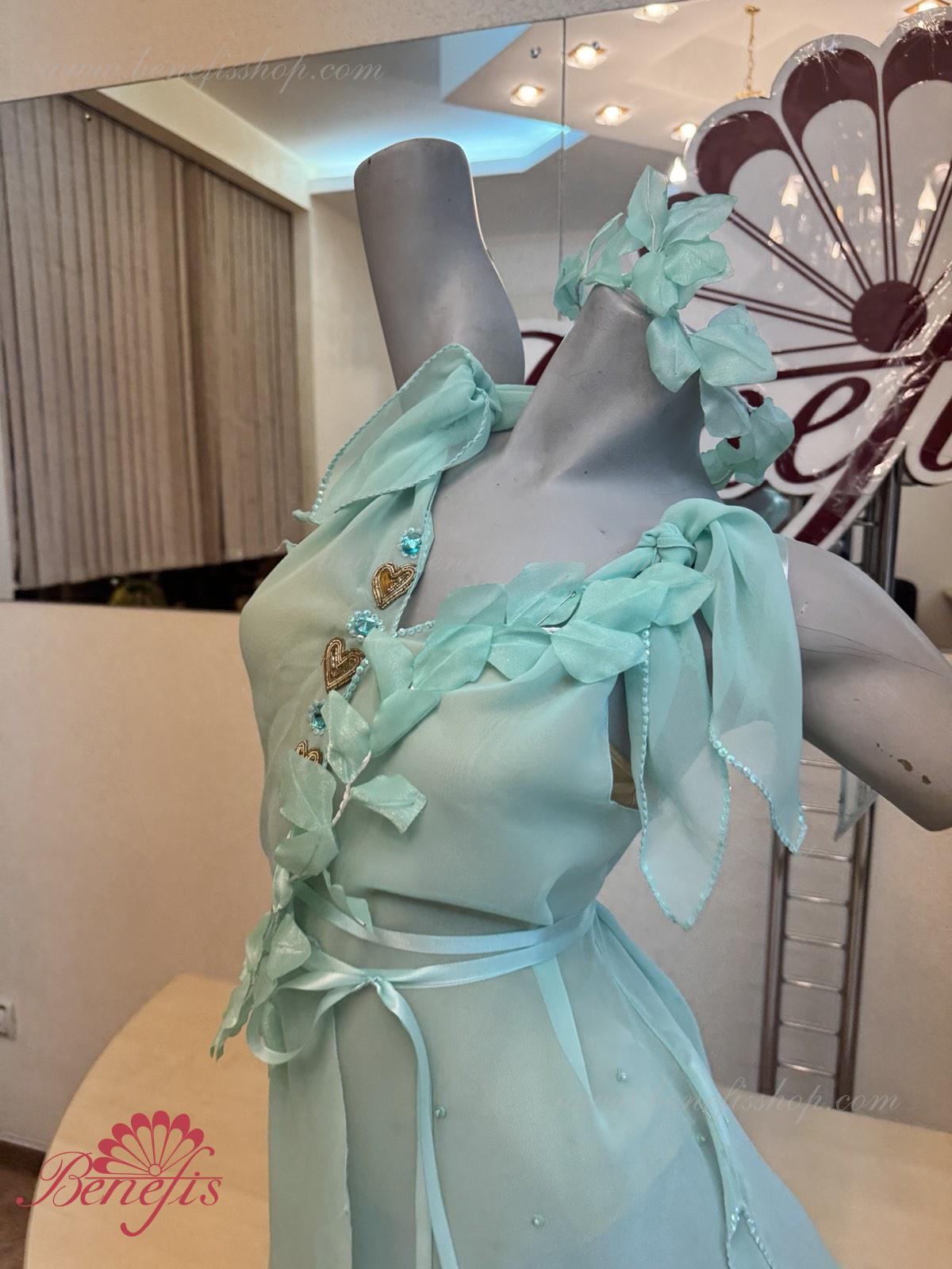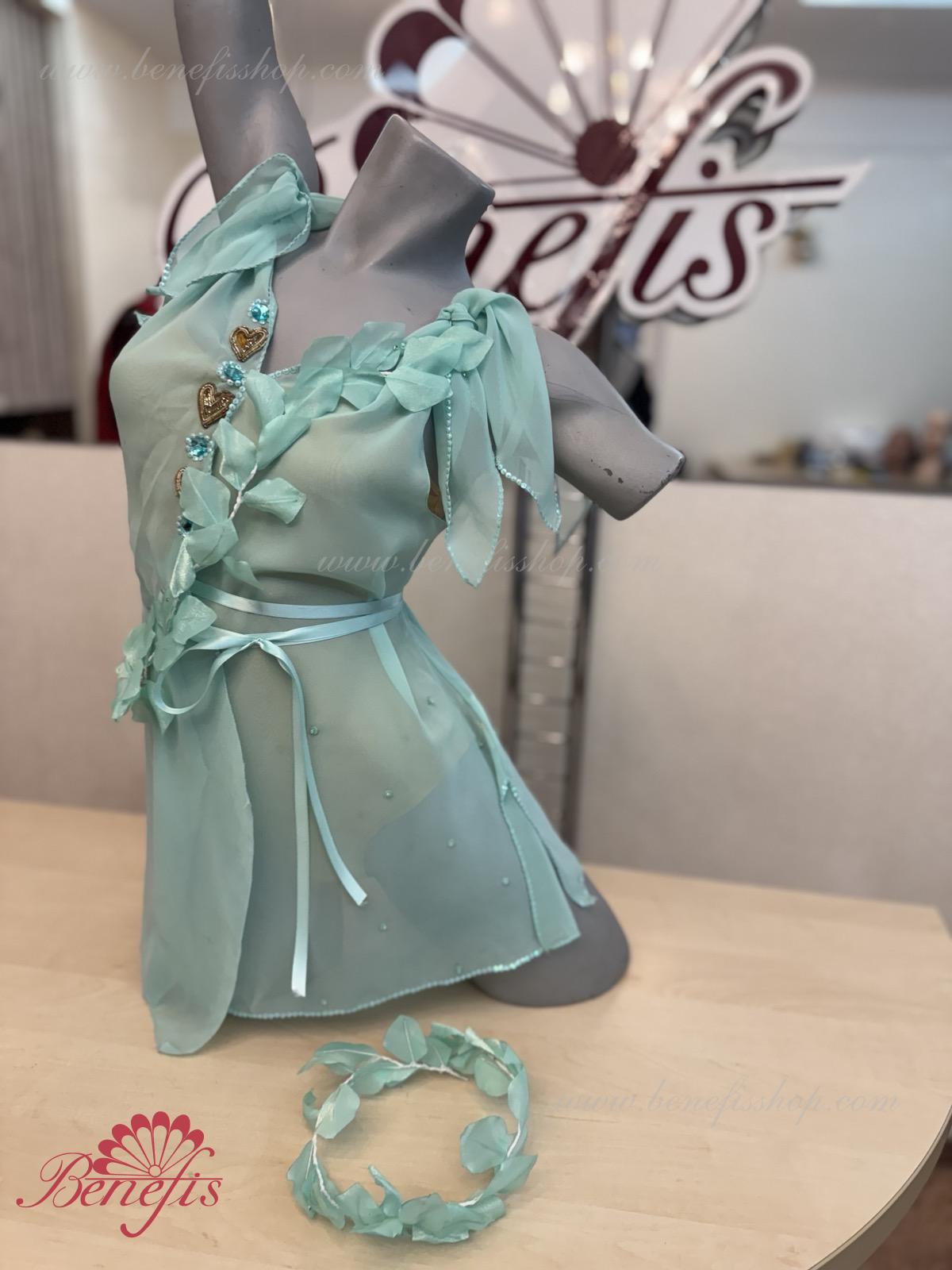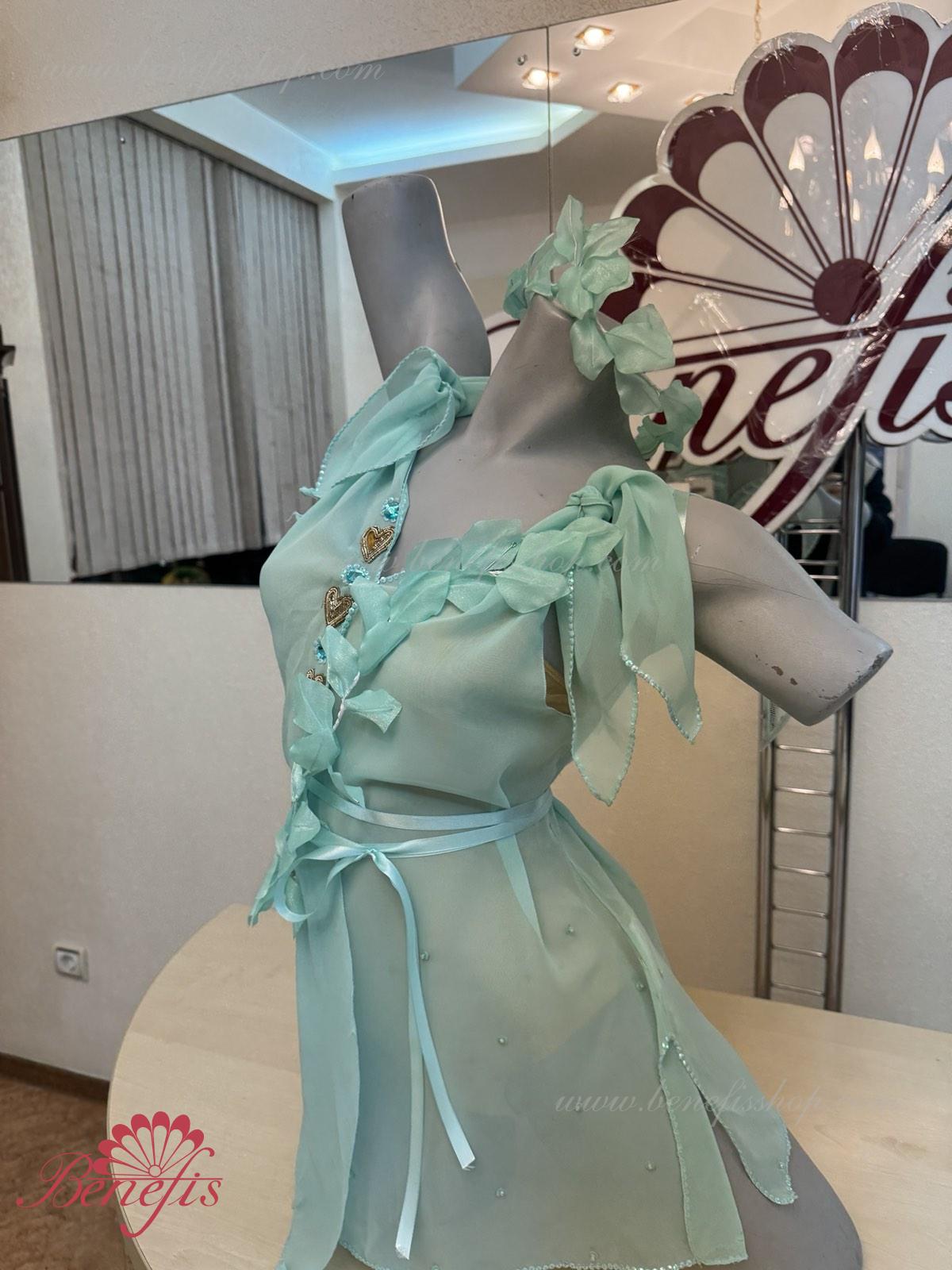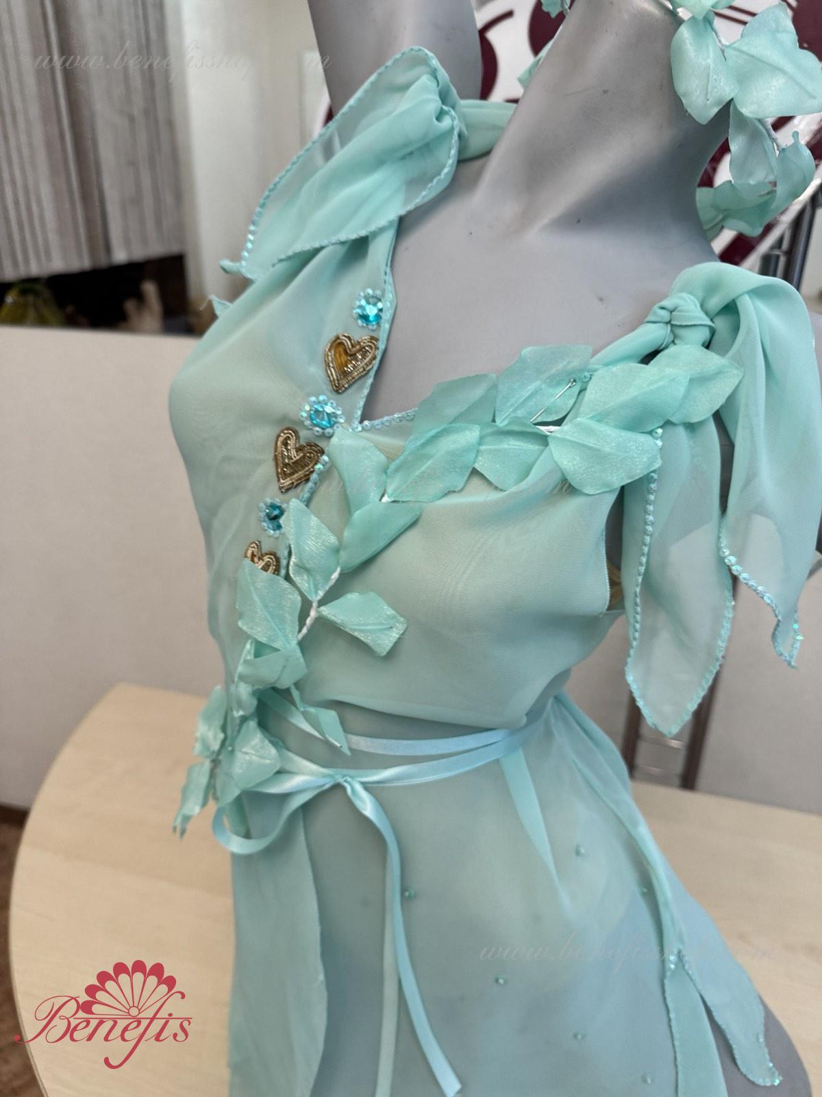 Pentru executarea costumului este folosit chifon ce usor isi revarsa culoarea si accorda costumului putin volum.