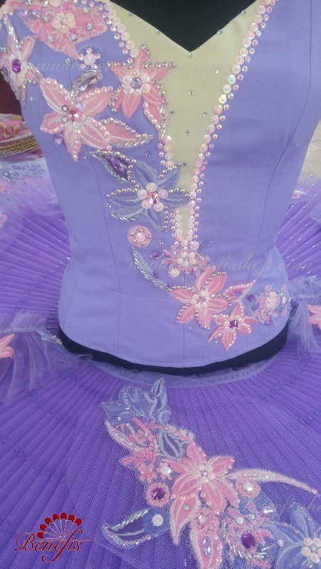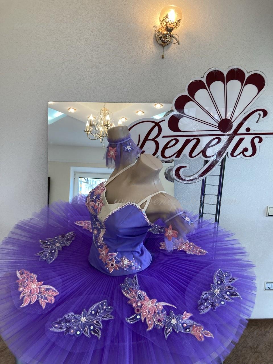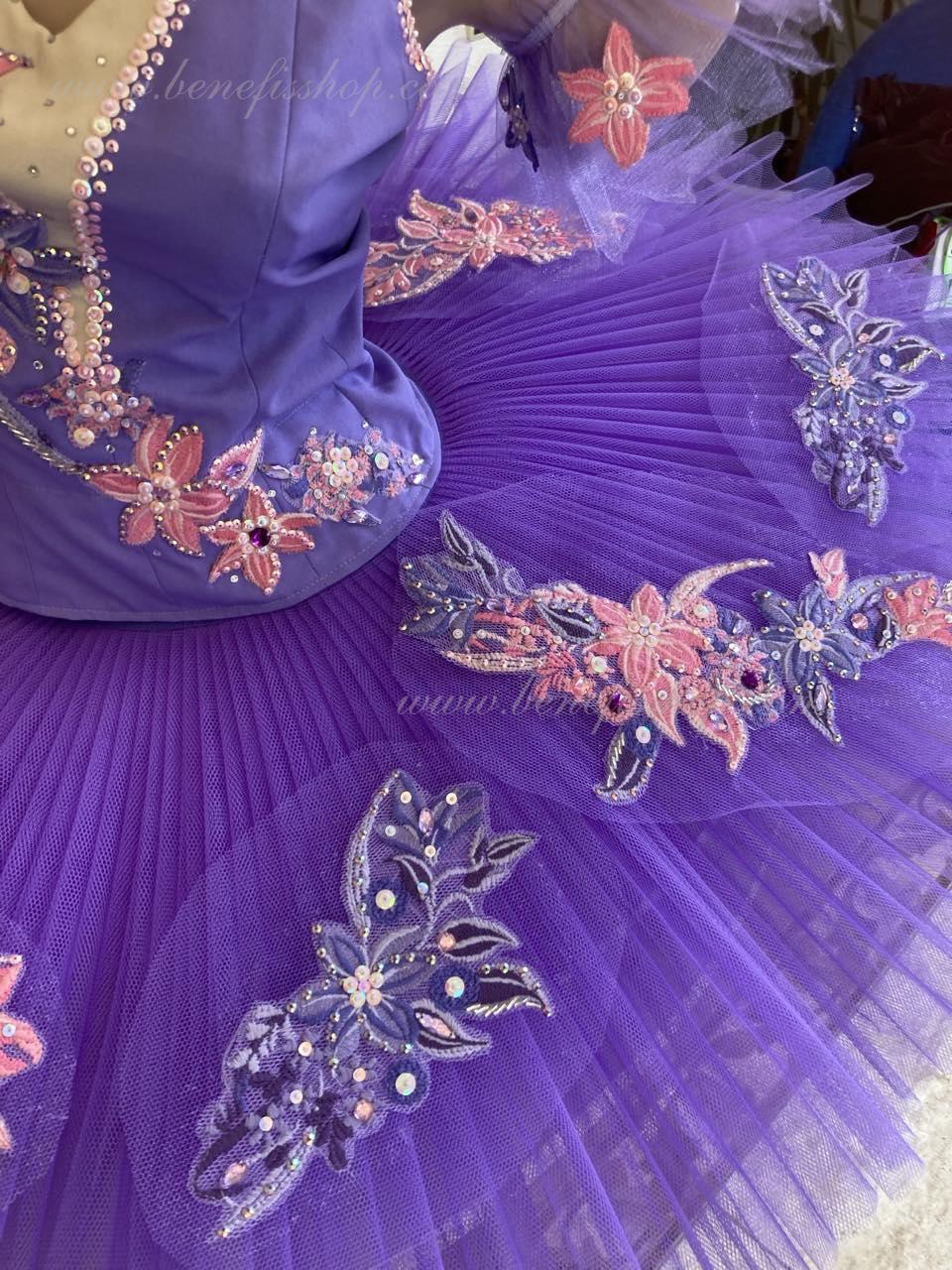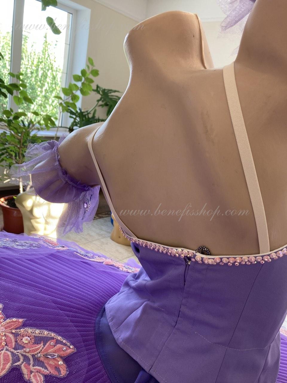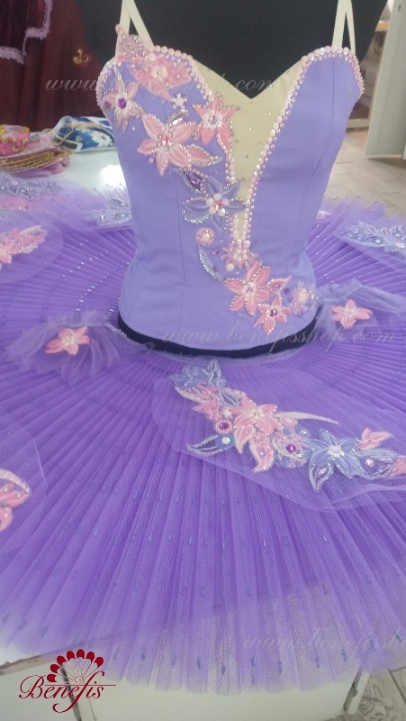 Este confectionat in baza fustei de balet profesioniste #T0001 (vezi compartimentul „Fuste de balet de baza”). Costumul este fabricat dintr-o tesatura de culoare lilicie si este decorata in culoarea tesaturii. In calitate de decor pot fi folosite margele marunte de sticla, paiete si strase argintii, aplicatii in forma de flori.