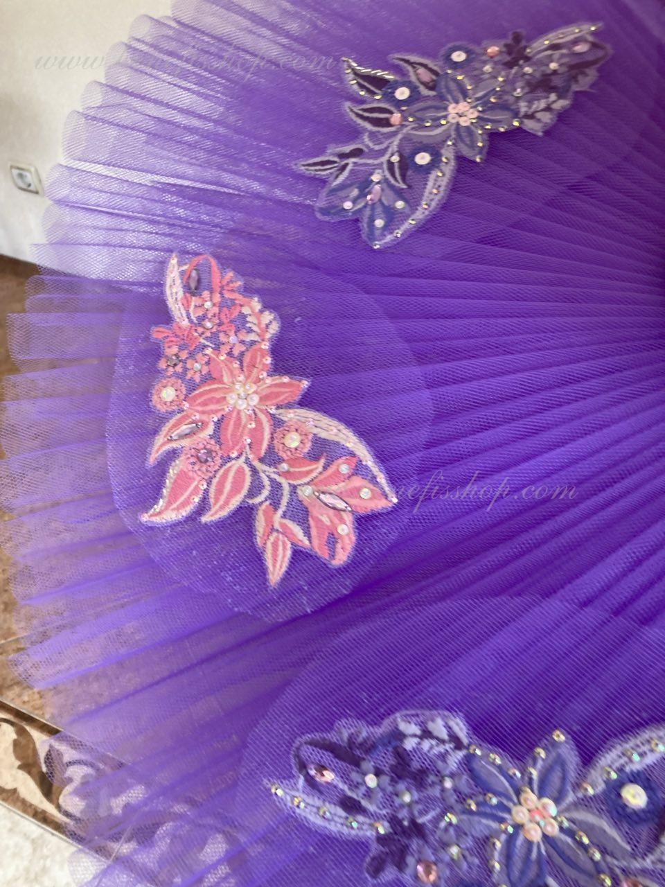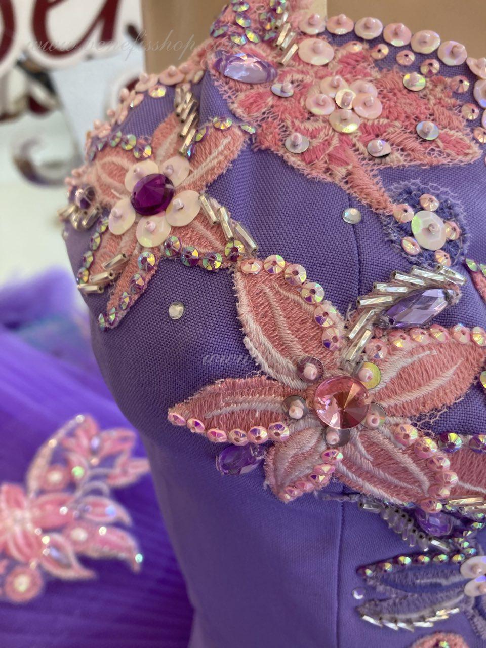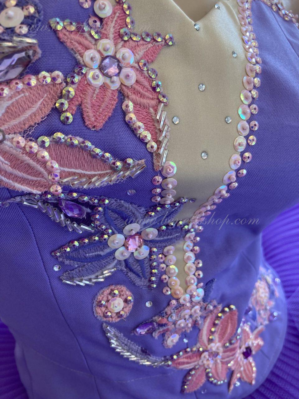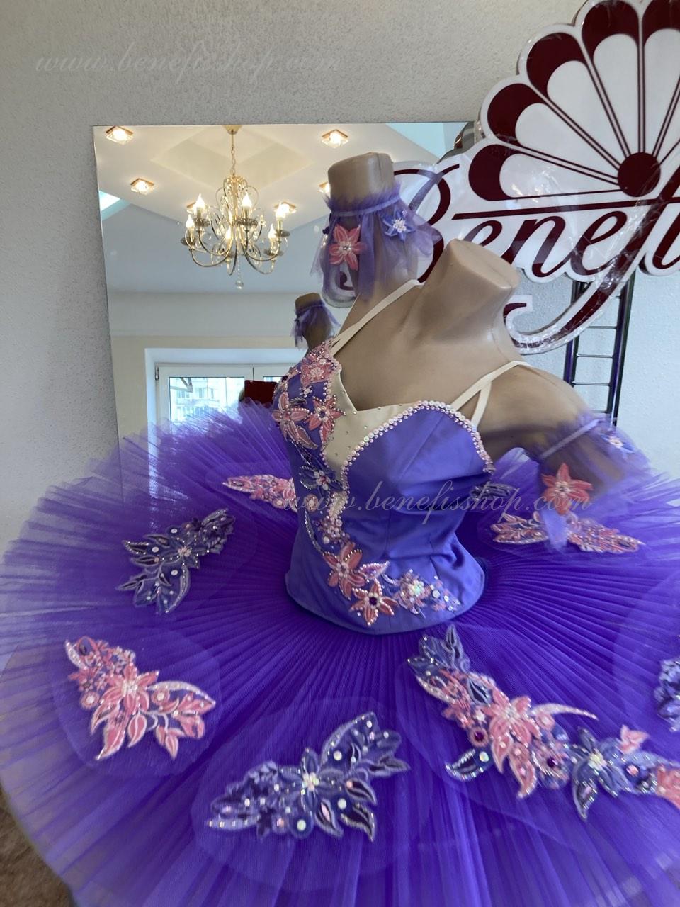 Este confectionat in baza fustei de balet profesioniste #T0001 (vezi compartimentul „Fuste de balet de baza”). Costumul este fabricat dintr-o tesatura de culoare lilicie si este decorata in culoarea tesaturii. In calitate de decor pot fi folosite margele marunte de sticla, paiete si strase argintii, aplicatii in forma de flori.