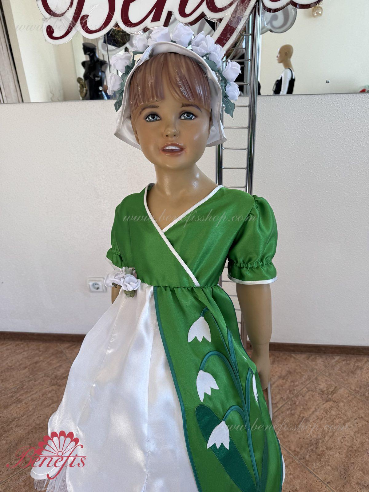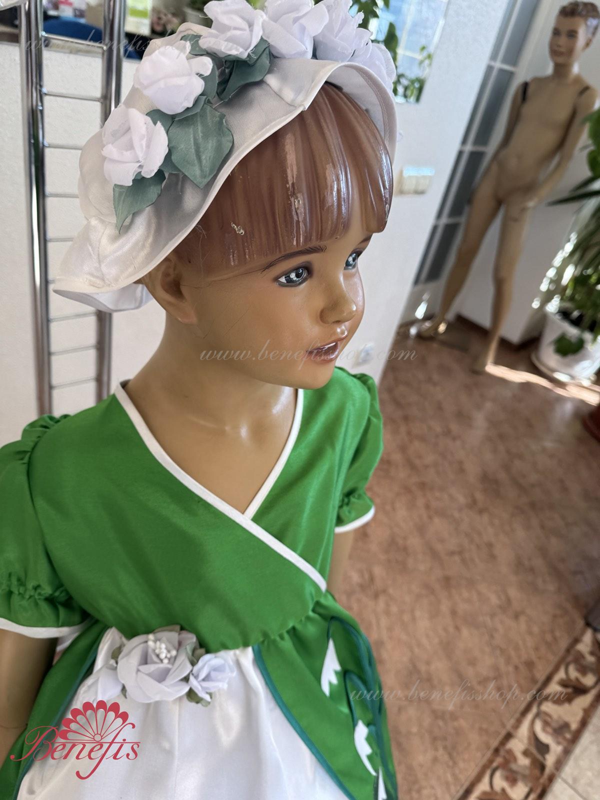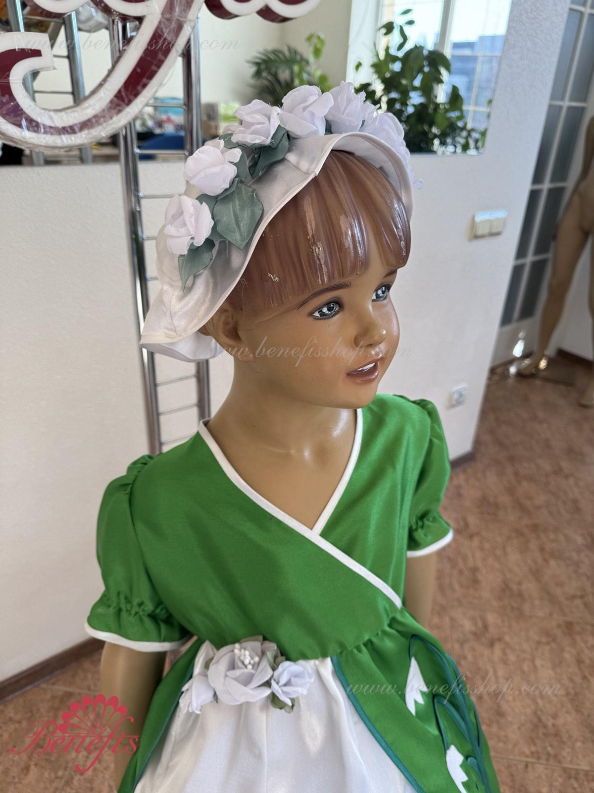 Detalii: rochie, articol decorativ pentru cap. Fabricat din satin.