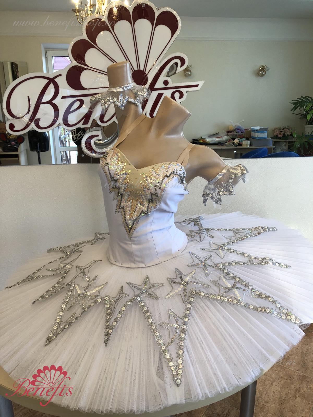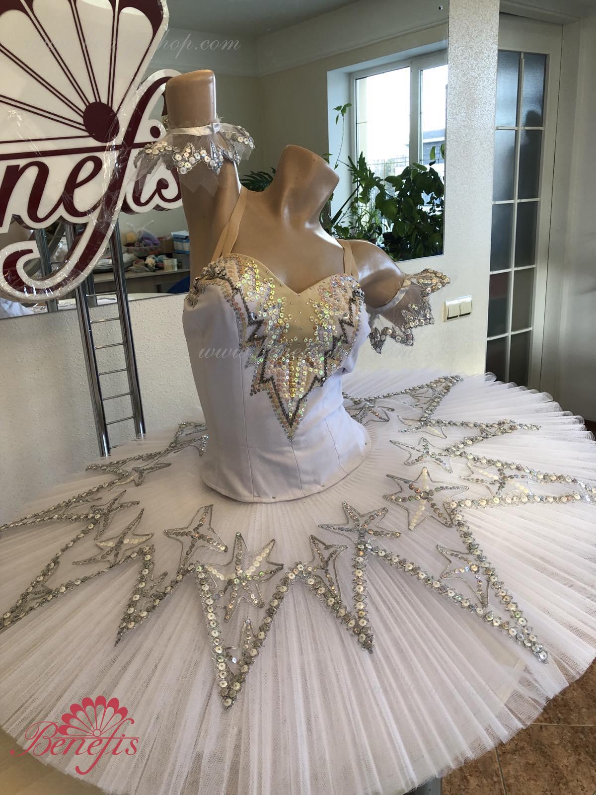 Costum de scena profesionist. Este confectionat in baza fustei de balet profesioniste #T0001B (vezi compartimentul „Fuste de balet de baza si pentru repetitii”).