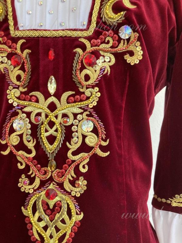 Jacheta este confectionata din catifea elastica densa cu insertie Alba crep-sifon pe piept si cu maneci crep –sifon sub cot.