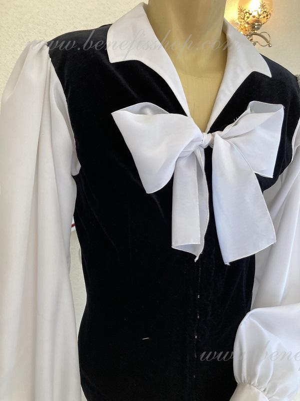 Această tunică este confecționată în negru, cu mâneci largi albe și guler răsturnat.