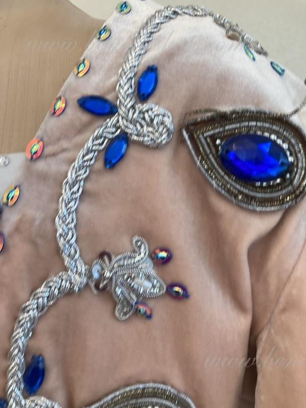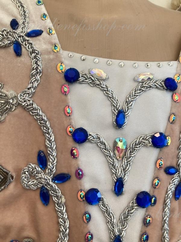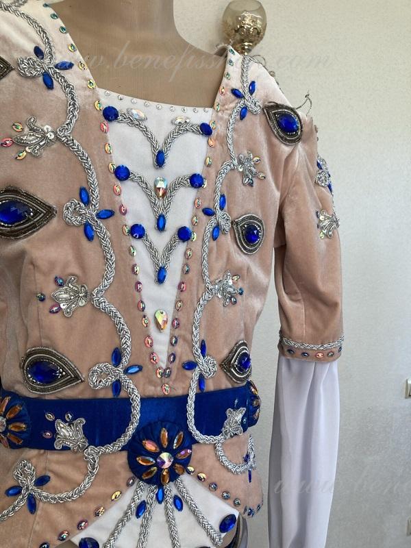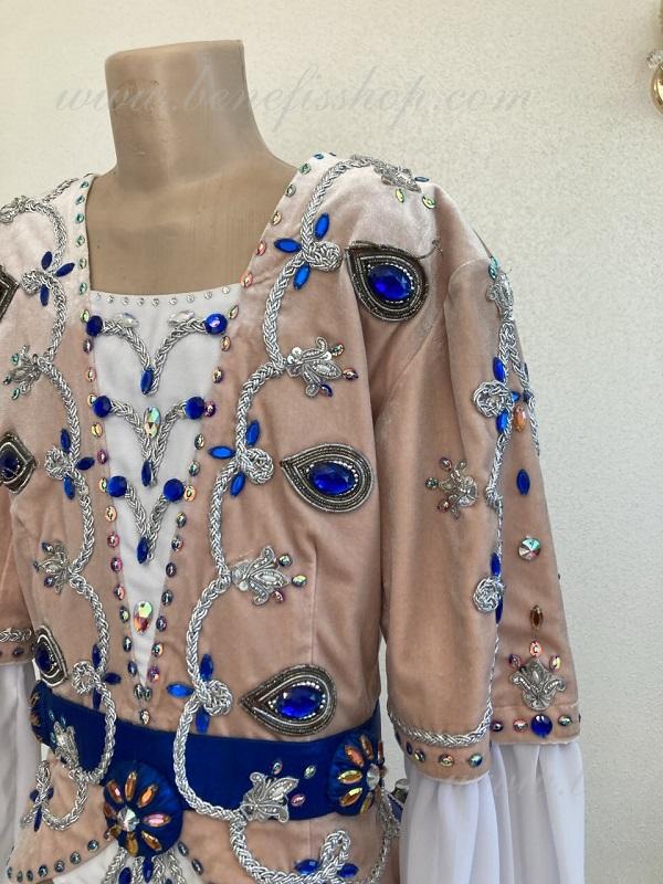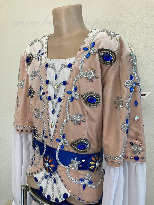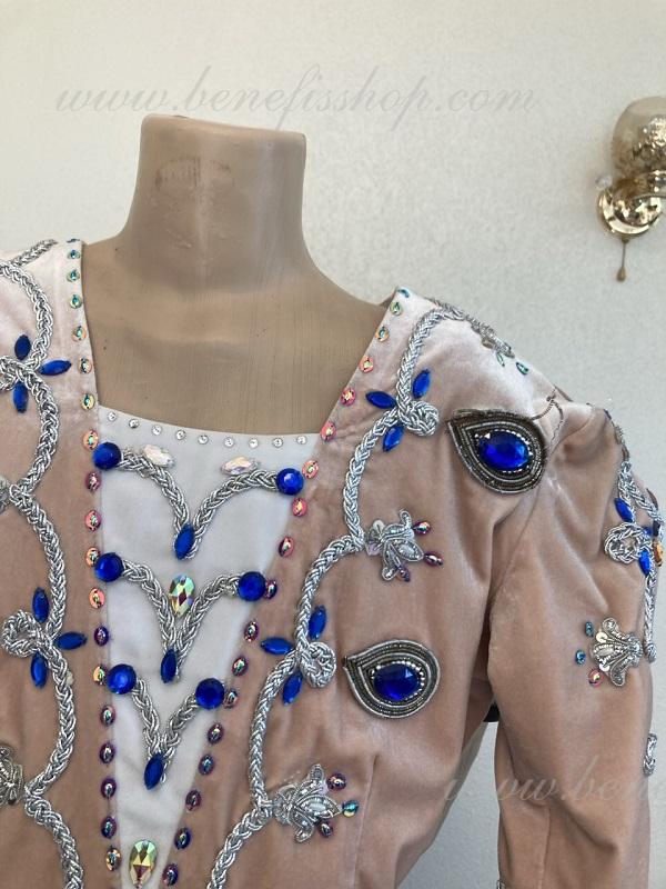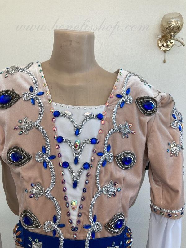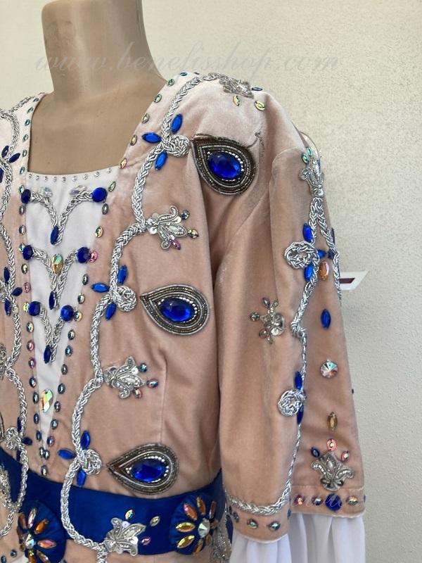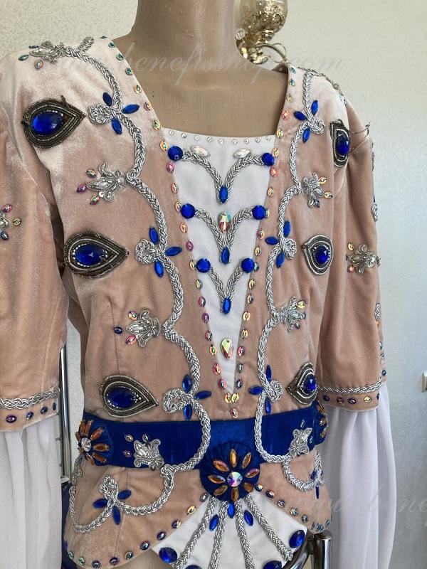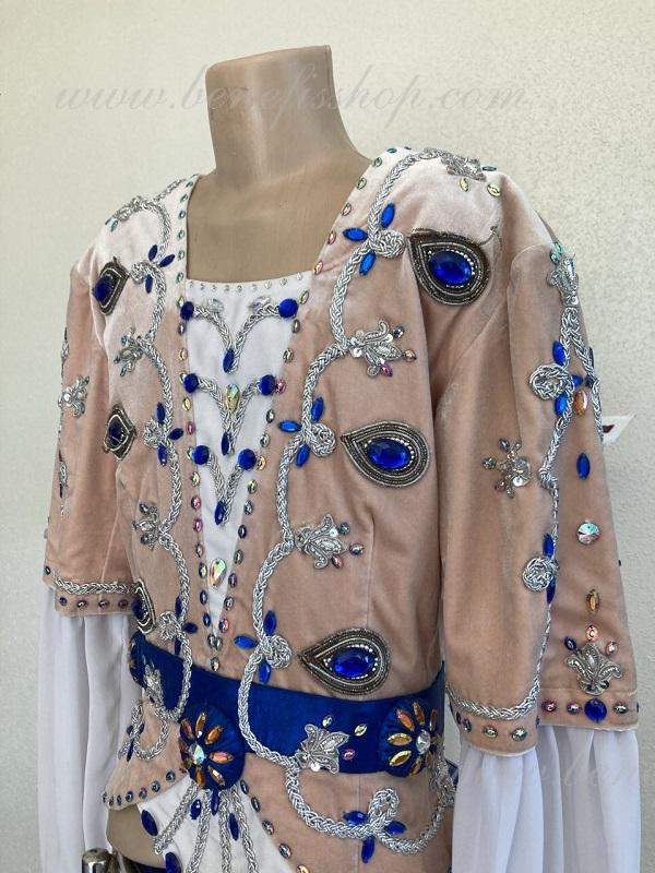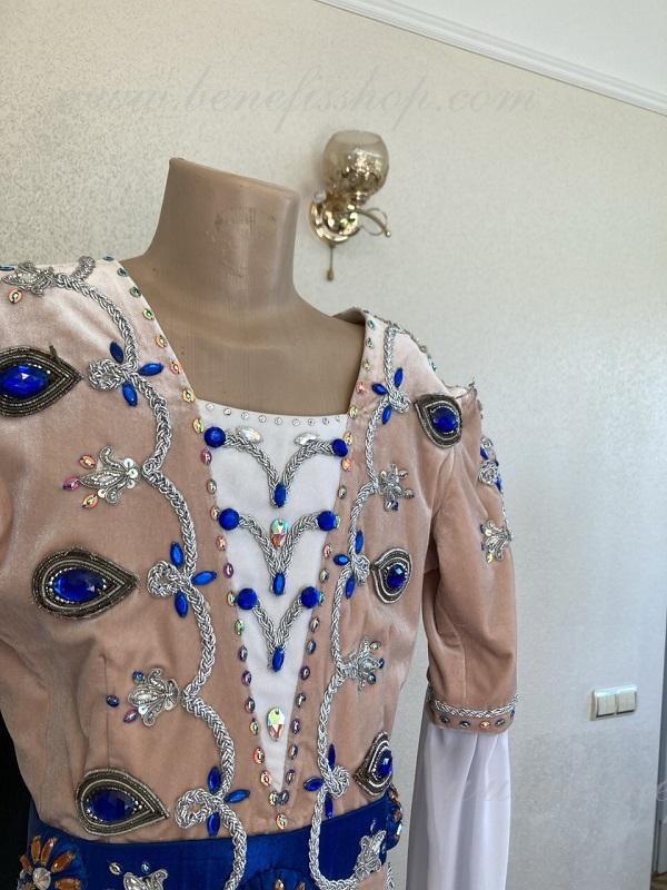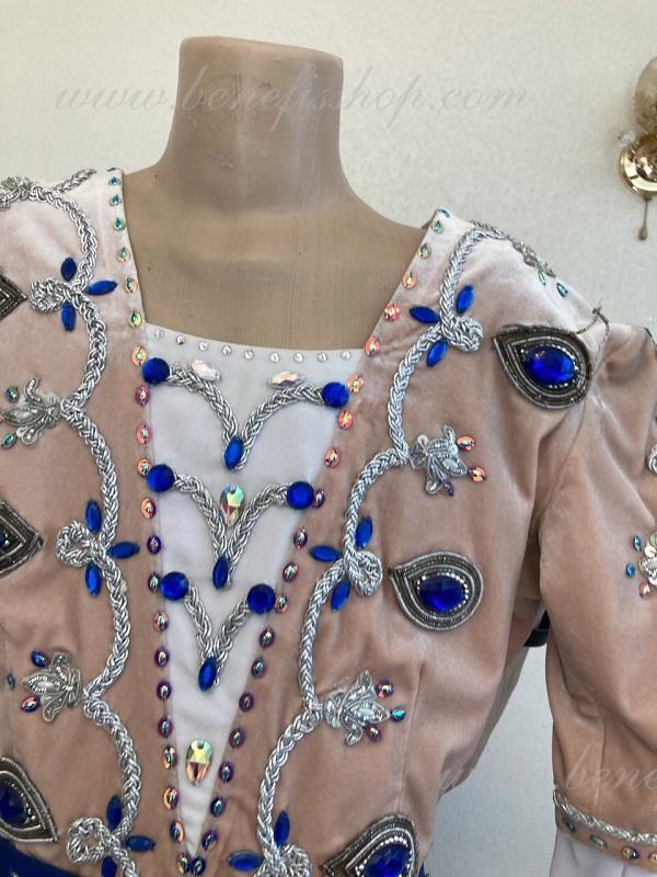 Costum de scena profesionist este indeplinit dintr-o catifea in conformitate cu traditiile orientale.