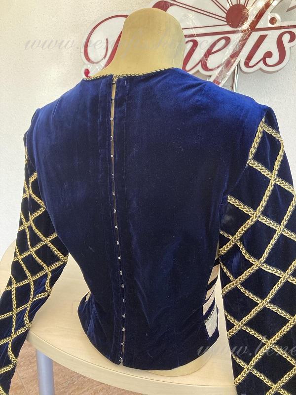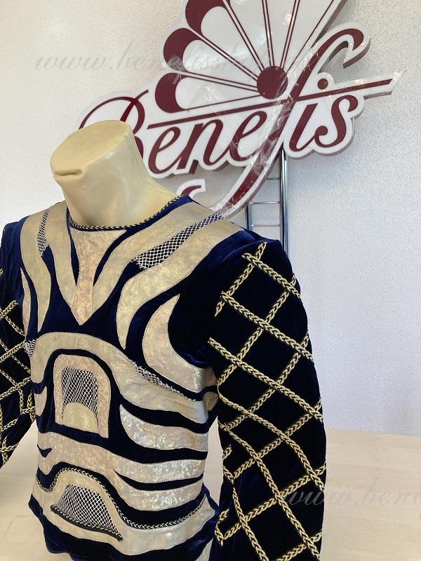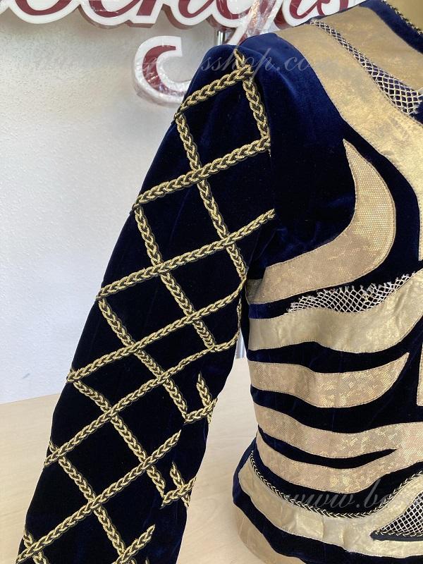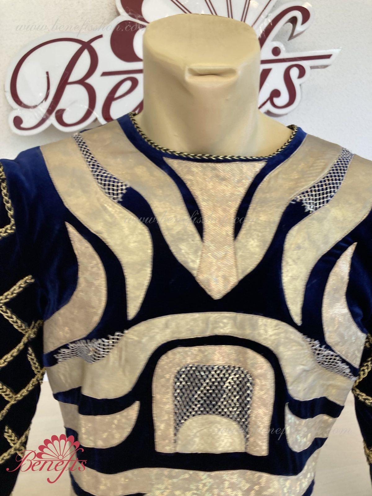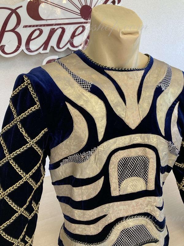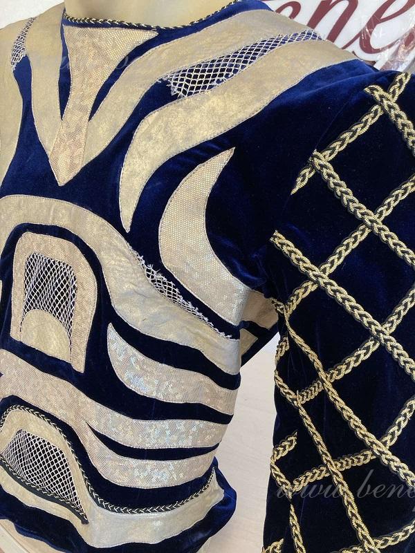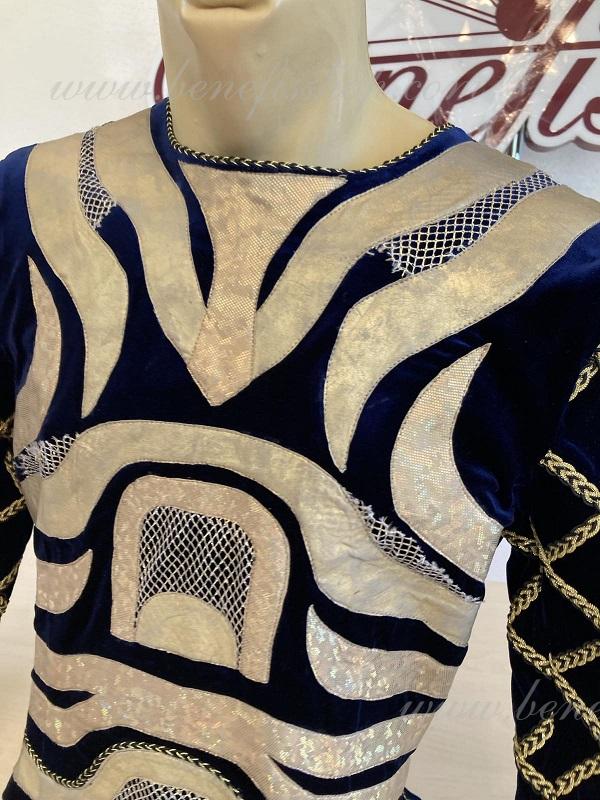 Tunica este realizat din catifea neagră și bogat decorat cu aplicații aurii strălucitoare din țesătură biflex și plasă.