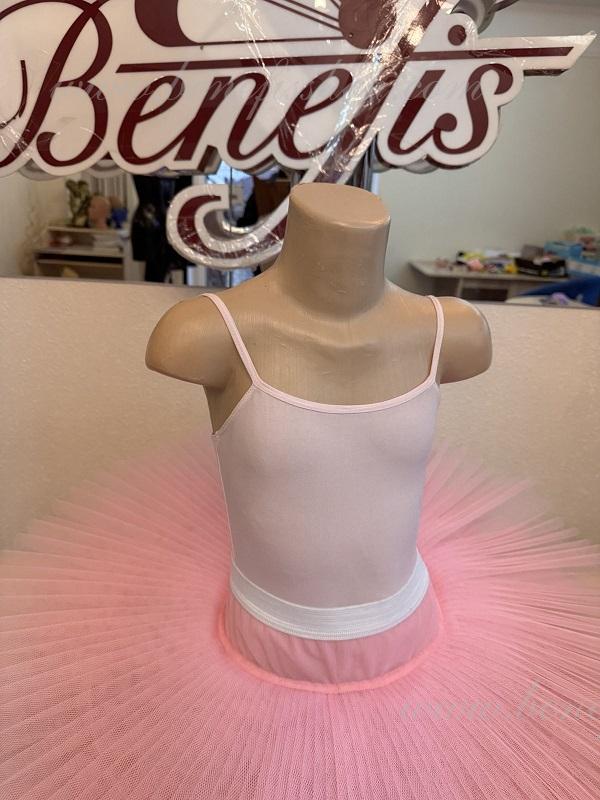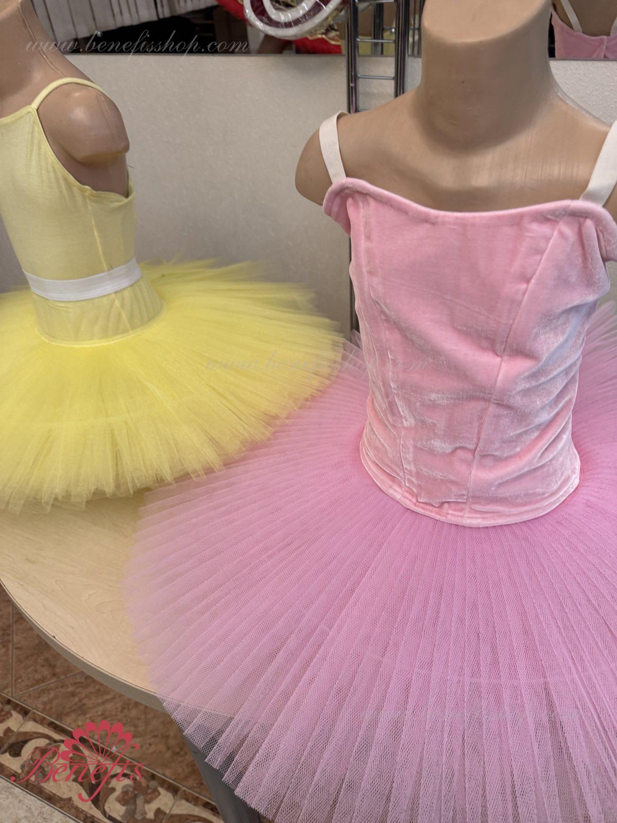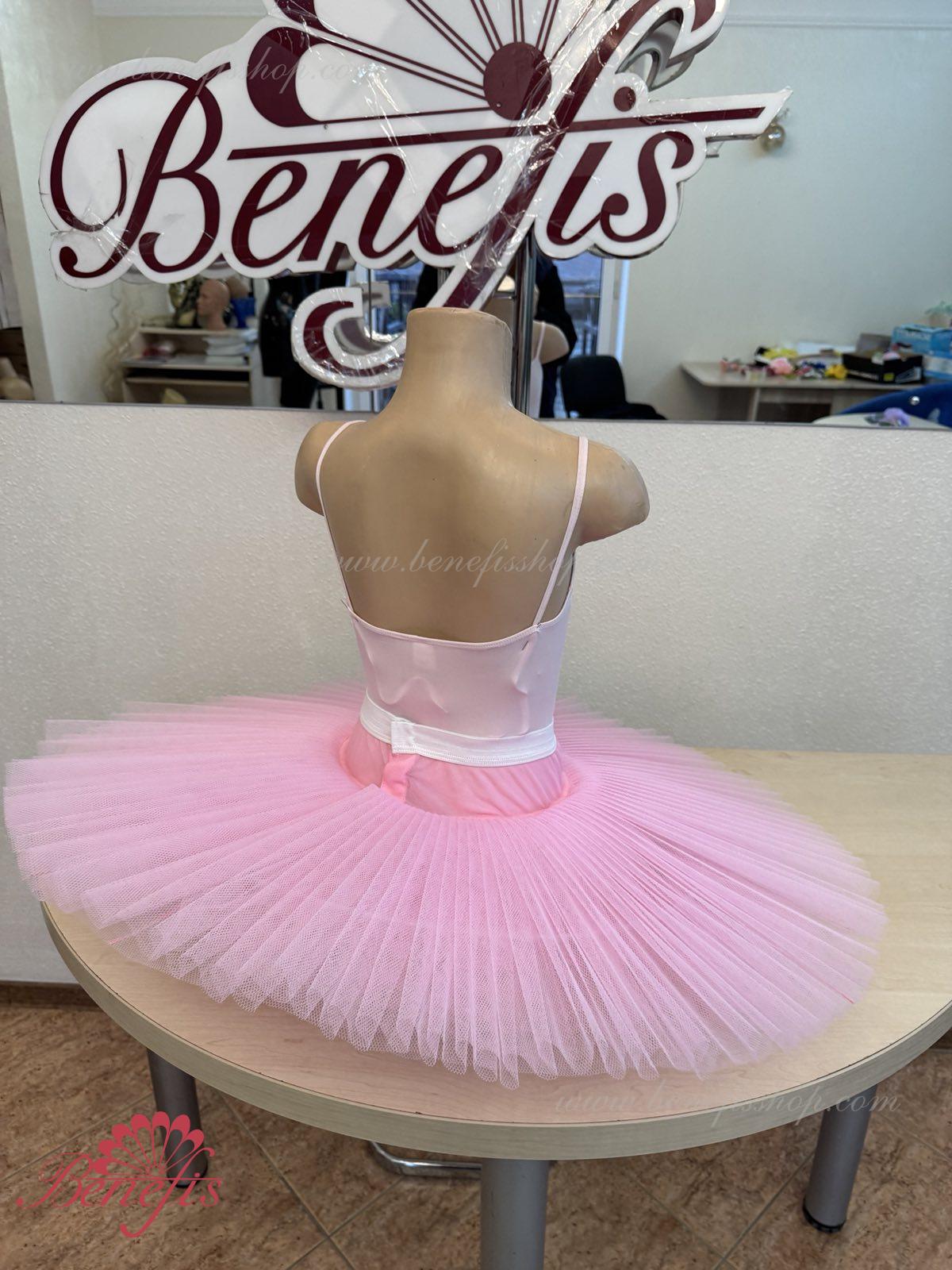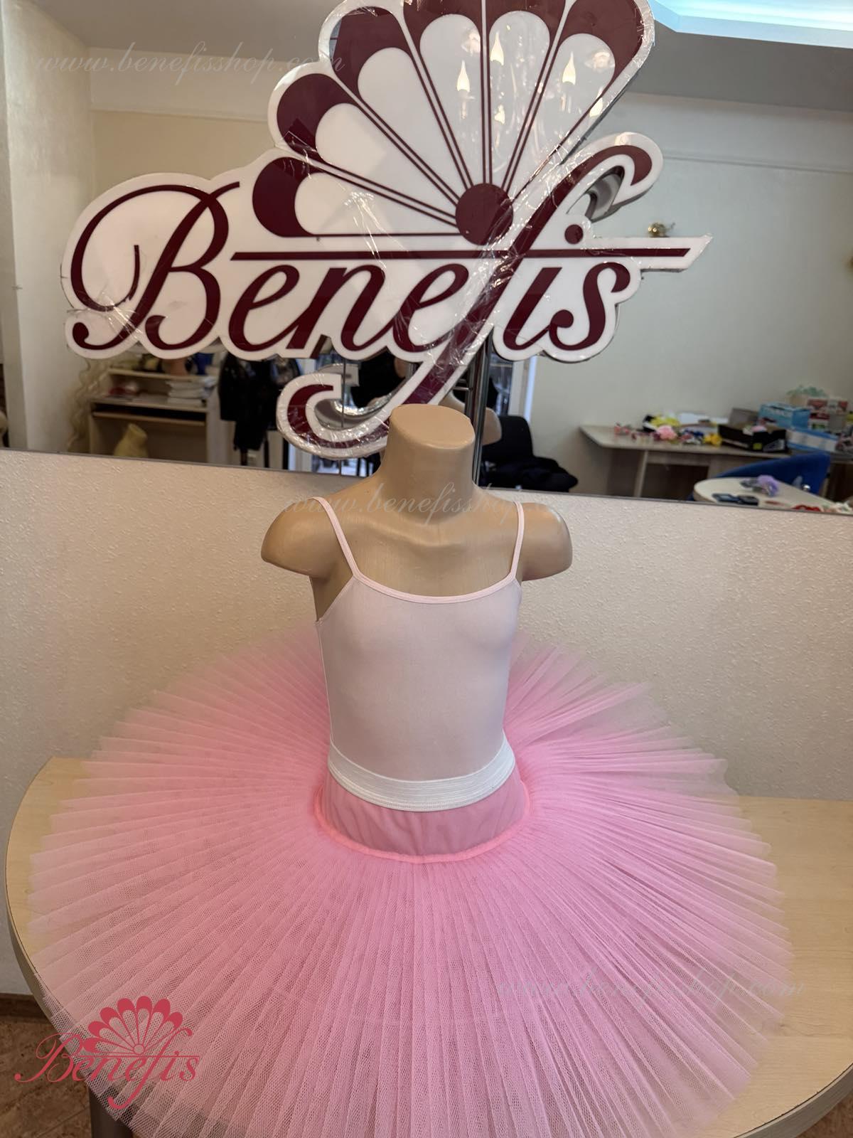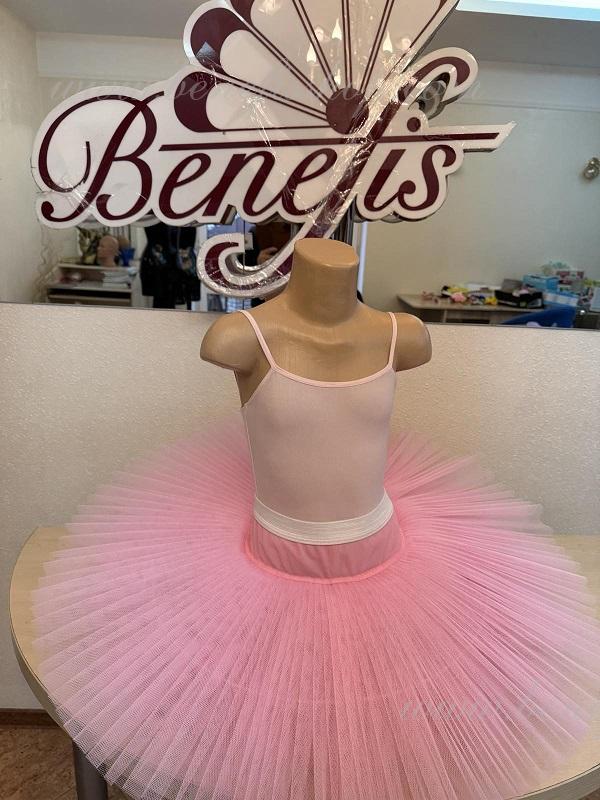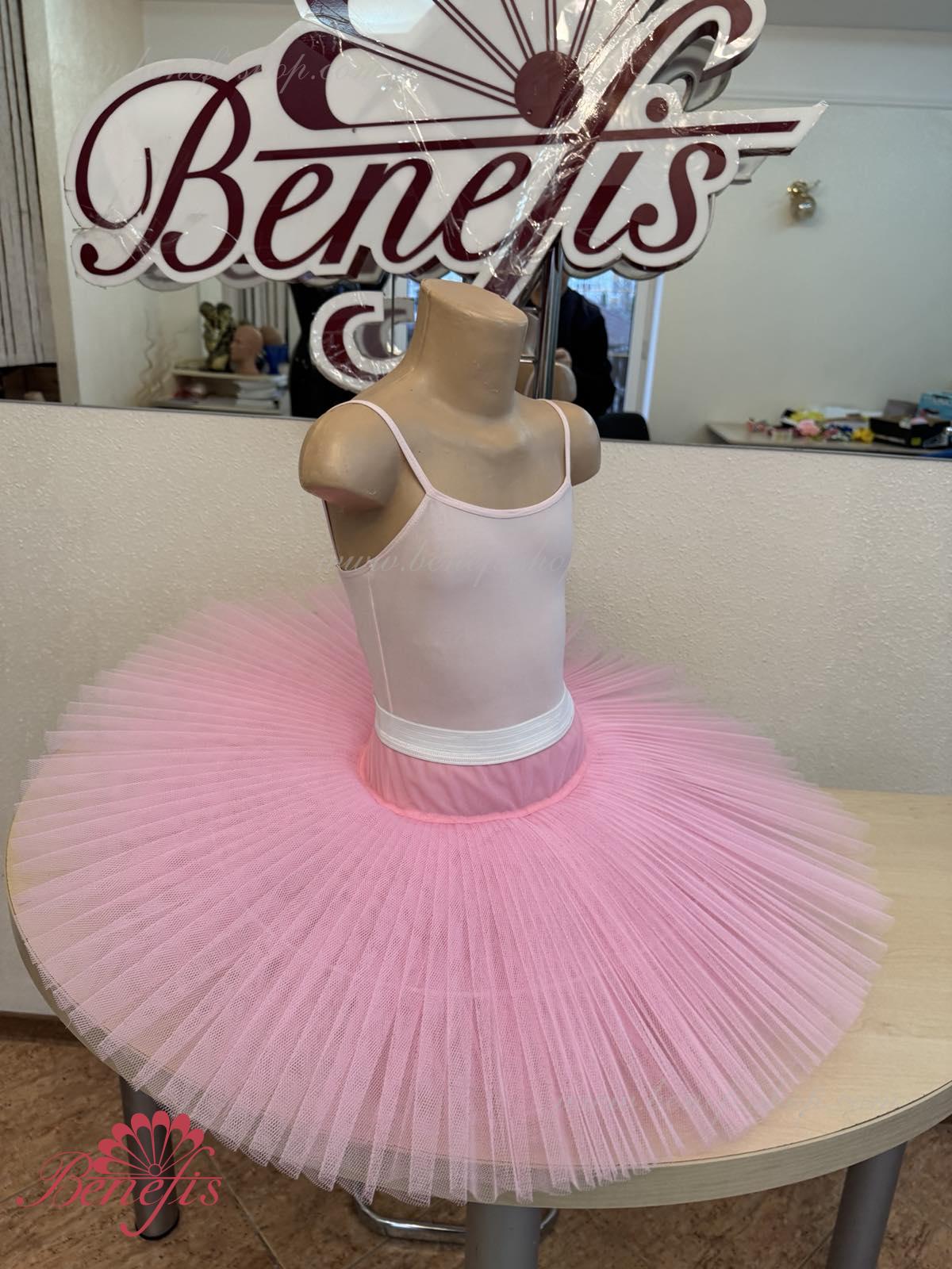 Tutu de balet este format din tul moale de 5 straturi. Stratul superior este așezat în falduri, restul în ansamblu. Straturile sunt puse pe chilotei cu volane și un jug pe o bandă elastică. Pentru o formă plată, fuserul se află pe o buclă.Prețul include doar fusta. Corsetul nu este inclus în preț.
