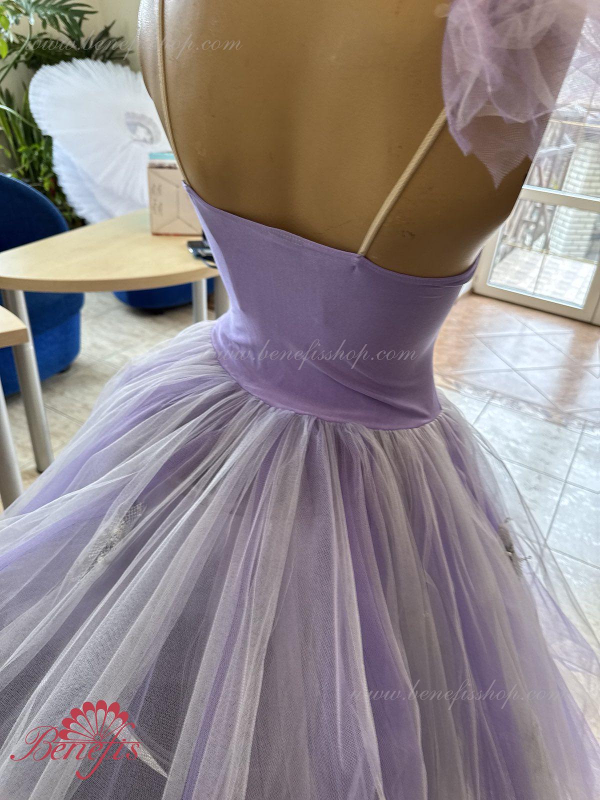 Fusta este confectionata in forma de cline, cu citeva straturi de tul.
