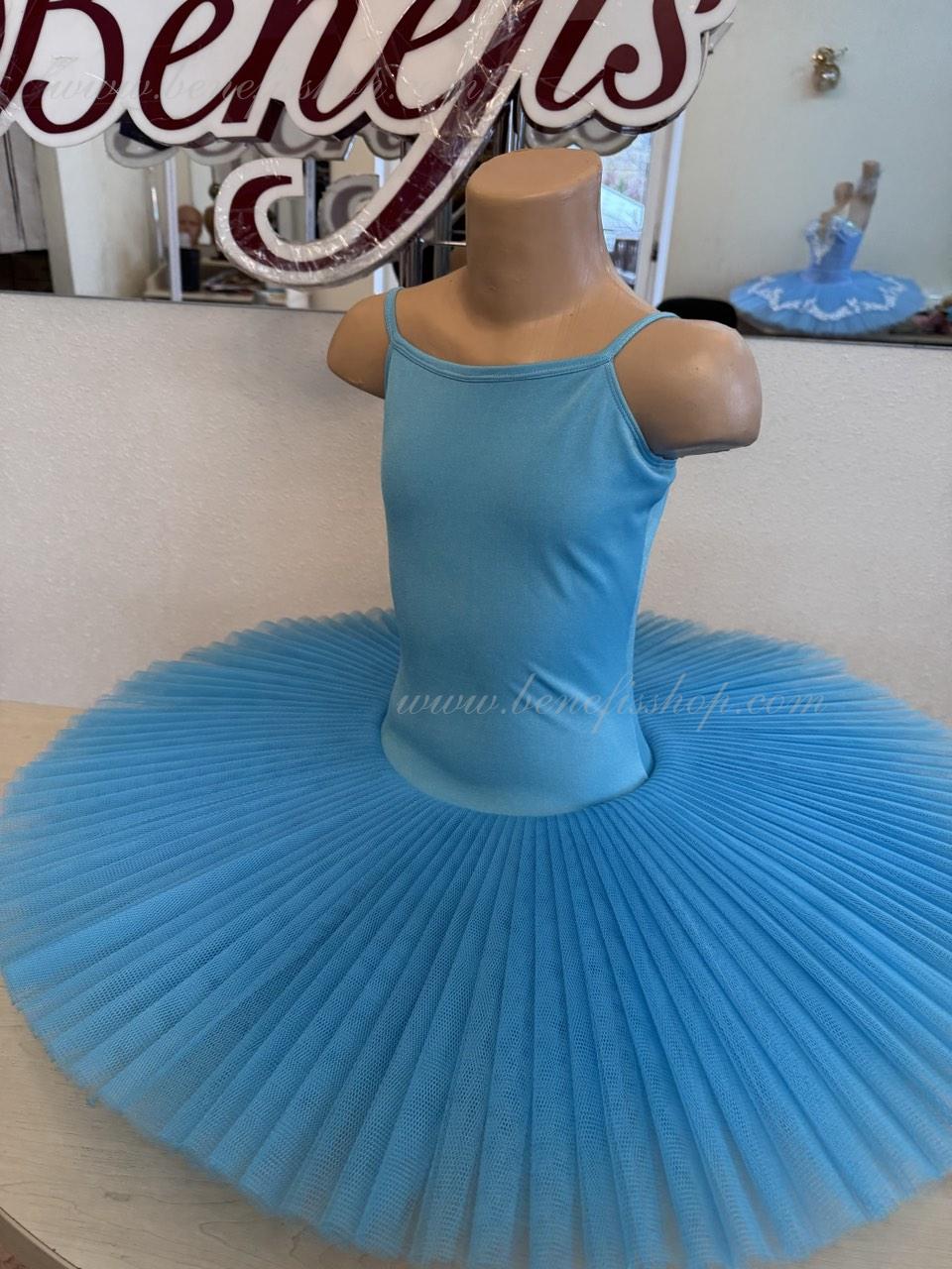 Costum de scena profesionist. Este fabricat in baza de tricou si fusta cusuta de acesta. Stratul de sus al fustei este confectionat in forma de incretituri ca si la orice fusta de balet profesionista. Fusta este realizata din 6 straturi de tul aspru. Lungimea straturilor este diferita (in dependenta de dorinta clientului) si se scurteaza de la stratul de sus la stratul de jos In mijlocul straturilor de tul se afla un volan unde este introdus cercul. Tricoul cu chingi este confectionat din supplex. Corsetul, dupa dorinta clientului, poate fi indeplinit din catifea si putin decorat cu strasuri, pentru o suma aditionala.