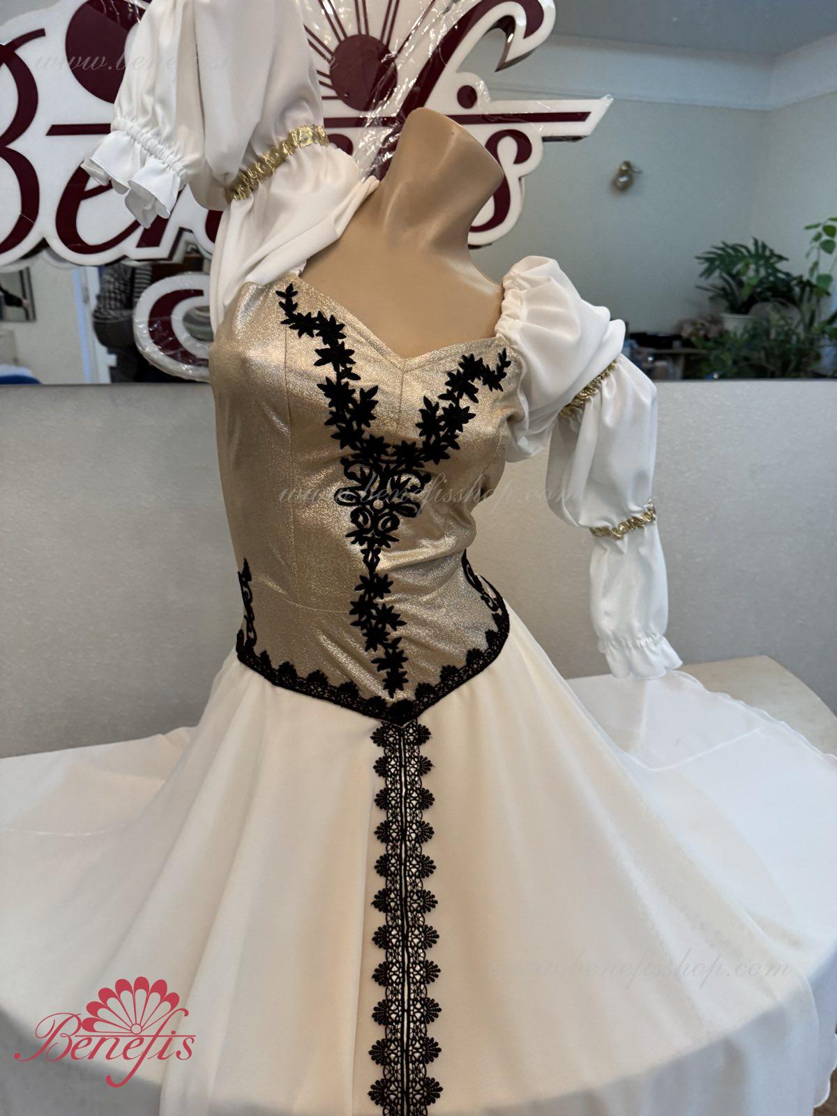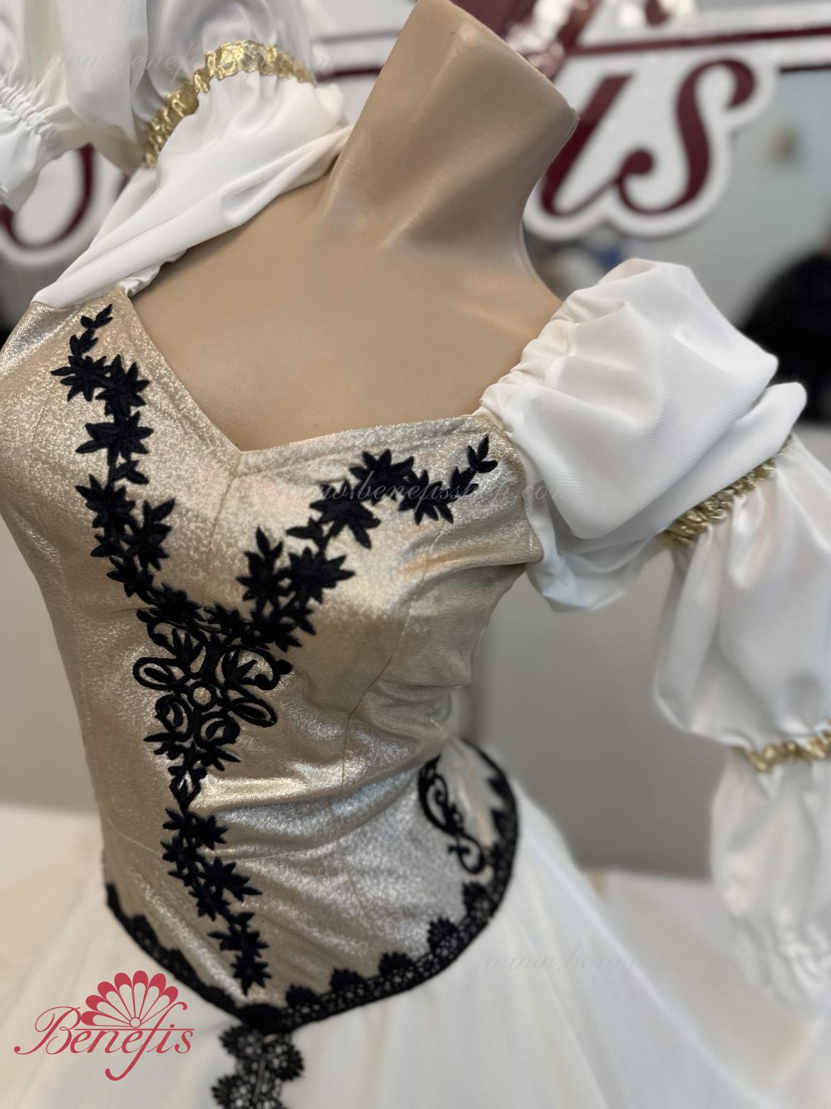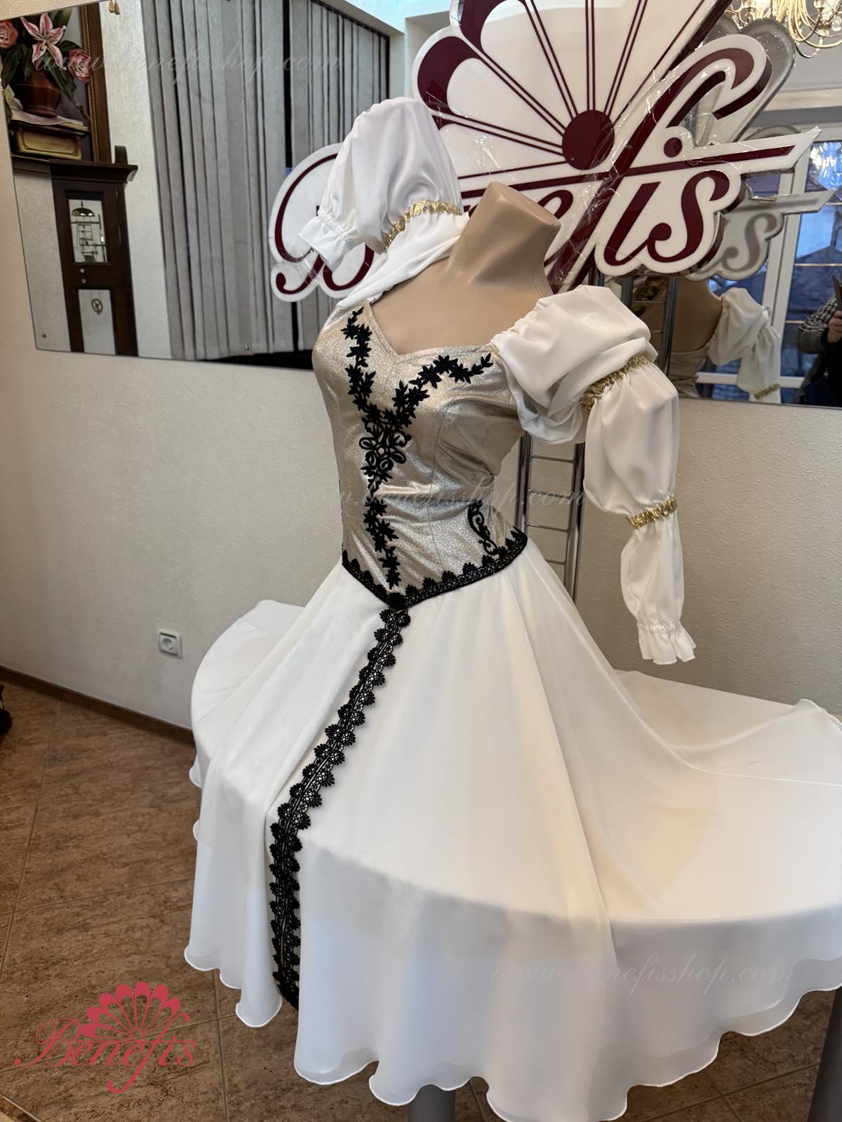 Acesta este un costum de balet profesional pentru scena. Corsetul este confectionat dintr-o tesatura semilastica și densa.