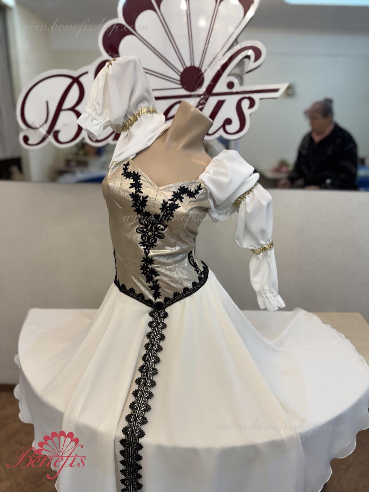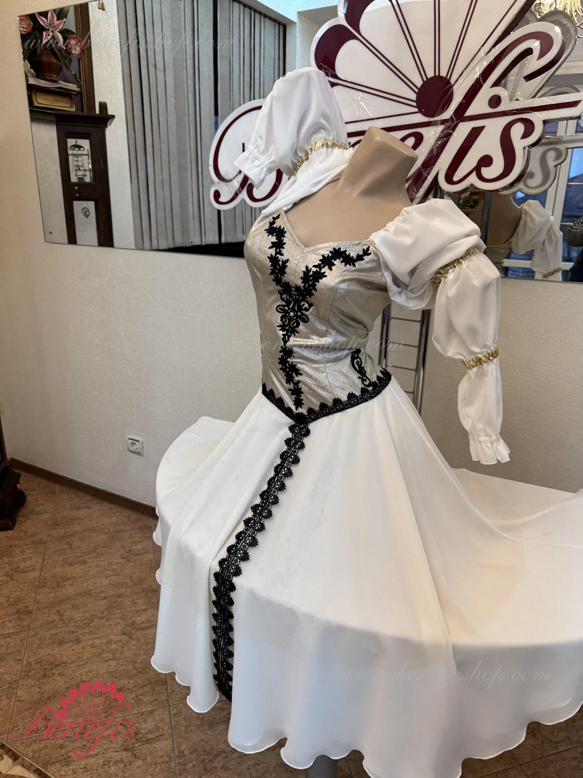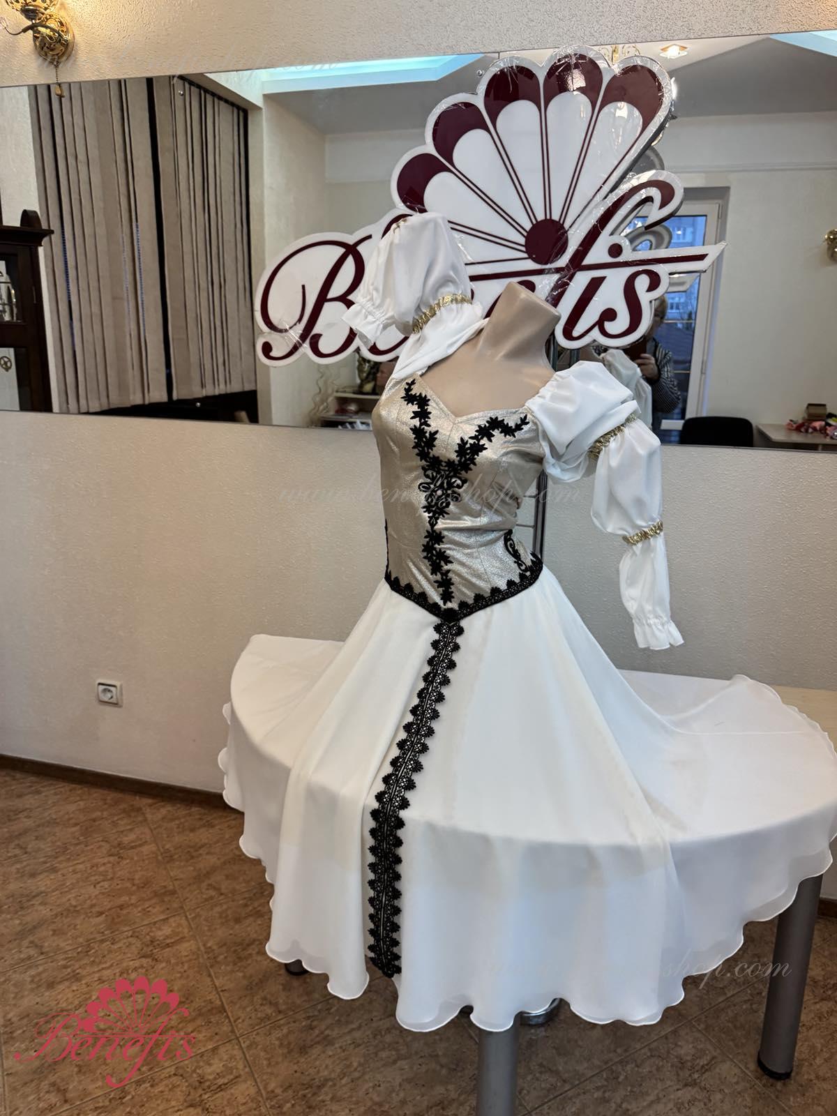 Acesta este un costum de balet profesional pentru scena. Corsetul este confectionat dintr-o tesatura semilastica și densa.