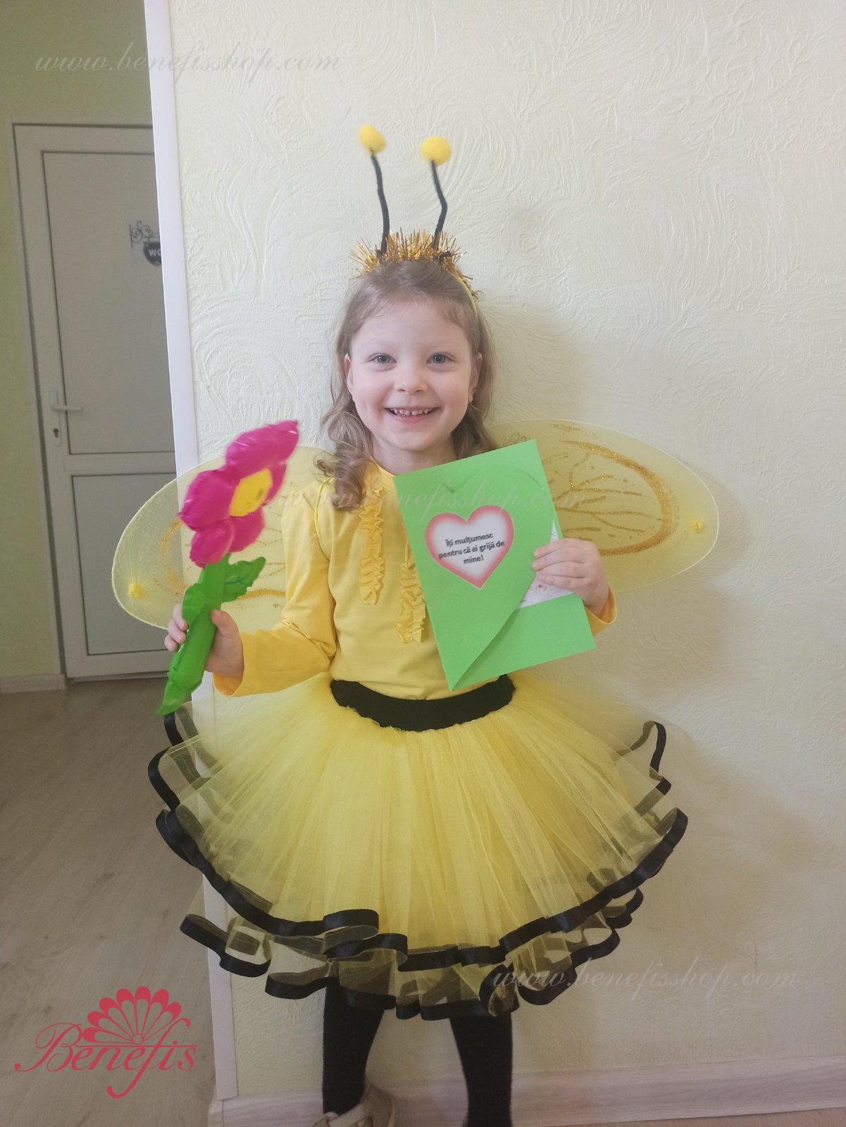 Fusta este realizată din trei straturi de tul. Fusta cu banda elastica cu panglica. Strat Inferior opac.