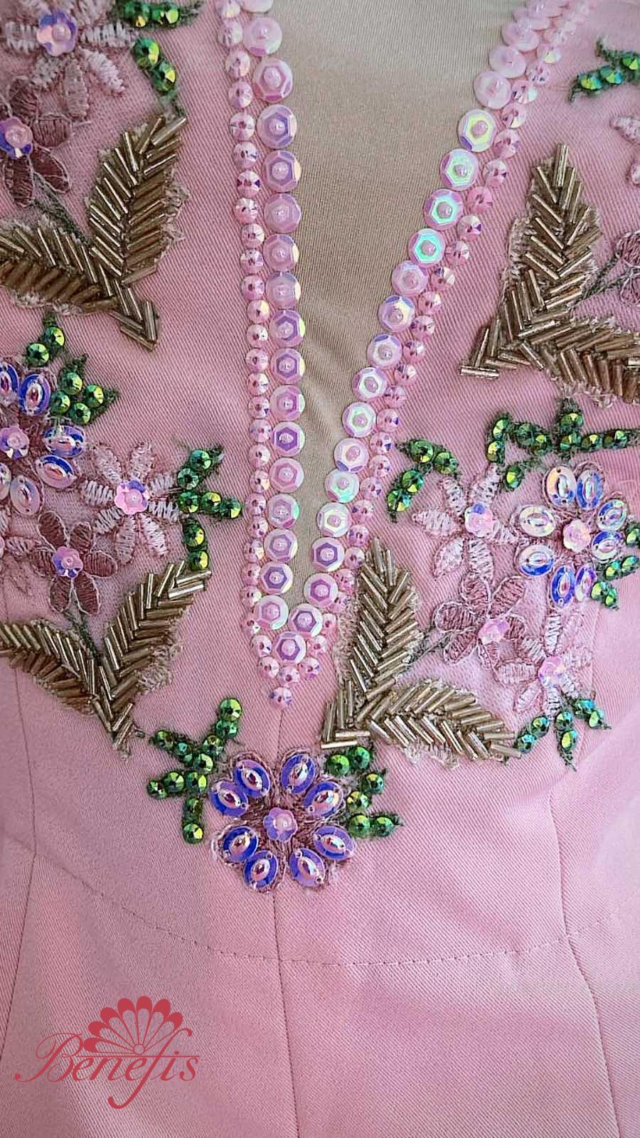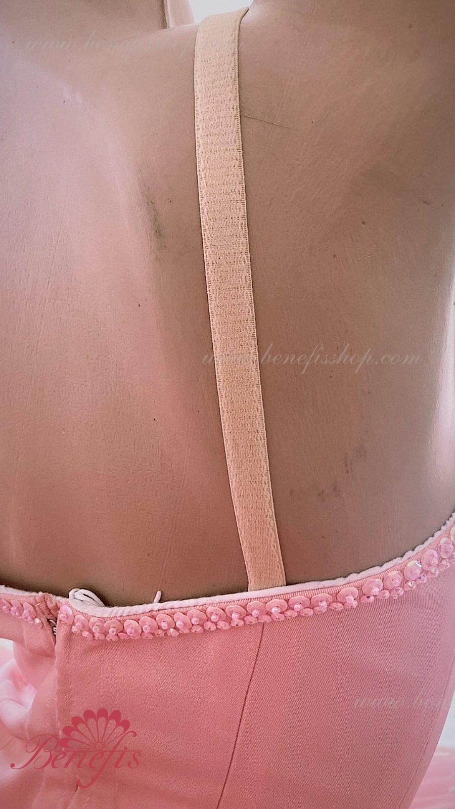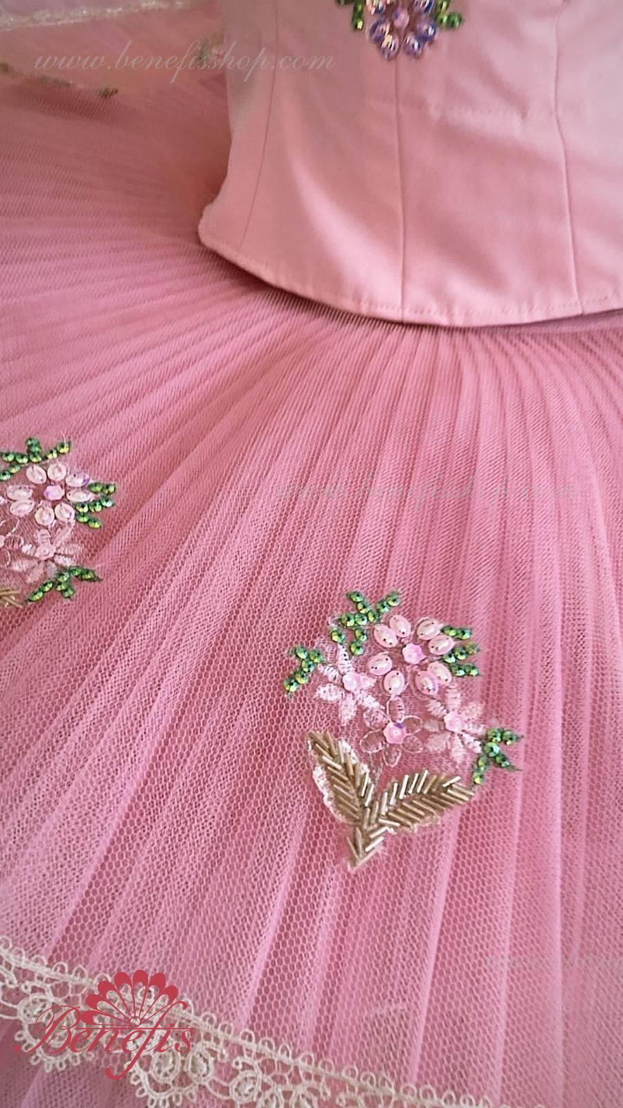 Detalii: costum, anvelopă .Corsetul este confectionat din tesatura densa semi-stretch. Pe corset sunt prezente doua rinduri de chirlige pentru regularea comoda si un snur intern pentru stringerea corsetului la nivelul pieptului.Pe piept se intrevede o insertie de culoarea pielii. Chingele sunt de culoarea pielii.Opt straturi plisate gradate de tul semi-moale - sapte lungi si un scurt, aseazate pe chilotei din tul cu platca de 10 cm fixata pe centura elastica.