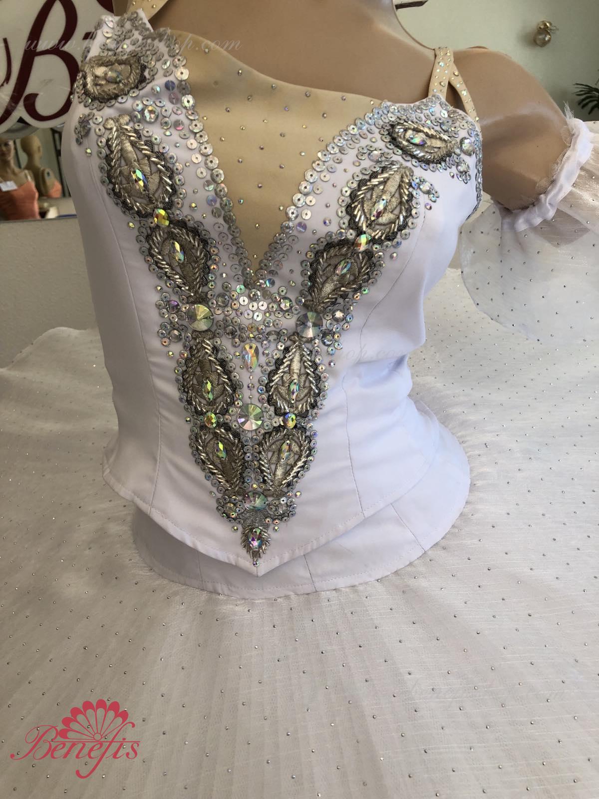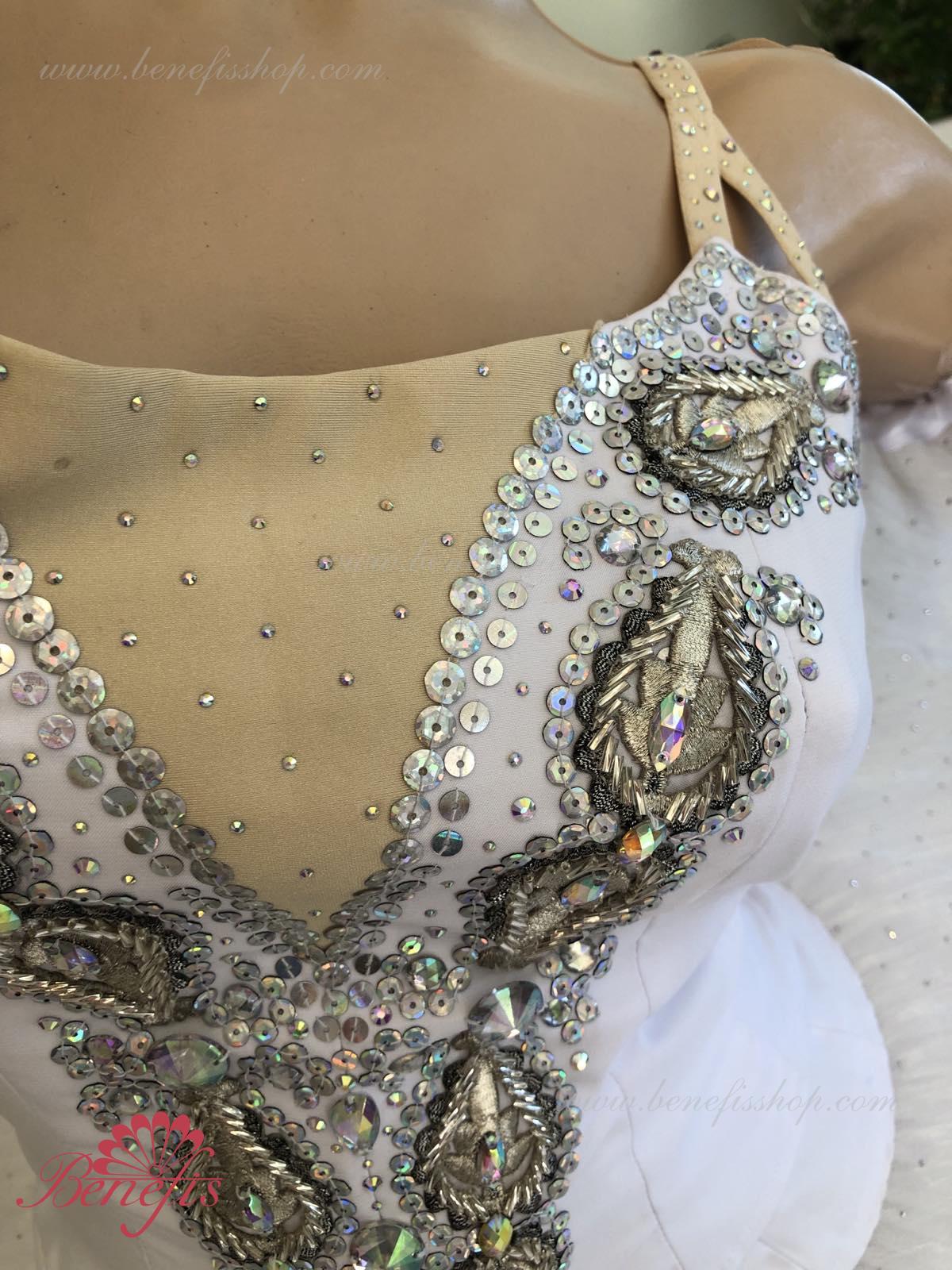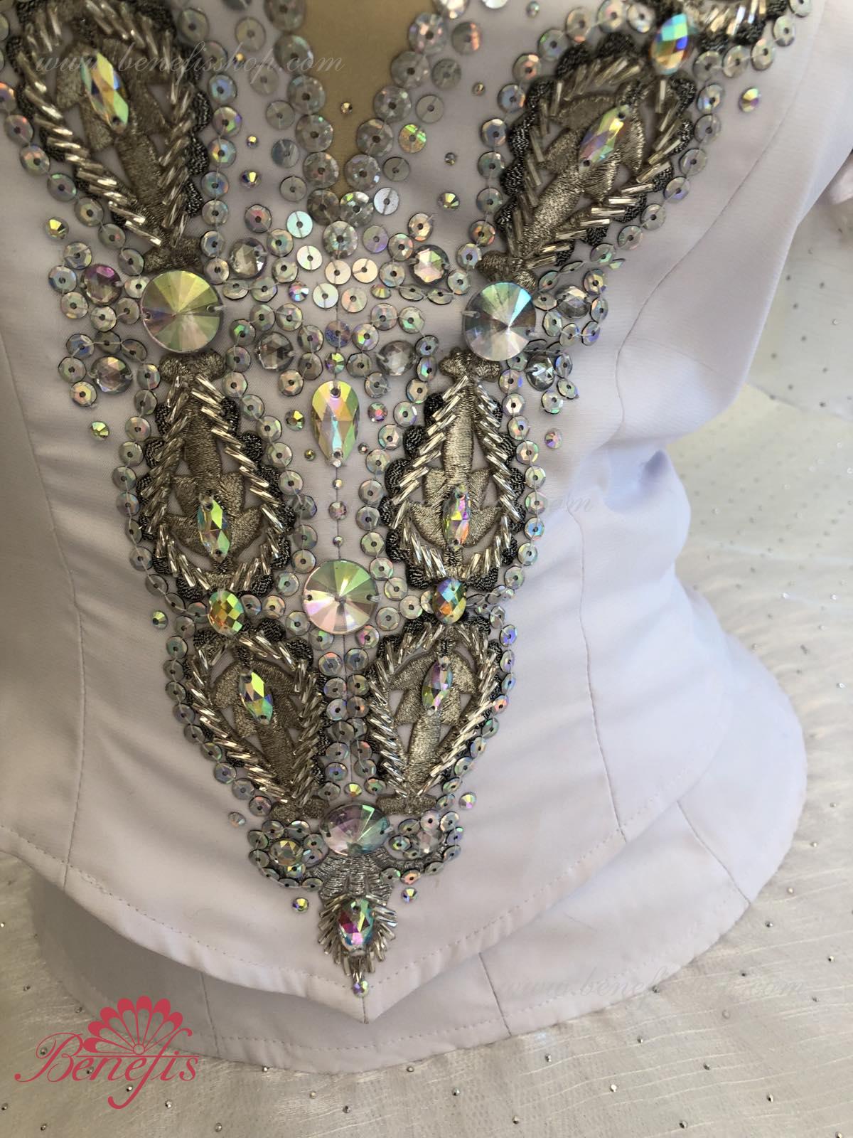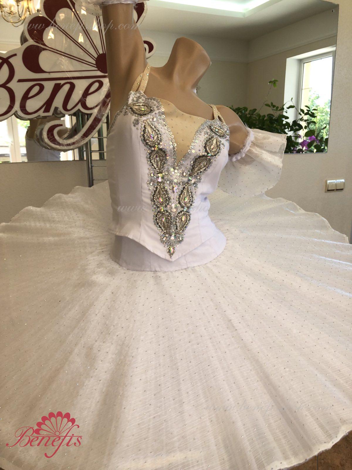 Tutu are șapte perechi de cârlige și bucle pe partea din spate. Decor: strasuri, aplicații, paiete, organza cu imitație strasuri.