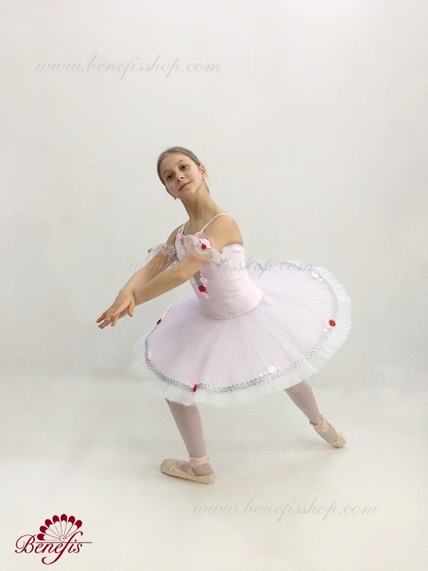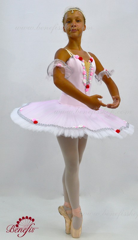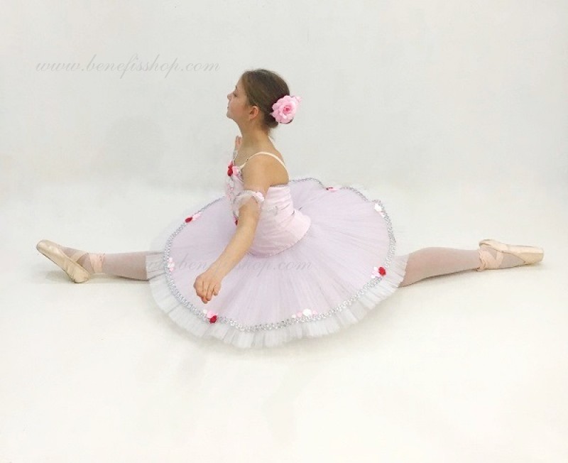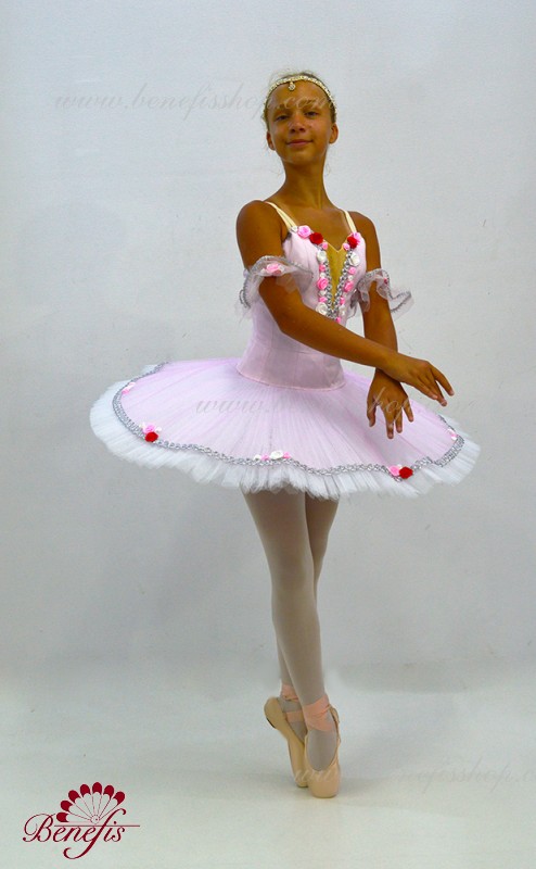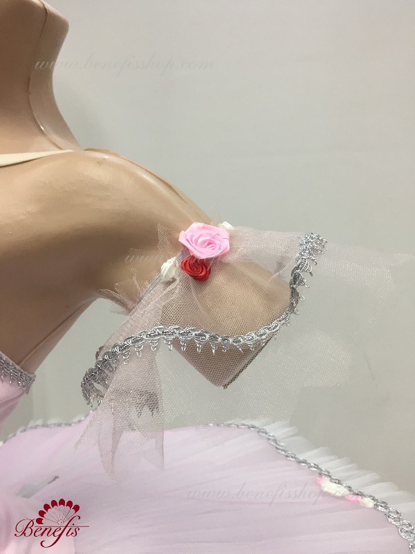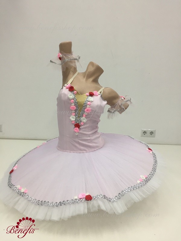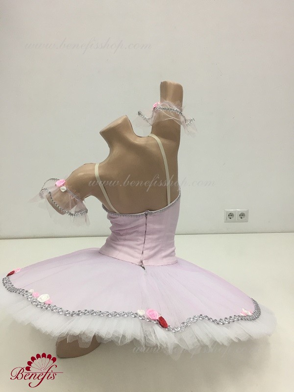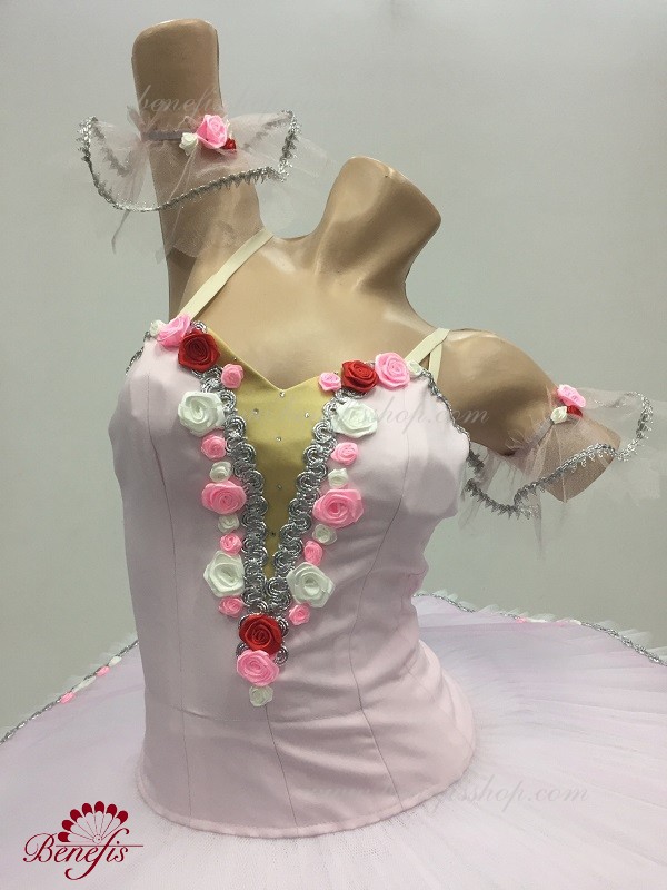 Detalii: costum, maneci. Acest costum de scenă profesional este realizat pe baza unei fuste profesionale de bază # T 0001B (vezi secțiunea "Fuste de bază și repetiții"). Corsetul, cu bretele elastice si insertie corporala pe piept, este confectionat din tesatura densa semi-elastica.