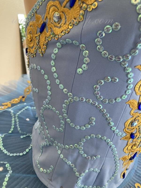 Acest costum de balet este perfect pentru baletul "Coppelia" și poate fi folosit și ca costum de concert.