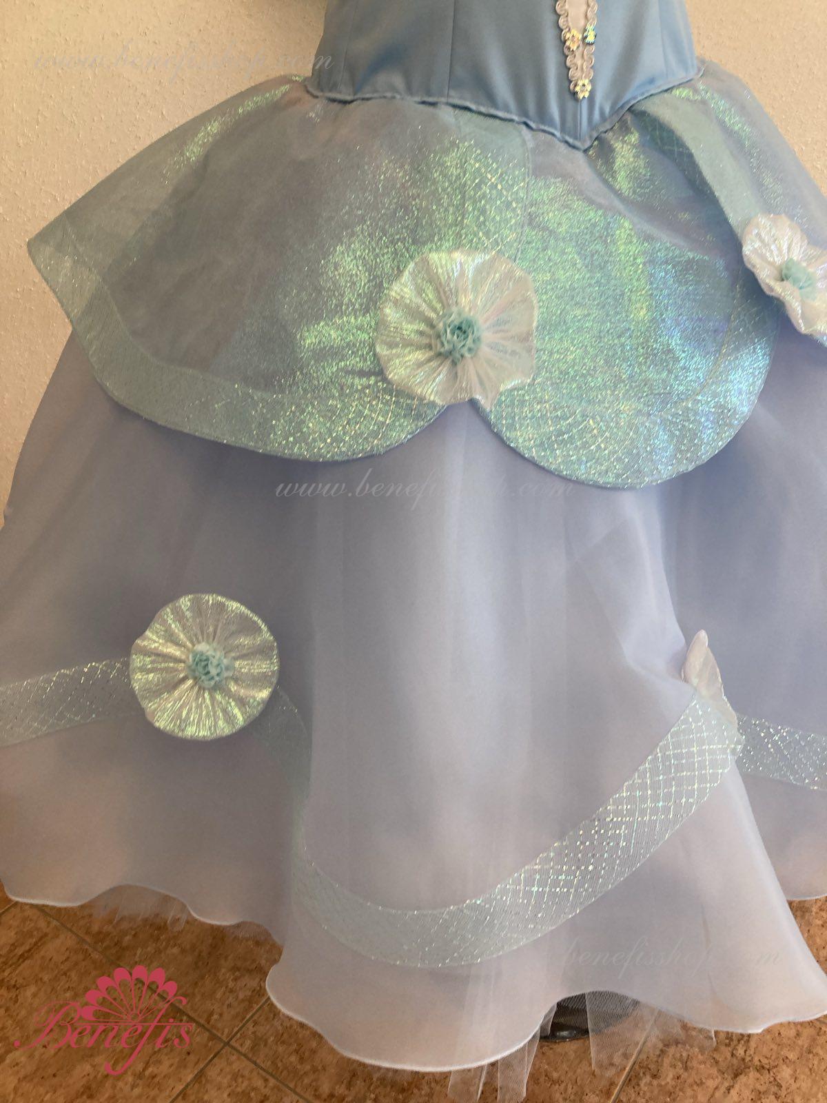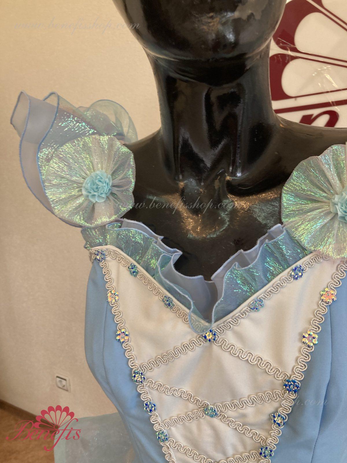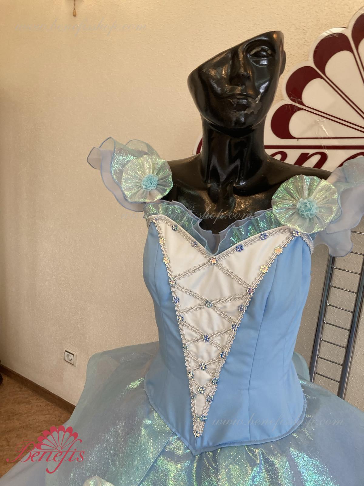 Costumul este indeplinit in baza fustei de balet romantice (modelul # T 0003). Decorul consta din panglica stralucitoare pe corset si o cantitate moderata de paiete. Decorul fustei consta din aplicatii de culoare deschisa in tonuri gingase.