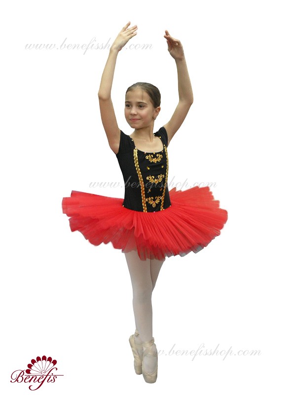 Acest costum este confecţionat pe baza unui tricou din ţesătura elastică.Pe corset sunt prezente applicatii originale, brodate cu strase si paiete