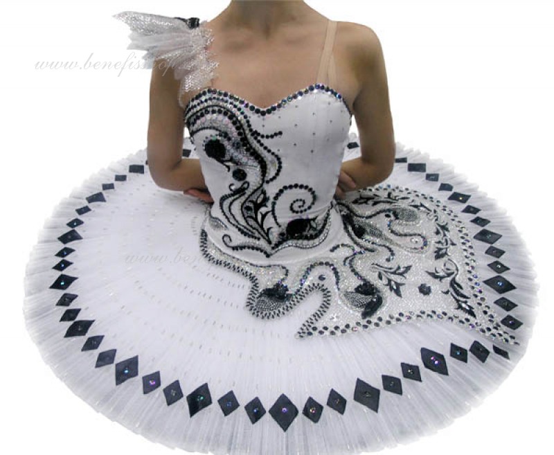 Acest costum de scena profesionist este confectionat pe baza fustei de balet profesioniste #T0001B (vezi compartimentul „Fuste de balet de baza”).