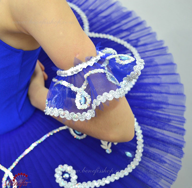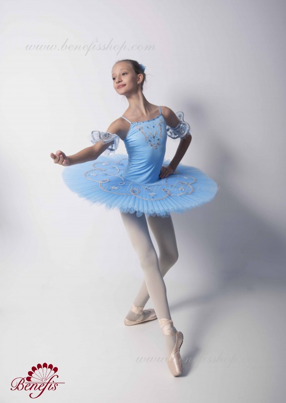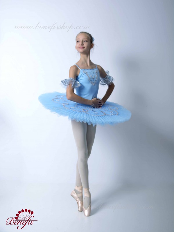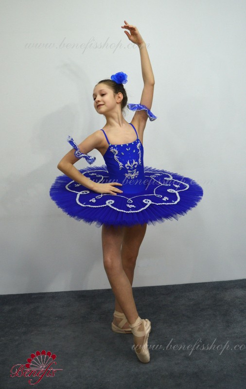 Acest costum de concert pentru copii este indeplinit in baza unui tricou elastic si a fustei cu cercuri. Corsetul si stratul superior al fustei este decorat cu aplicatii aurii sau argintii, cristale de diferite marimi. Marginea stratului superior al fustei si minecute sunt impodobite cu panglica aurie sau argintie.