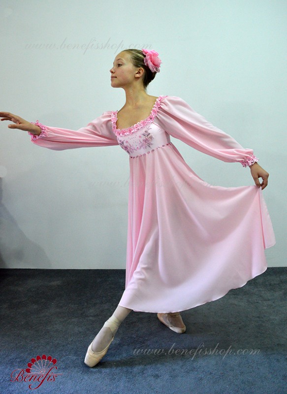 Rochia de balet cu mâneci lungi este realizată sub formă de chiton atașat la bază - un costum de baie din țesătură elastică.