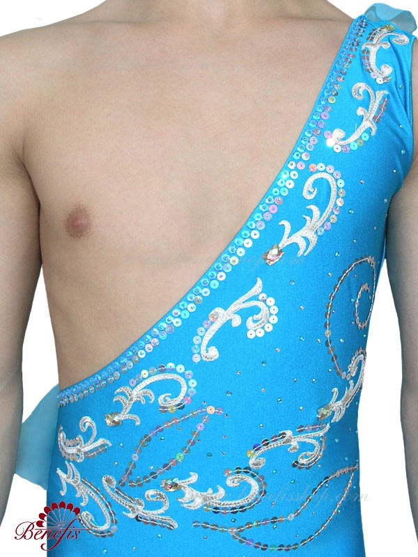 Costumul este confectionat din stofa elastia-suplex in baza de salopeta. Partea de sus a costumului este decorata cu strase si broderie in fata si acopera doar un umar. Partea din spate a costumului este decorata cu o esarfa din tesatura usoara ce simbolizeaza un val de mare.