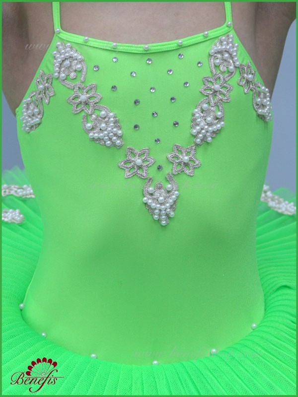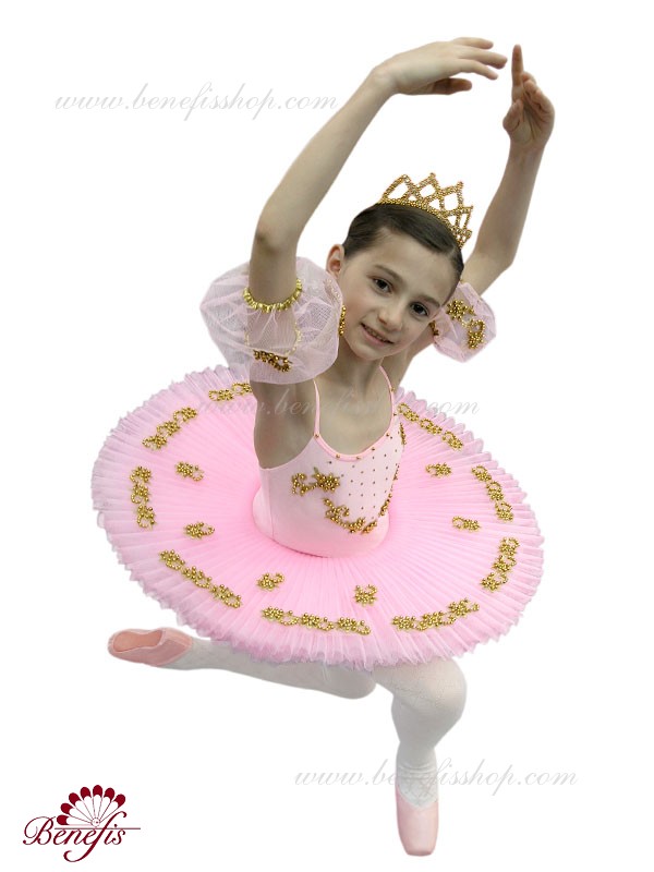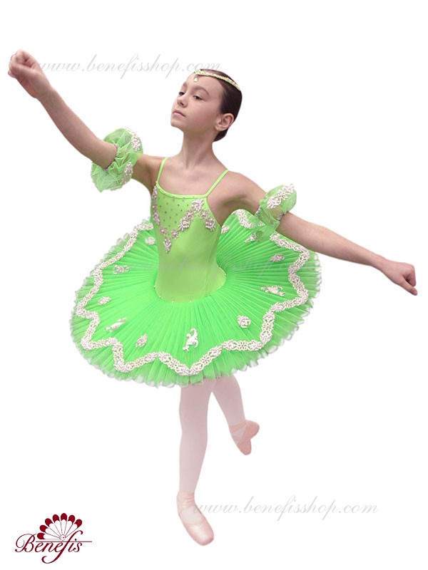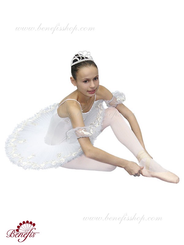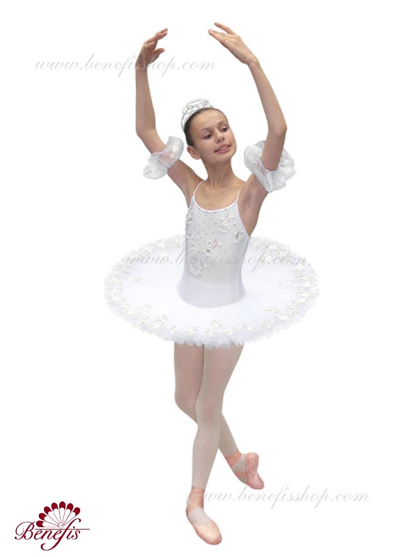 Costumul dat este fabricat în baza de model T 0005 cu corsetul elastic şi fusta de balet cu cercuri. Intregul costum este impodobit cu perle, applicaţii de argint şi straze. Costumul poate fi utulizat în variaţii de concert din diferite balete.