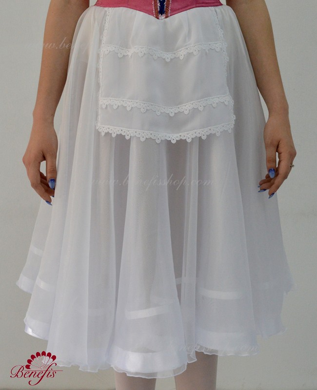 Fusta este confectionata din sifon usor pulverizat. Partea de jos a fustei este decorat cu panglica de satin. In calitate de decoratii se foloseste dantelă chingi și banda de satin.