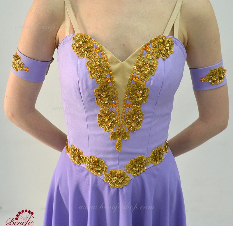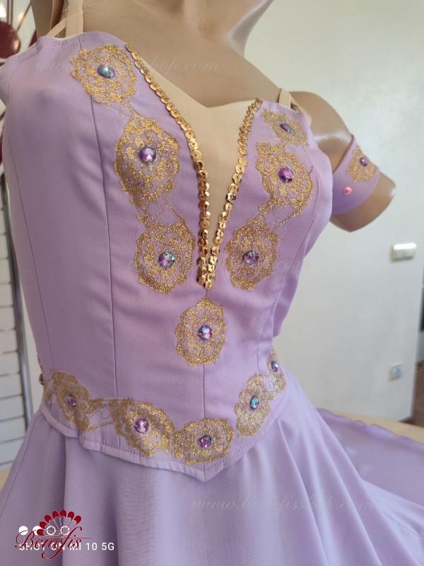 Costumul este format din corset dens, din material semiflexibil si fuste din doua straturi de sifon usor.