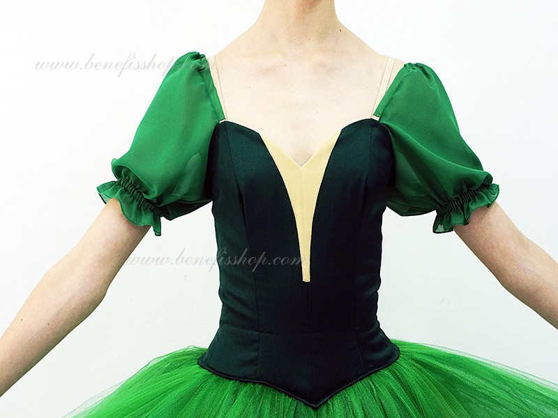 Corsetul este realizat din tesatura semi stretch cu o insertie in formă de V înainte. Manecile de sifon in forma de o lanternă.
