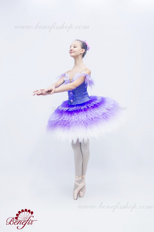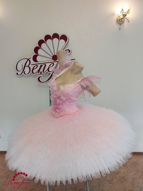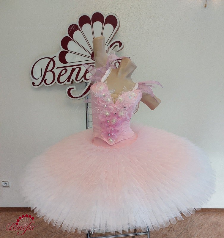 Corsetul este alcătuit din două părți care sunt unite cu benzi elastice in zona taliei. Partea inferioară este cusuta de fusta tutu . Partea superioară este suprapusă pe partea de jos, ceea ce permite ajustarea lungimii corsajului, în funcție de înălțimea balerinei, și o face mai flexibilă. Pentru ajustarea confortabilă, corsetul se incheie cu două rânduri de cârlige la spate. În zona pieptului, corsetul este reglat cu un cordon interior. Toată originalitatea costumului se datoreaza decorului, care prezinta o tranzitie de culori , si este format din tulul moale.
