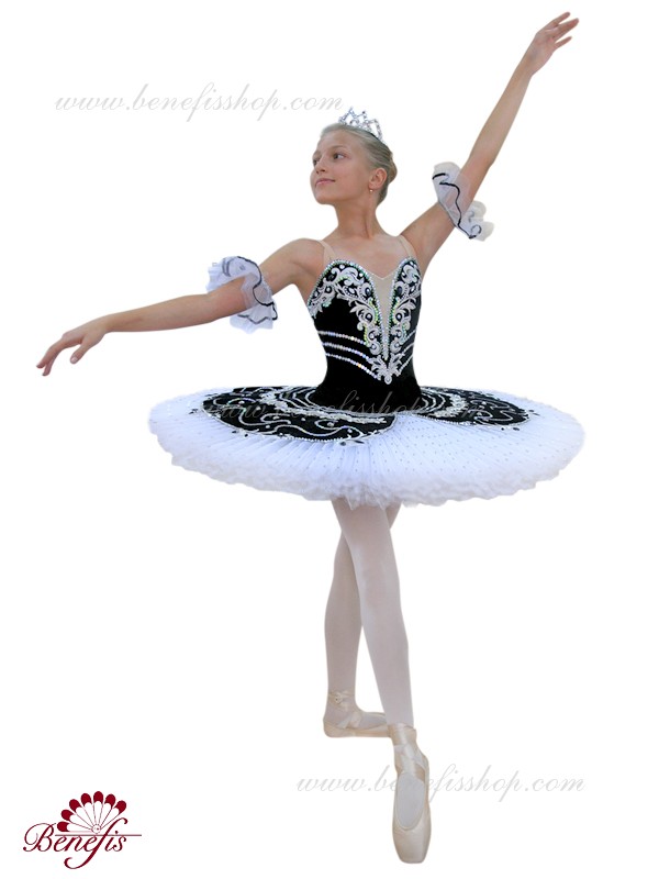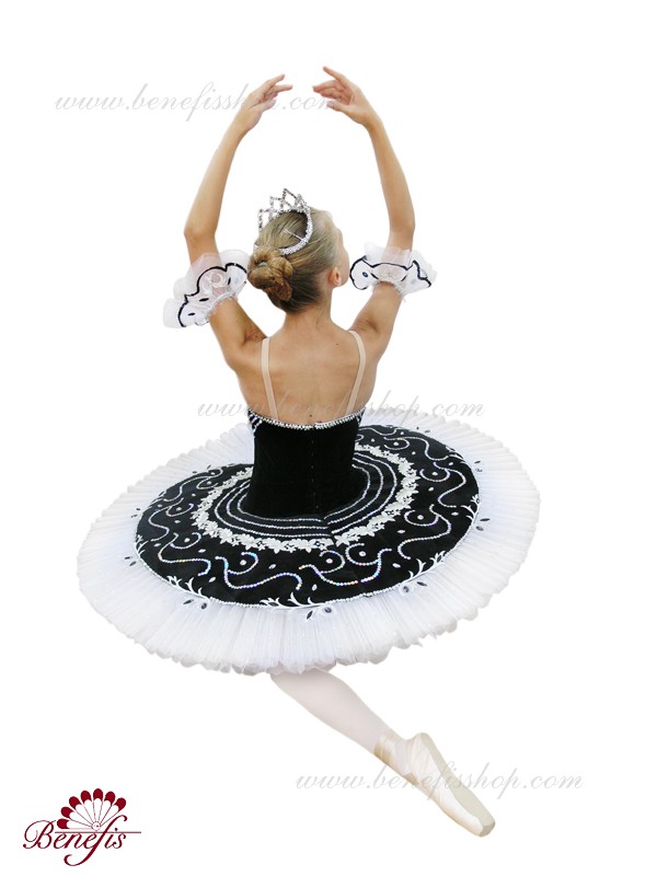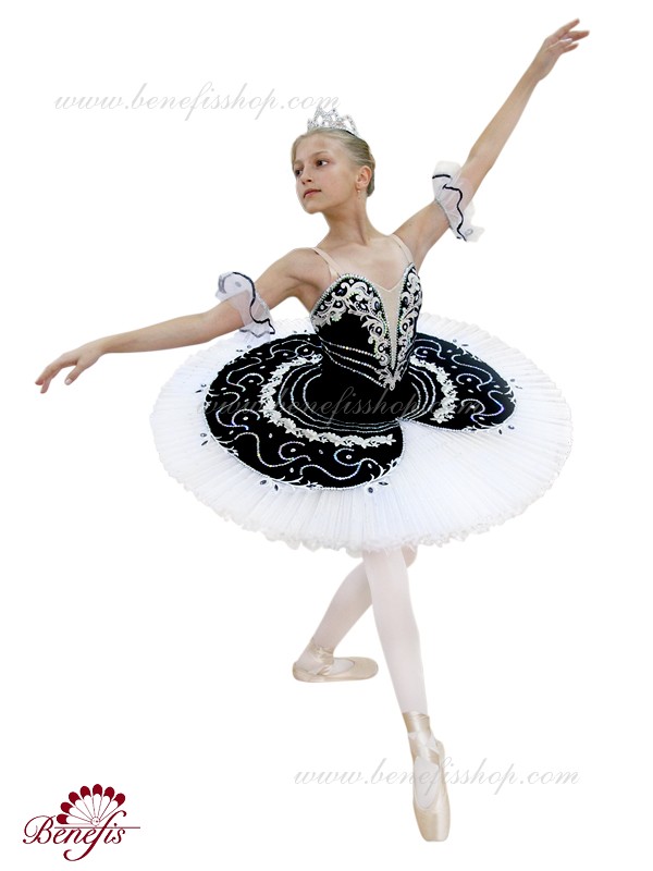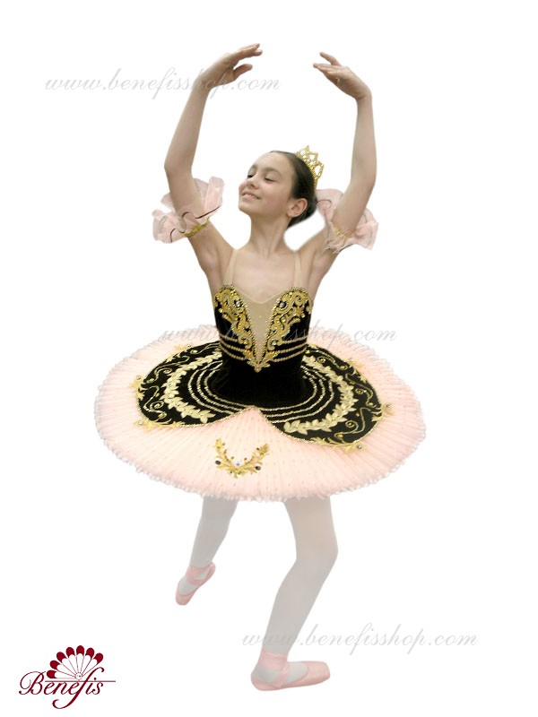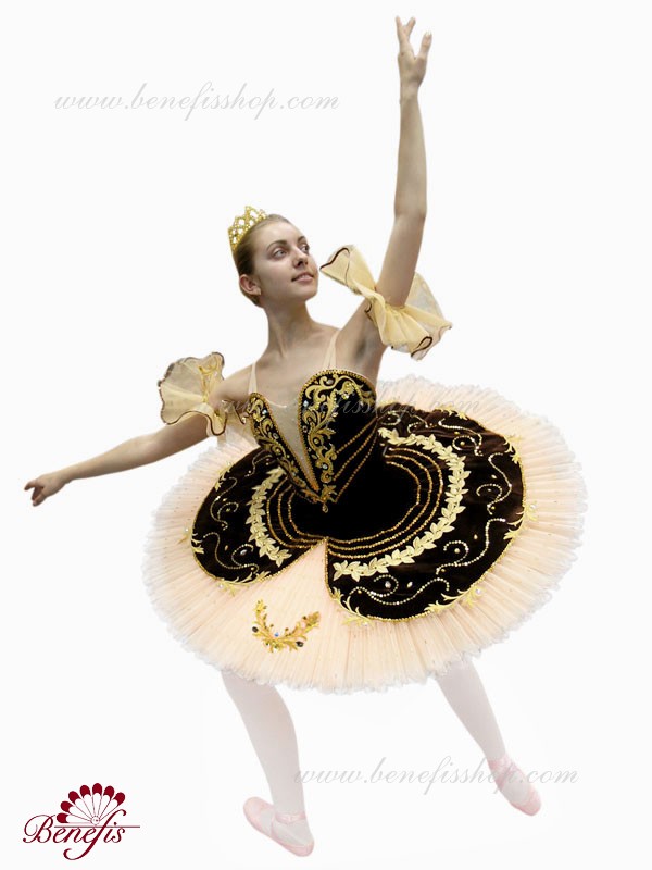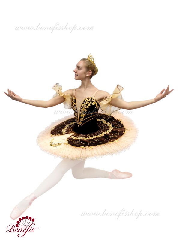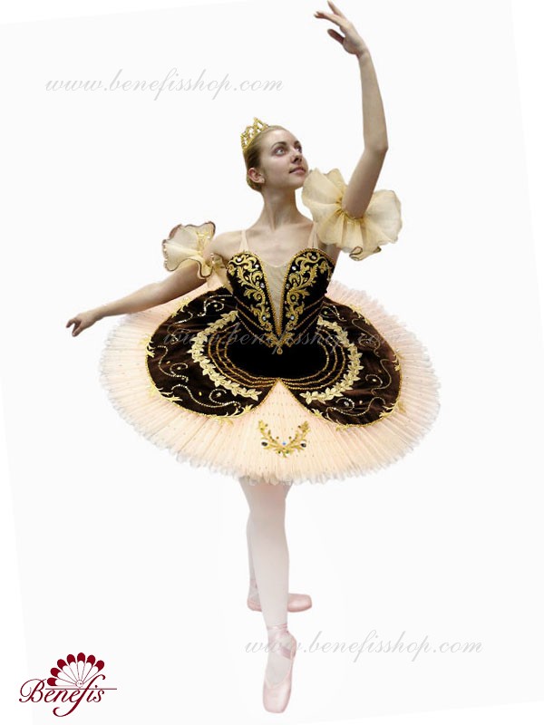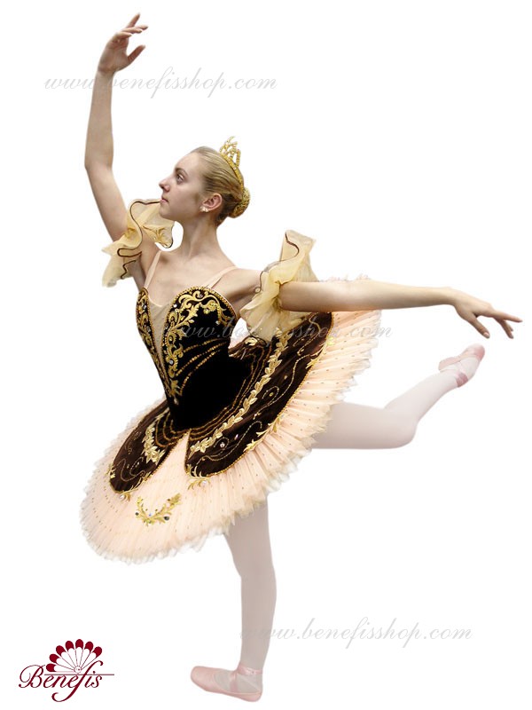 Costum de scena profesionist. Este confectionat in baza fustei de balet profesioniste #T0001B (vezi compartimentul „Fuste de balet de baza”).Corsetul și anvelopa sunt confecționate din material semielastic.