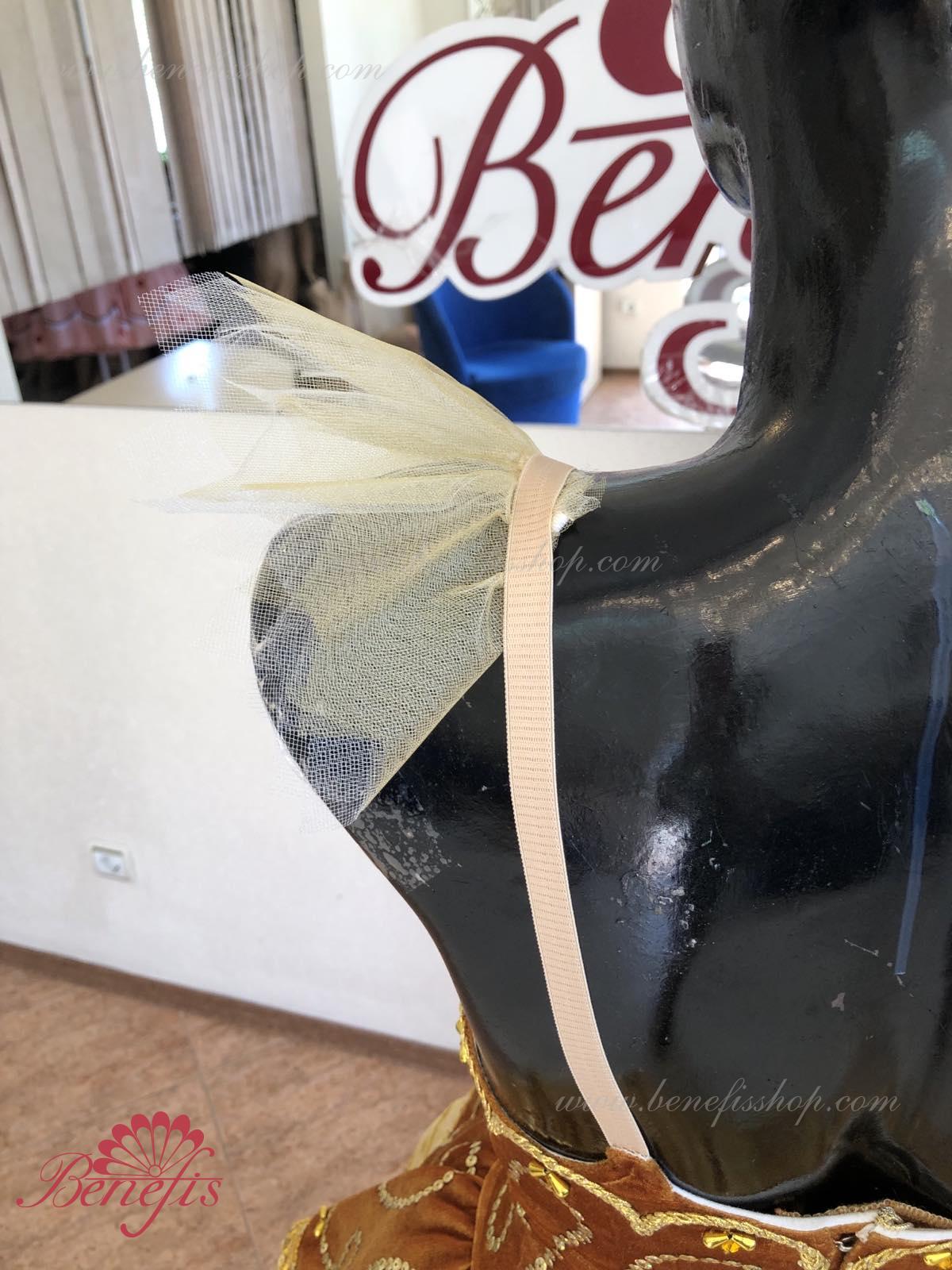 Stratul superior este facut din tul de o alta culoare ce se potriveste culorii corsetului. Corsetul este facut din catifea elastica si se inchide pe doua rinduri de cirlige plasate pe spate.