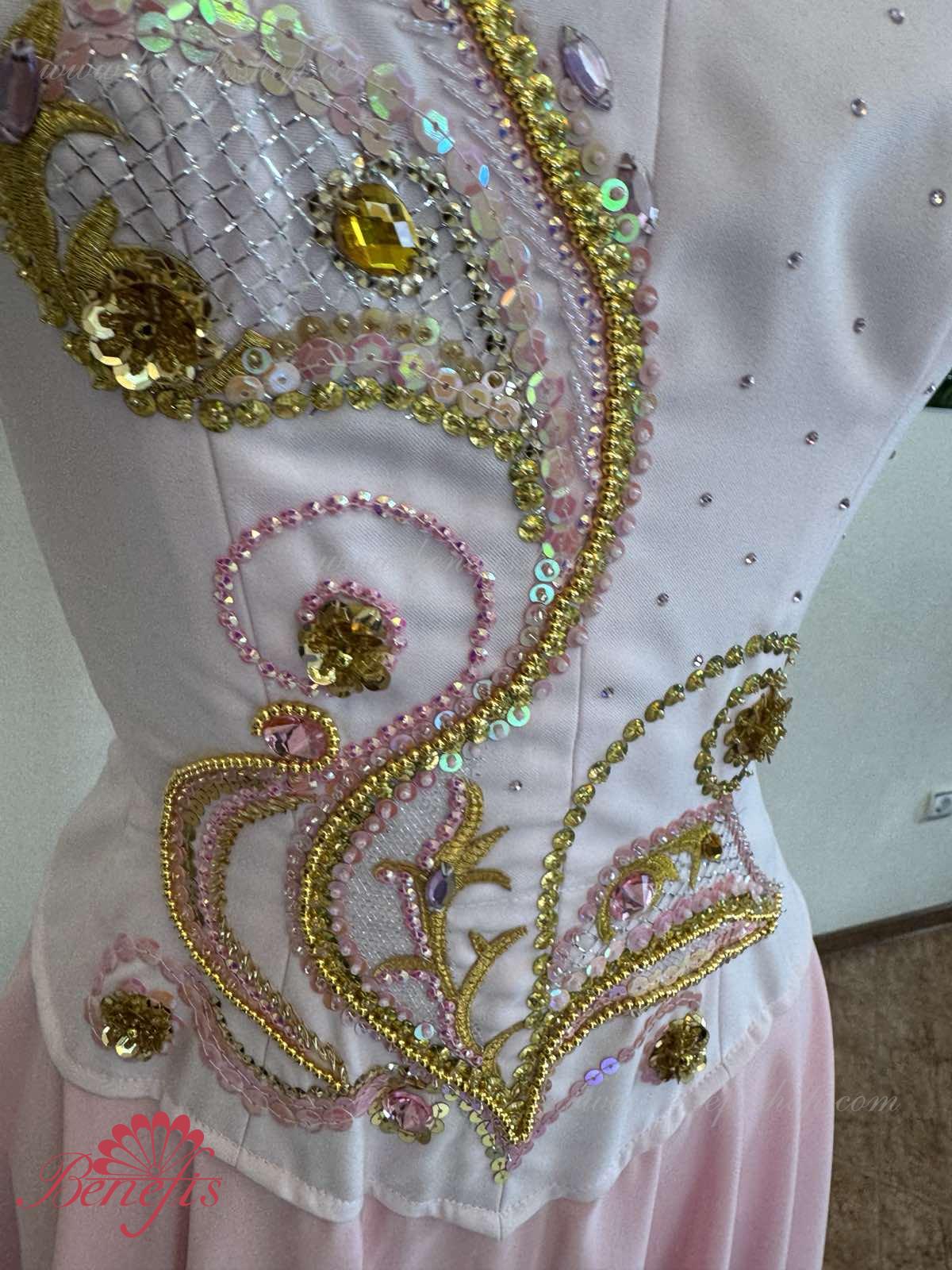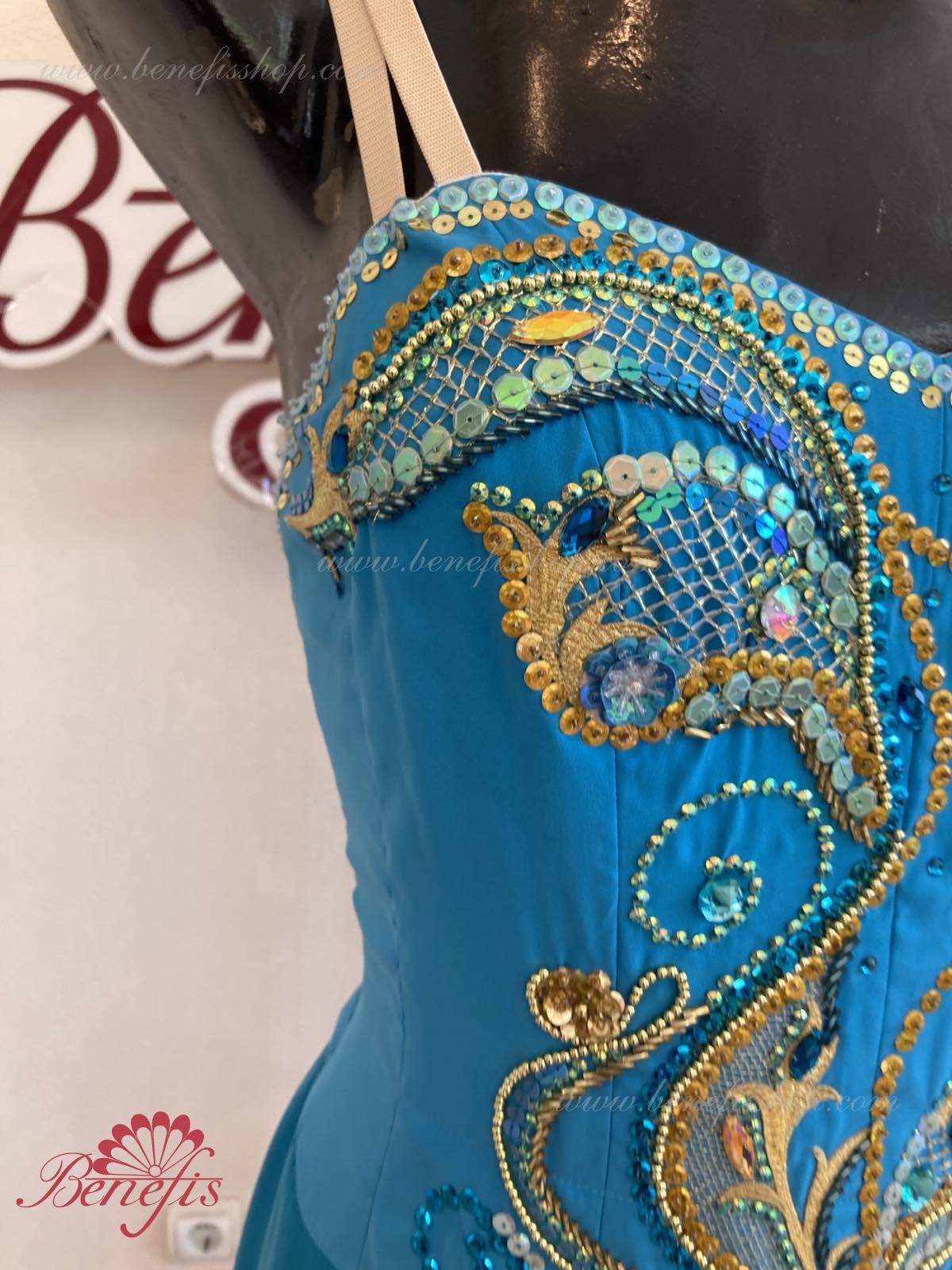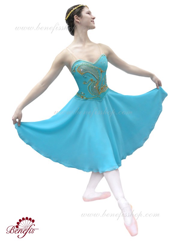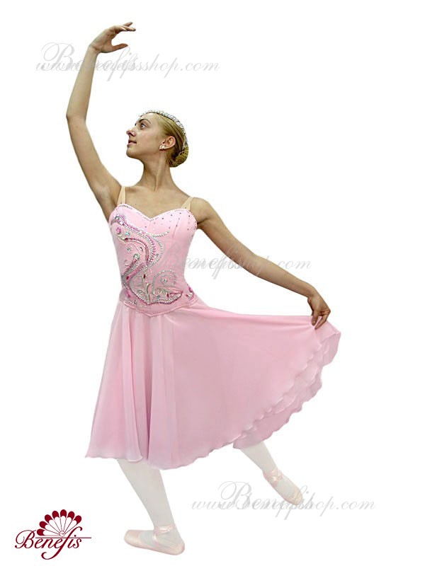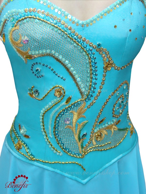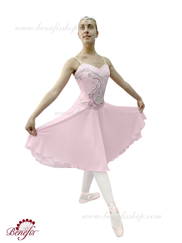 Costumul este format dintr-un corset dens din tesatura semi-stretch cu chiloti cusuti si o fusta din 2 straturi de sifon. O fustă de lungime asimetrică începe de la șolduri.