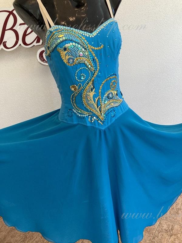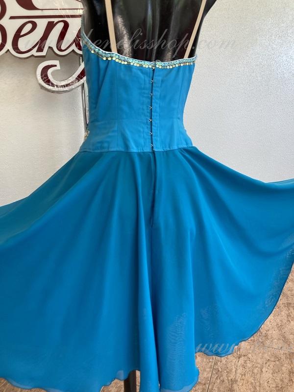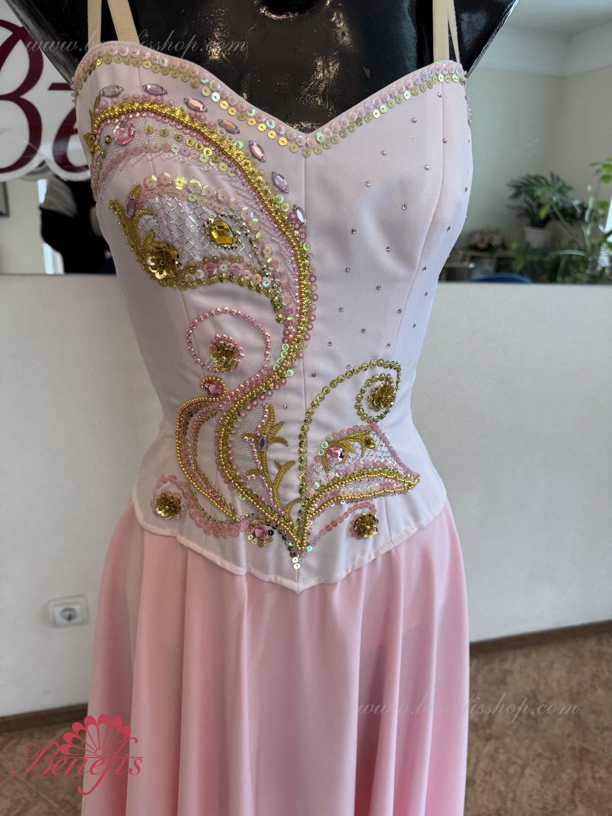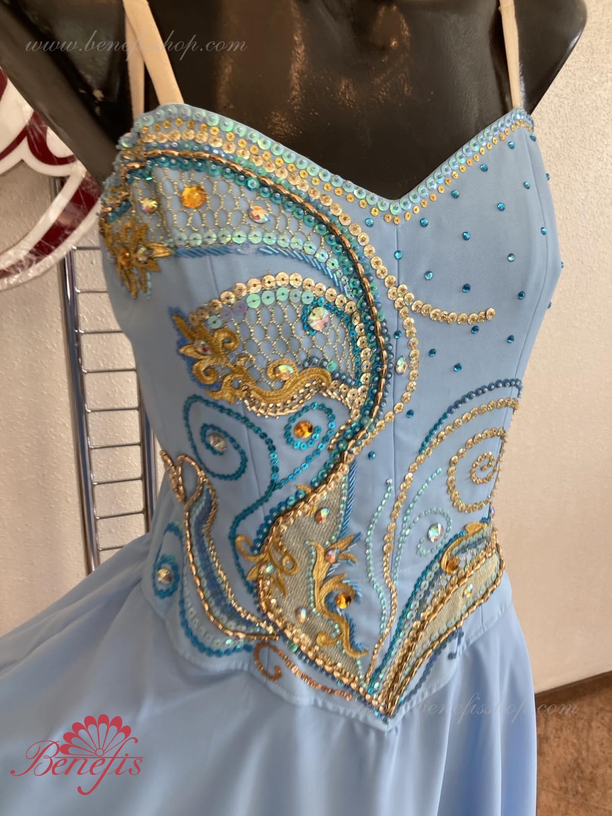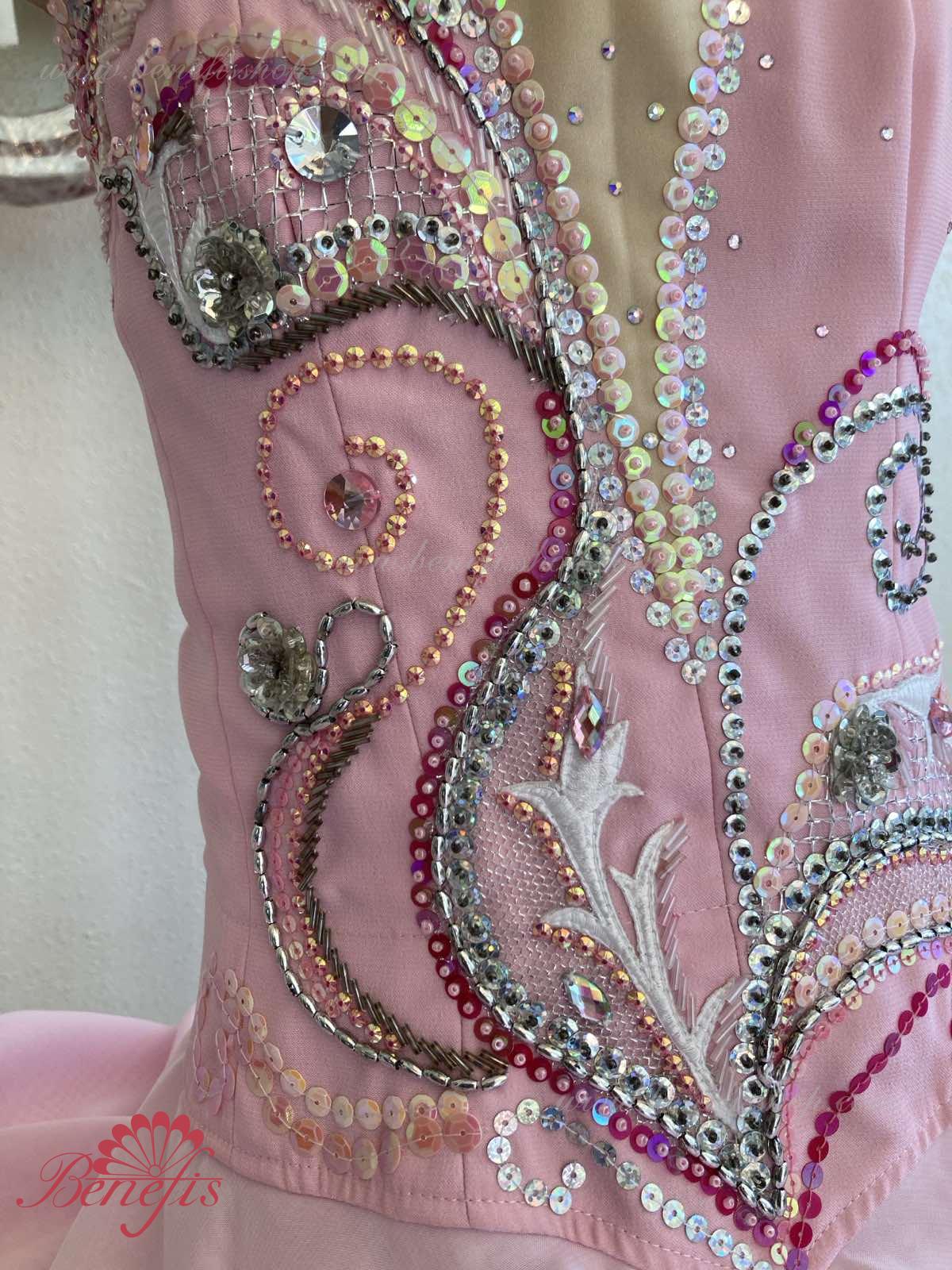 Costumul este format dintr-un corset dens din tesatura semi-stretch cu chiloti cusuti si o fusta din 2 straturi de sifon. O fustă de lungime asimetrică începe de la șolduri.