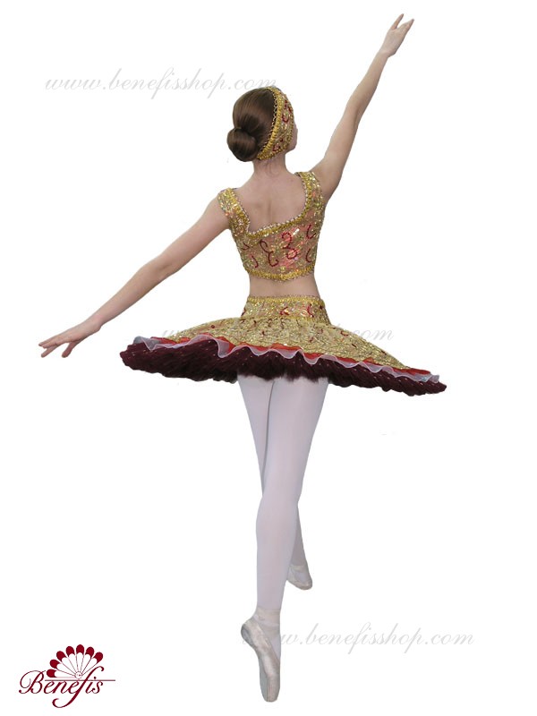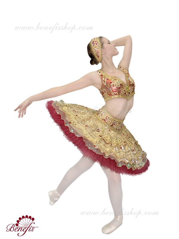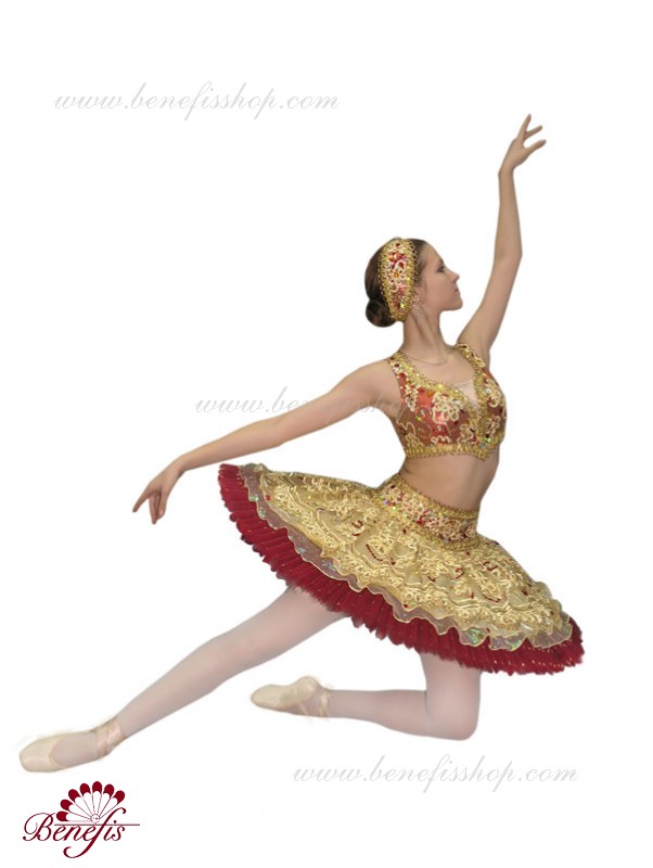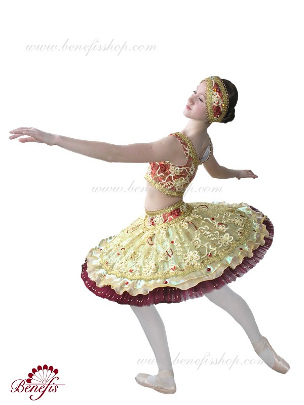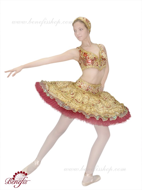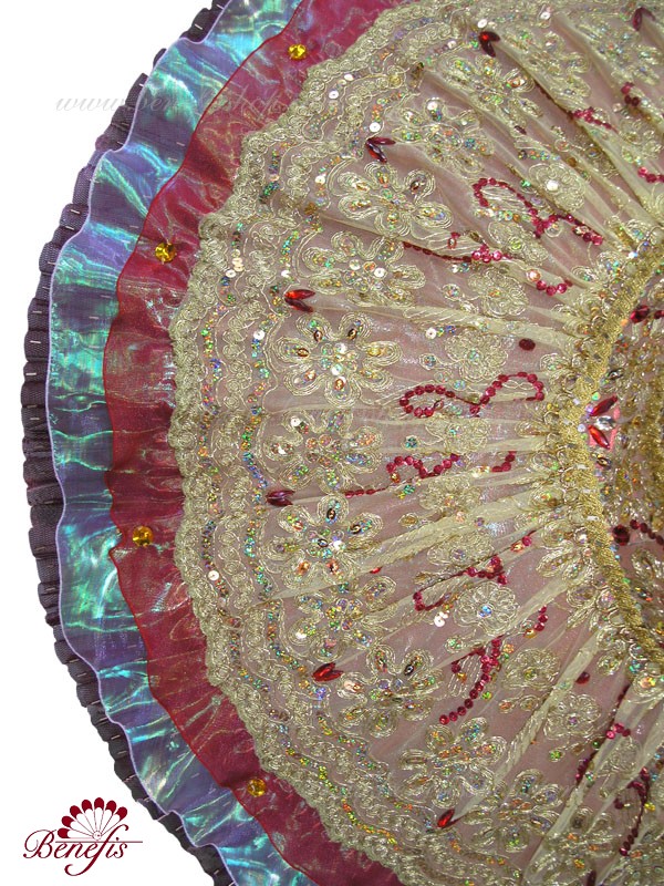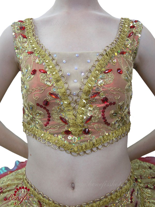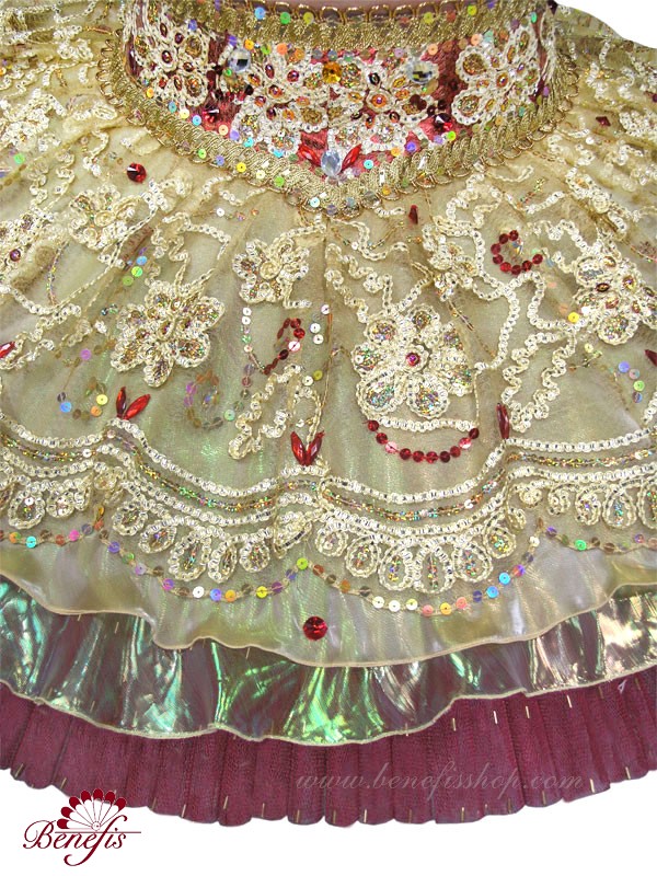 Acest costum oriental somptuos consista dintr-un corsaj scurt si o fusta tutu ce se imbraca pe solduri.