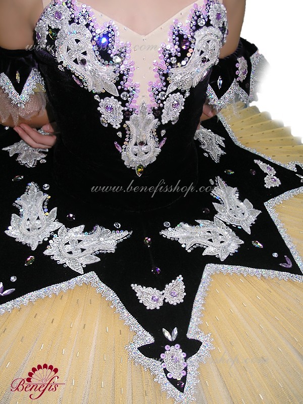 Acest costum profesional de balet este confectionat din tesaturi de doua culori contraste.