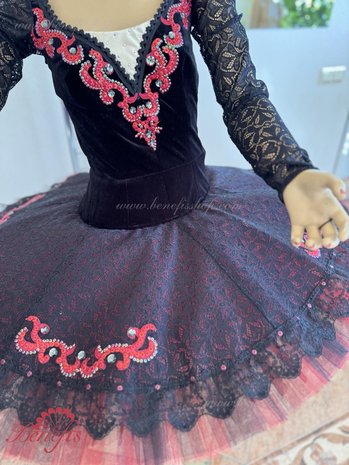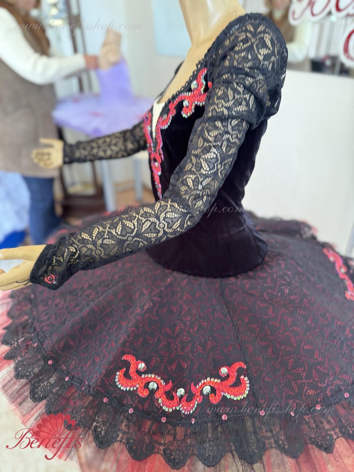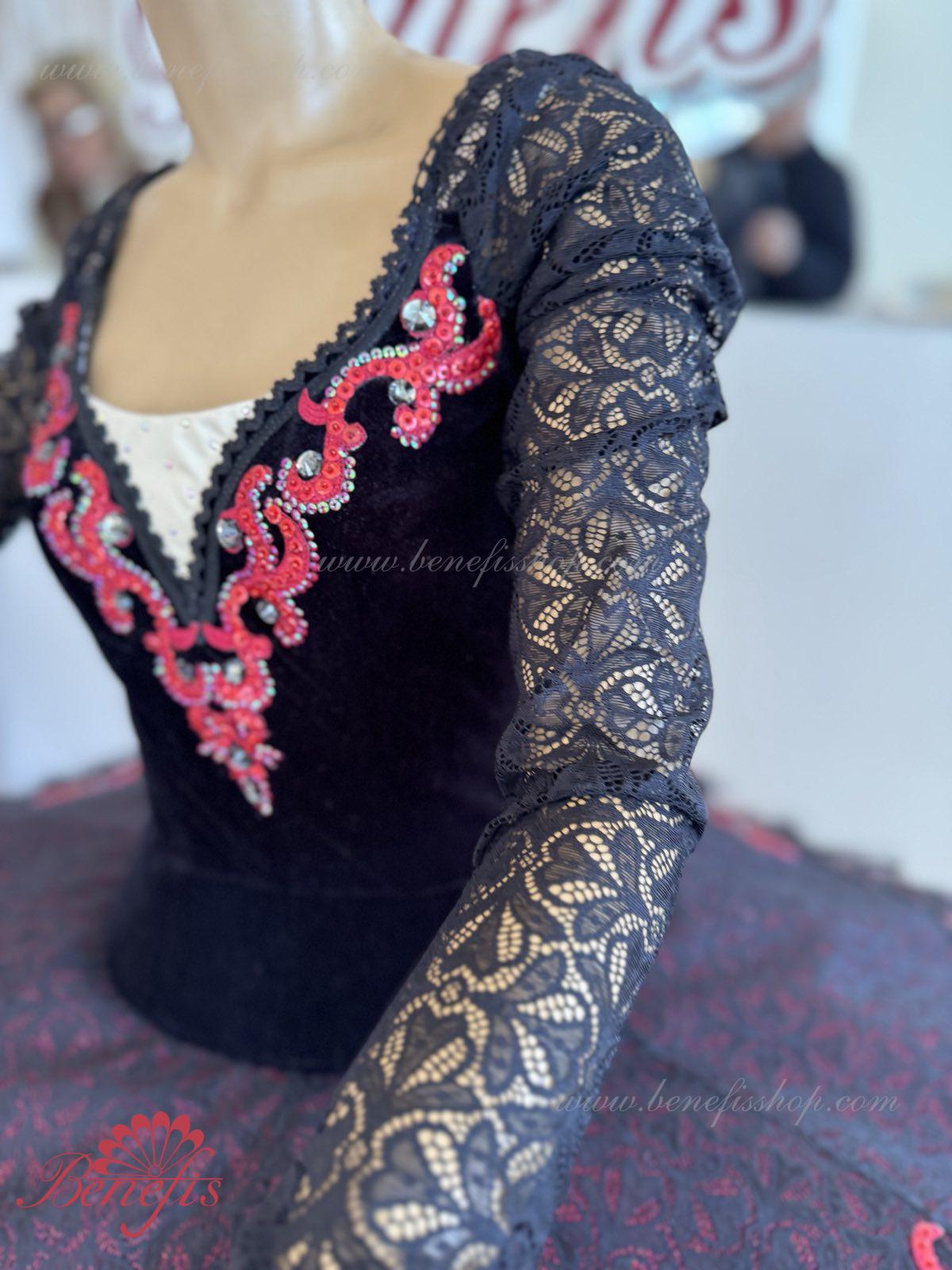 Corsetul este fabricat din tesaturi elastice (catifea) și plastron de culoarea pielii pe piept. Pe corset sunt prezente doua rinduri de cirlige.