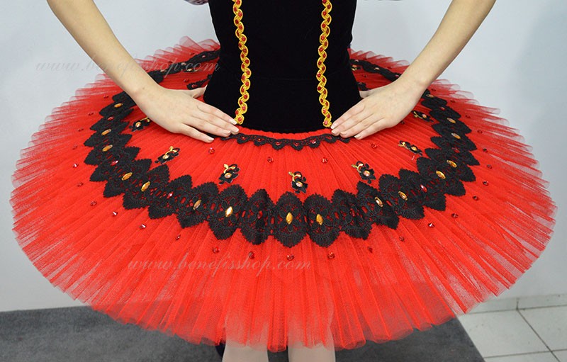 Acesta este un costum de scena, de balet profesional. Costumul se bazează pe modelul de bază T0001B cu margini coborate.