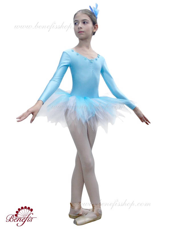 Acesta este un costum profesional de scenă pentru copii. Tricoul este din supplex(lycra) elastic. Fusta este compusă din 3 volane de tul semi-rigid. Ca decor pe fusta sunt frunze în culoarea tricoului.