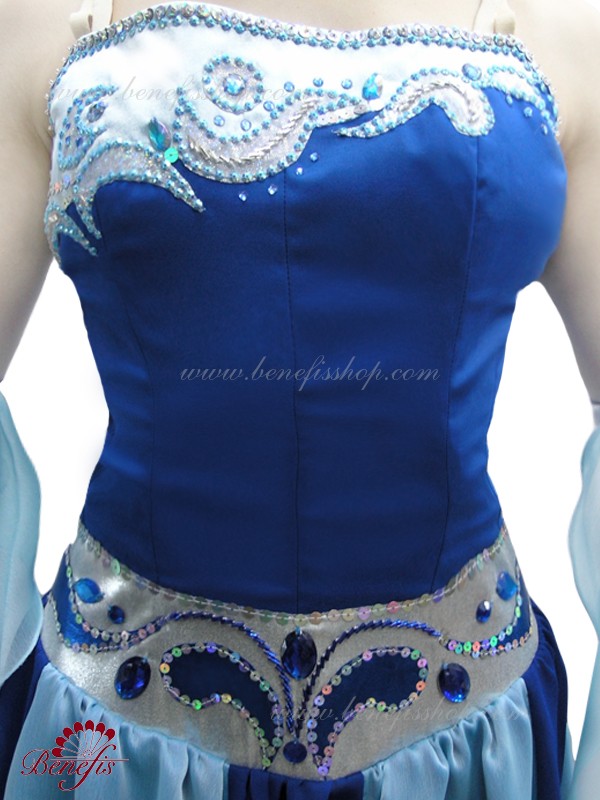 în zona pieptului, puteți strânge cordonul interior pentru o reglare convenabilă.Fusta de jos nu prea pufoasa cusută din tul ușor moale și acoperit cu un sifon delicat.Ca decor sunt folosite țesături strălucitoare,paiete, margele de steclă si pietre bogate.La costum lucrează doar designeri profesioniști și croitori.Originalitatea costumului este redata de lucrul manual al decoratorilor.