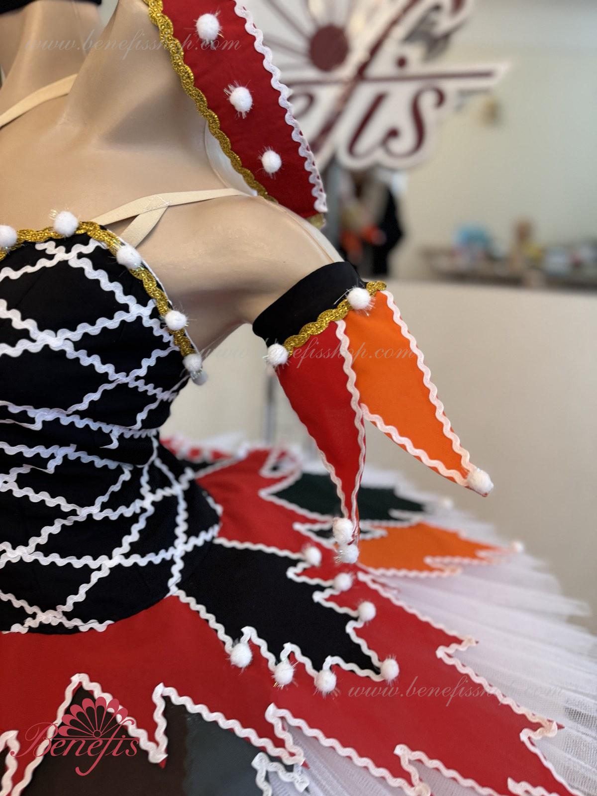 Acesta este un costum profesionist, scena, de balet. Corsetul se bazeaza pe modelul de baza T 0009 din tesatura semi-elastica, densa. Este fixat la spate pe două rânduri de cârlige și bucle; pentru reglarea convenabilă în zona pieptului, de asemenea corsetul poate fi reglat cu un șnur interior.