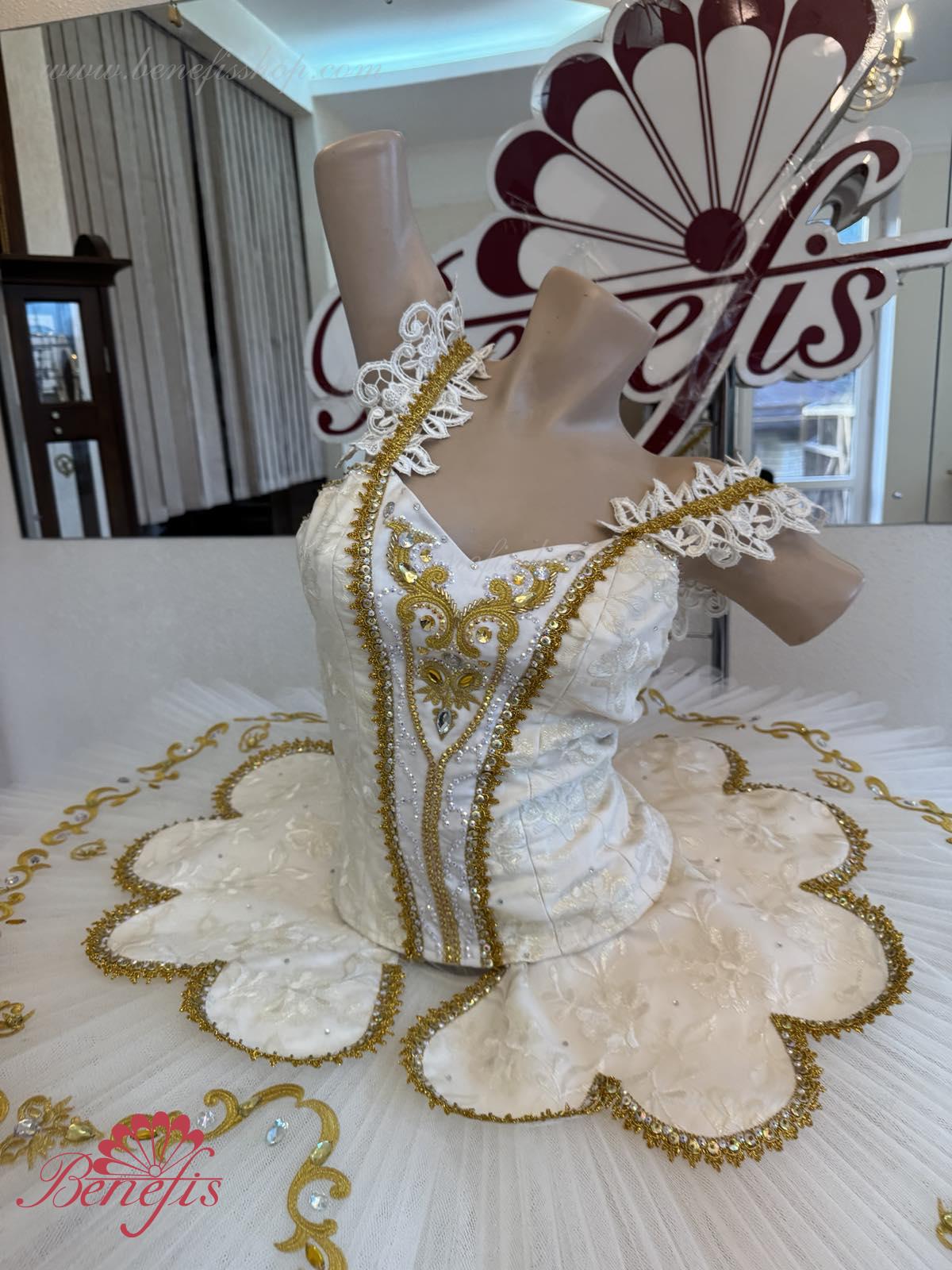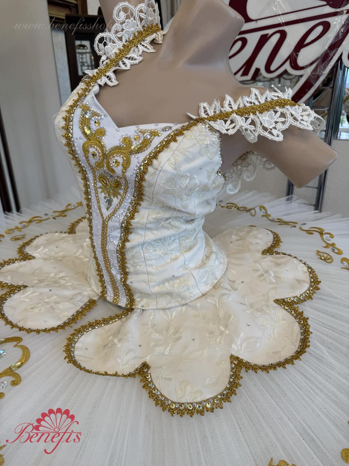 Acest costum poate fi utilizat in baletele “Sarbatoarea florilor in Cinzano ”, “Frumoasa Adormita” , numarul de concert Grand pas Classique.