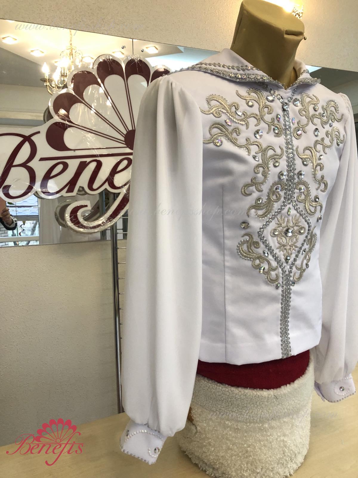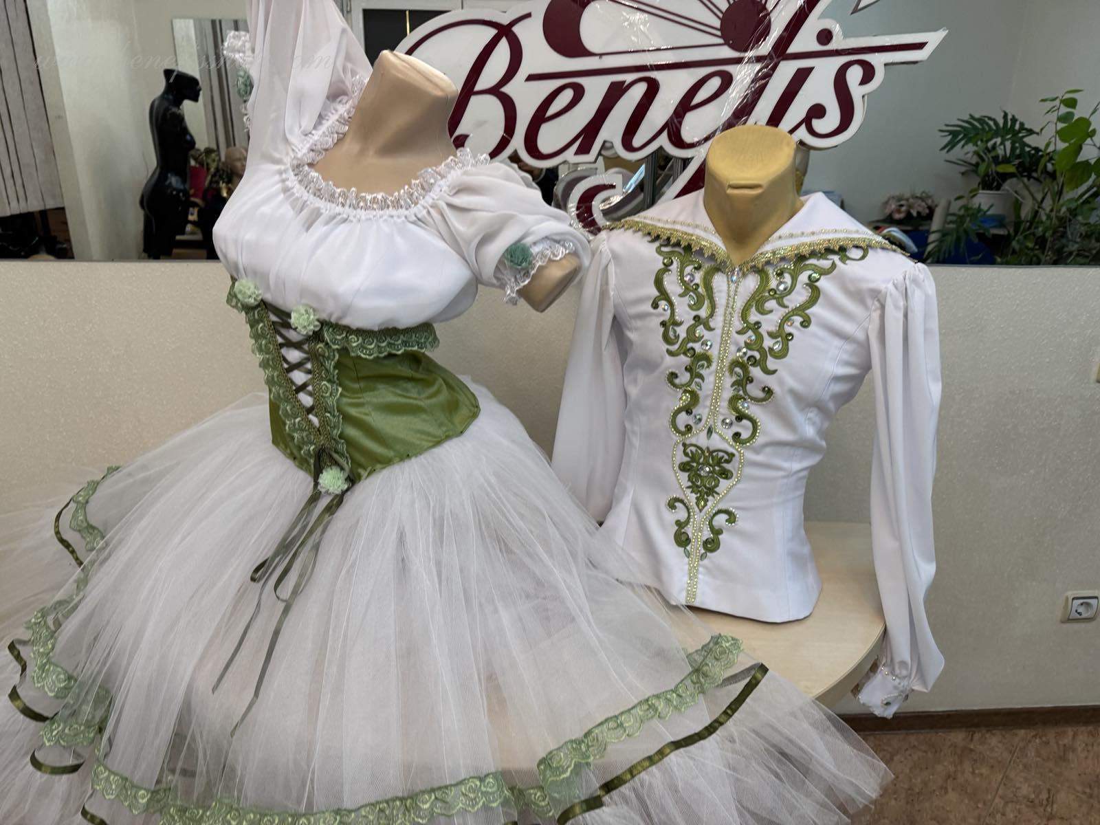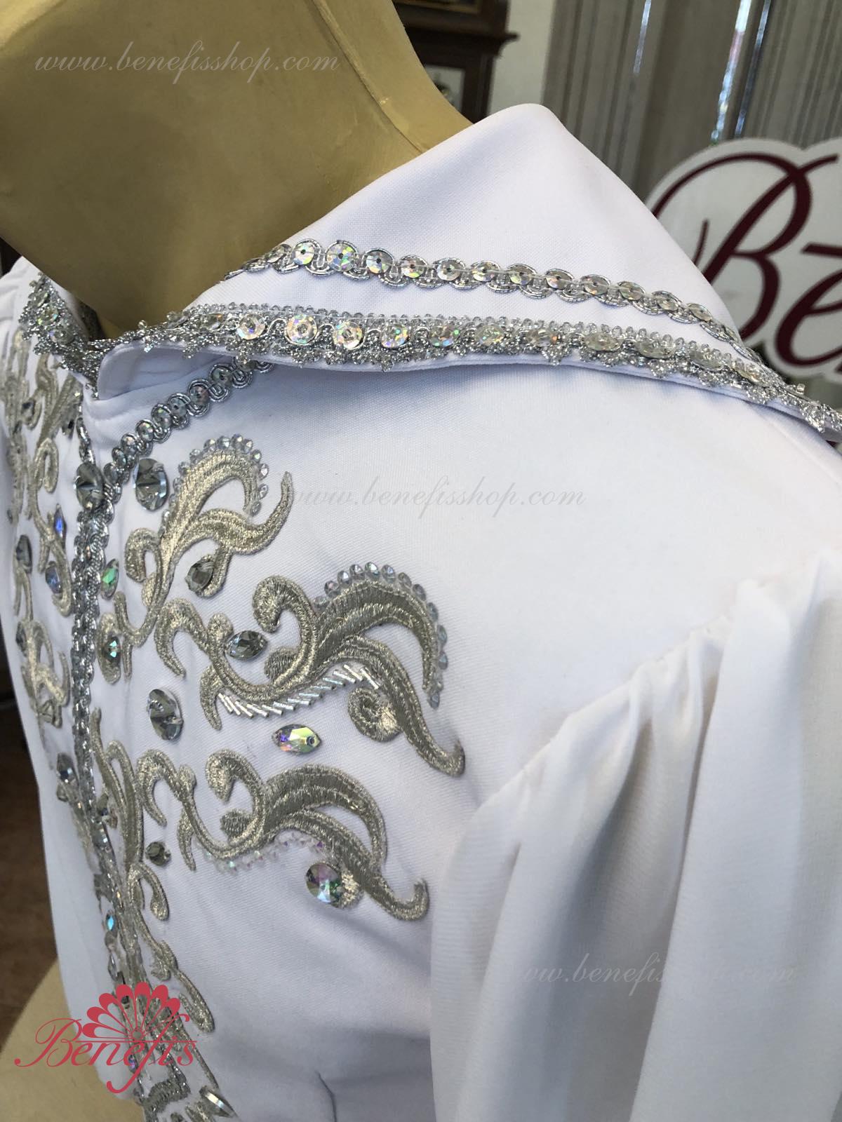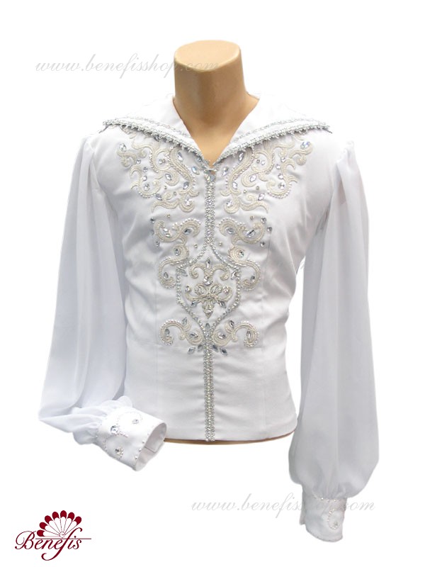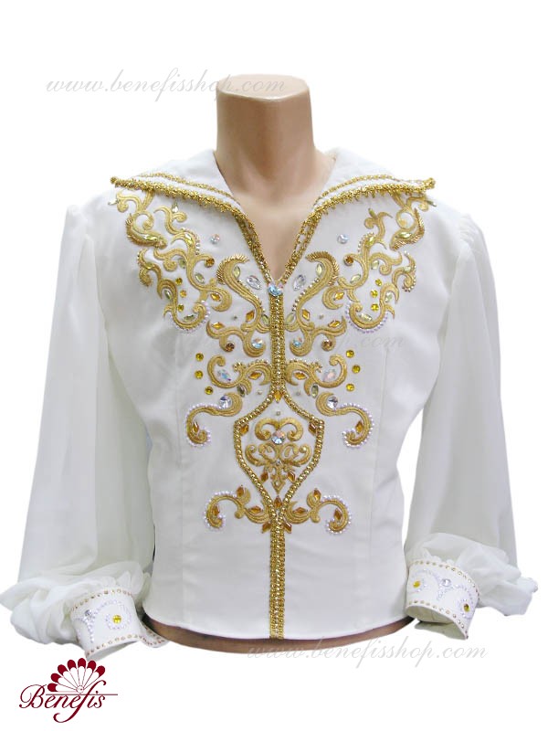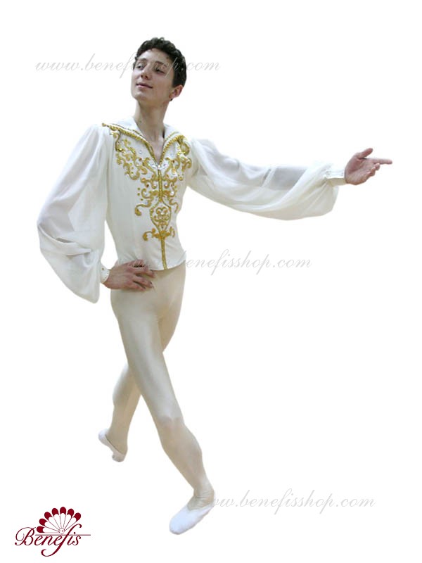 Costumul de barbat este fabricar dintr-o tesatura densa cu mineci de sifon si guler rasfrint. Se incheie in spate pe cirlige. Decorul bogat pe intreaga lungime a jacketului este compus din nenumarate applicatii, strase, paiete. Gulerul rasfrint subliniaza aspectul elegant al costumului. Mansetele din sifon ale minecilor sunt decorate cu paiete si strase si se incheie cu nituri. Acest costum este folosit la parti lirice si variatii clasice de balet.