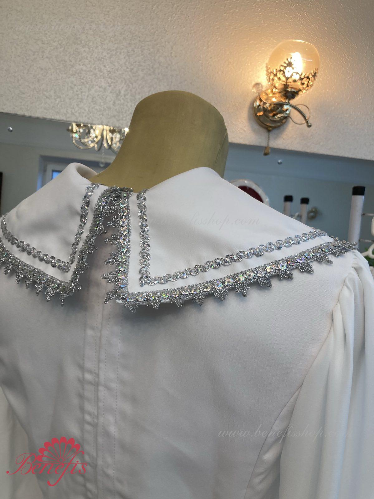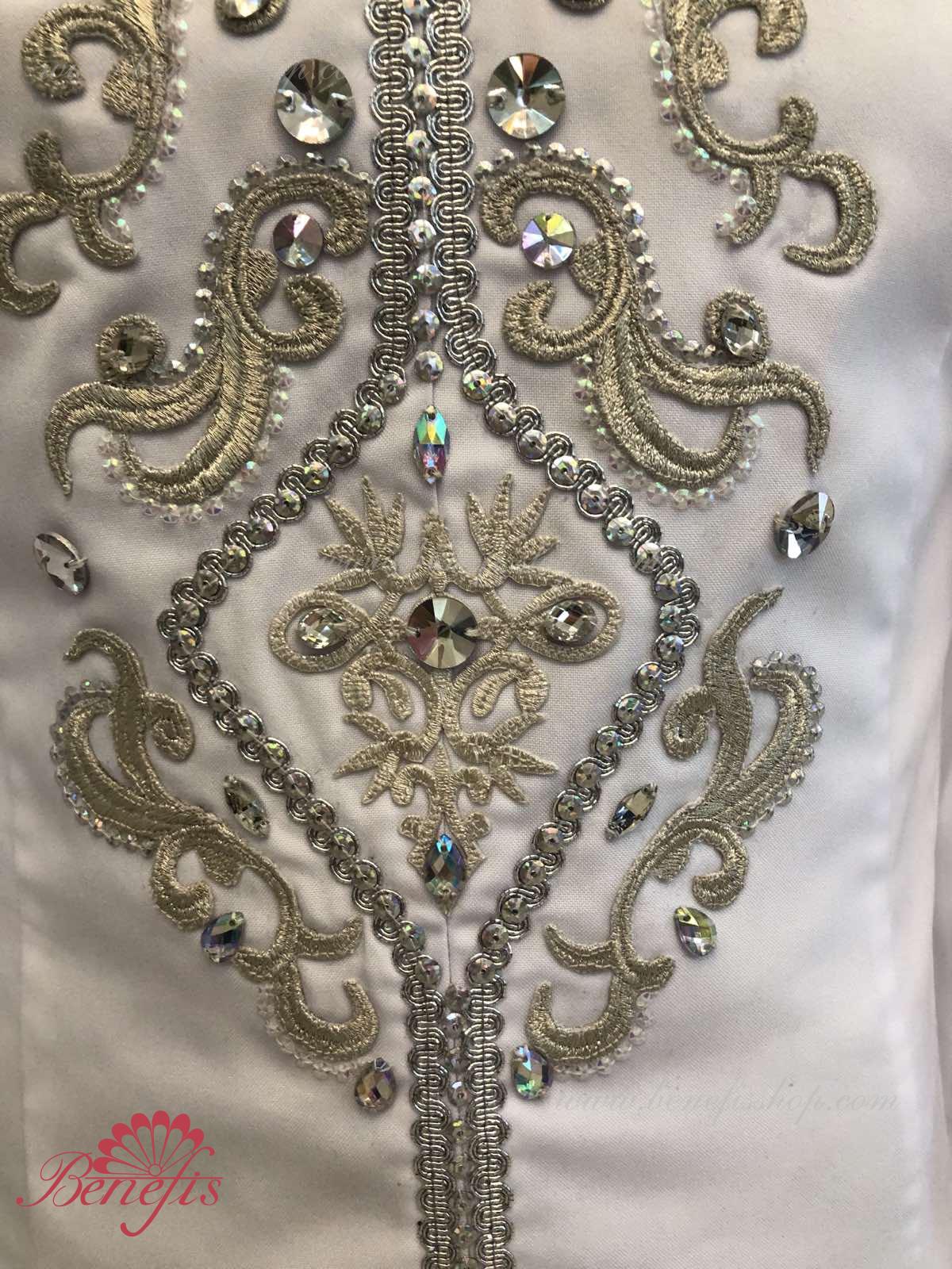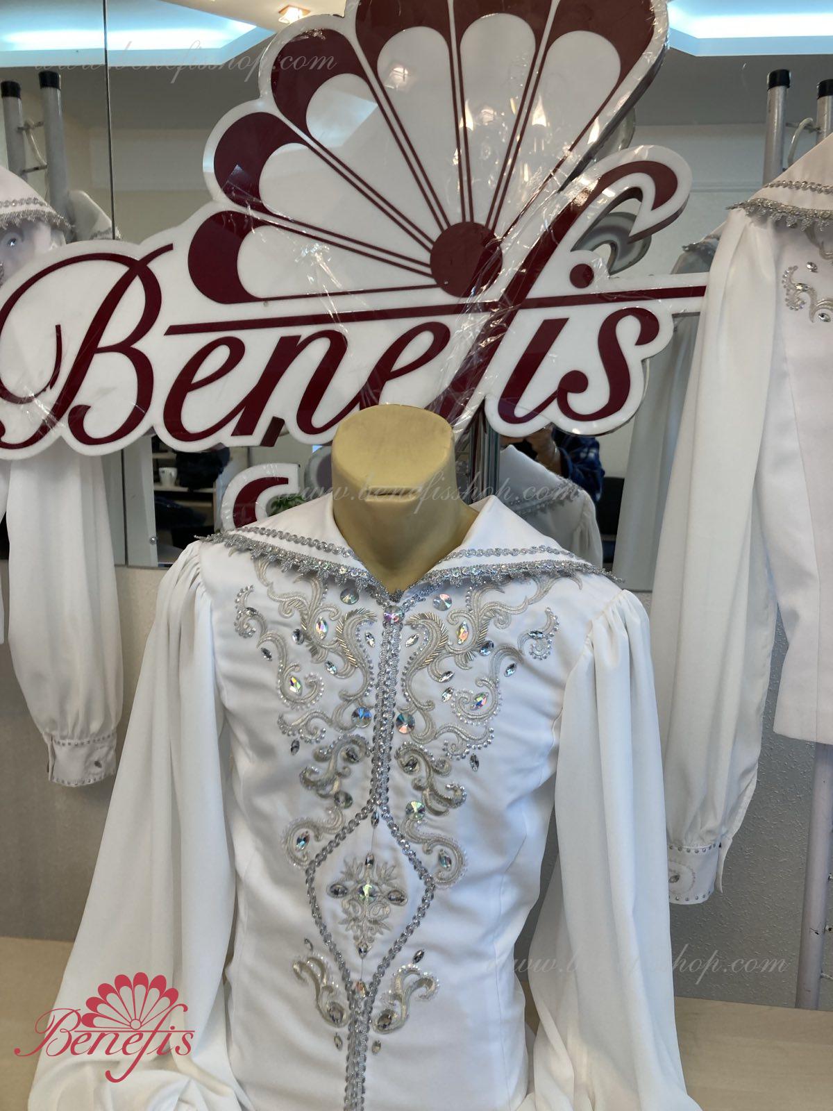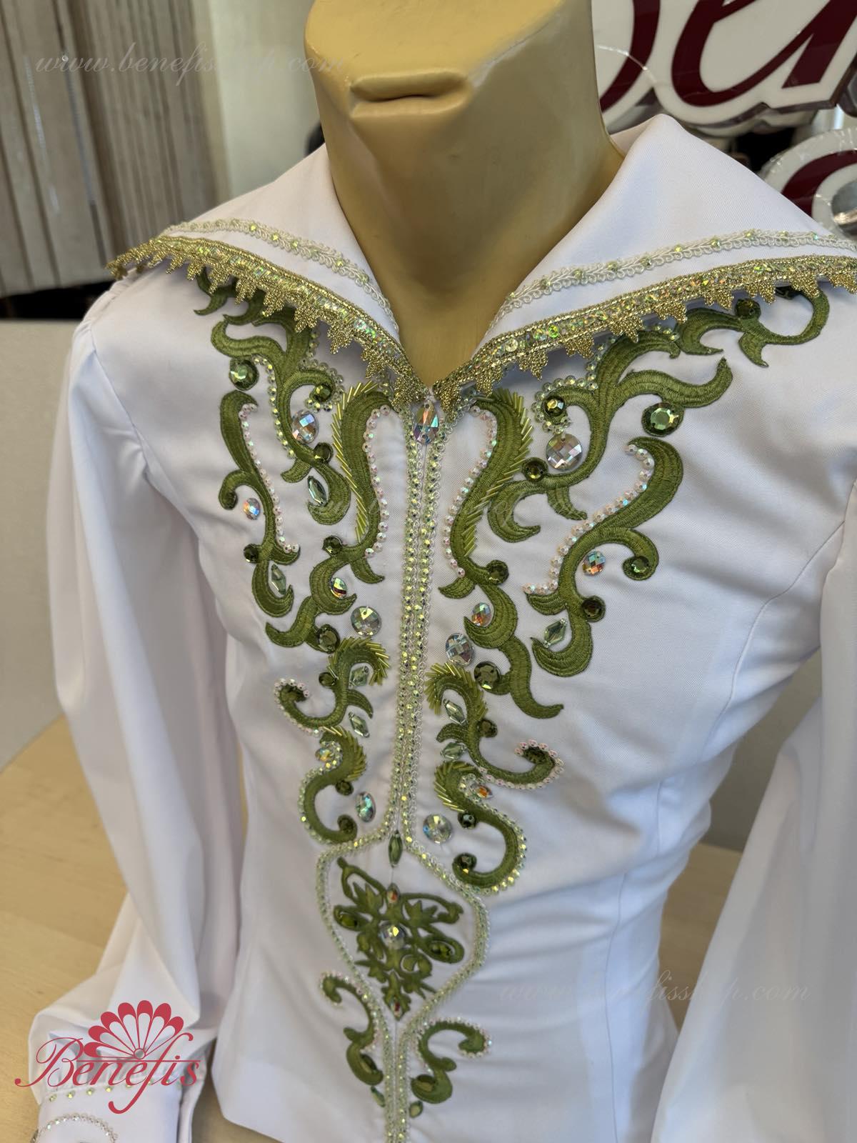 Costumul de barbat este fabricar dintr-o tesatura densa cu mineci de sifon si guler rasfrint. Se incheie in spate pe cirlige. Decorul bogat pe intreaga lungime a jacketului este compus din nenumarate applicatii, strase, paiete. Gulerul rasfrint subliniaza aspectul elegant al costumului. Mansetele din sifon ale minecilor sunt decorate cu paiete si strase si se incheie cu nituri. Acest costum este folosit la parti lirice si variatii clasice de balet.