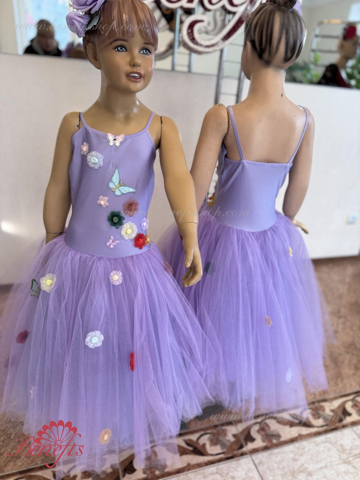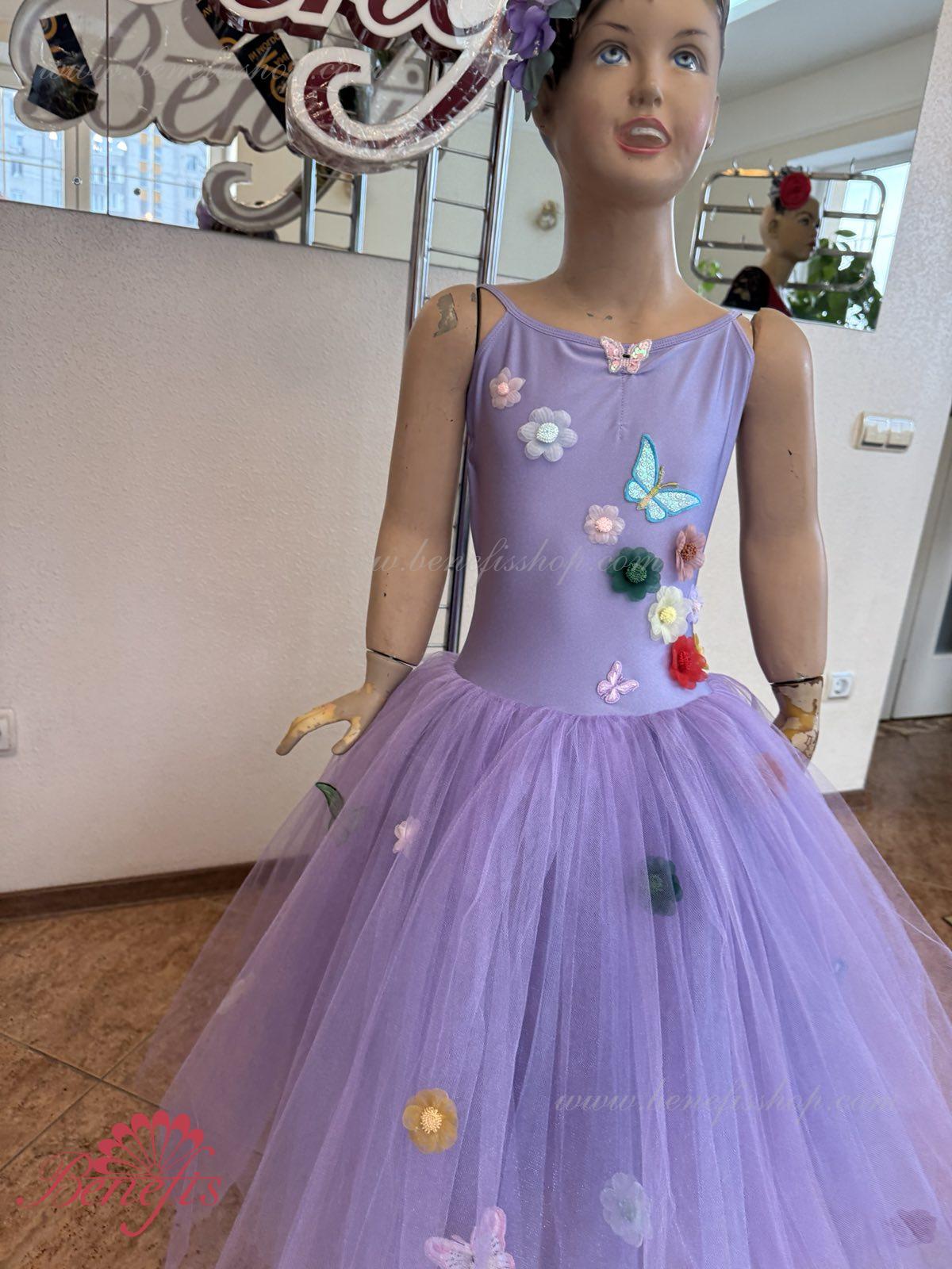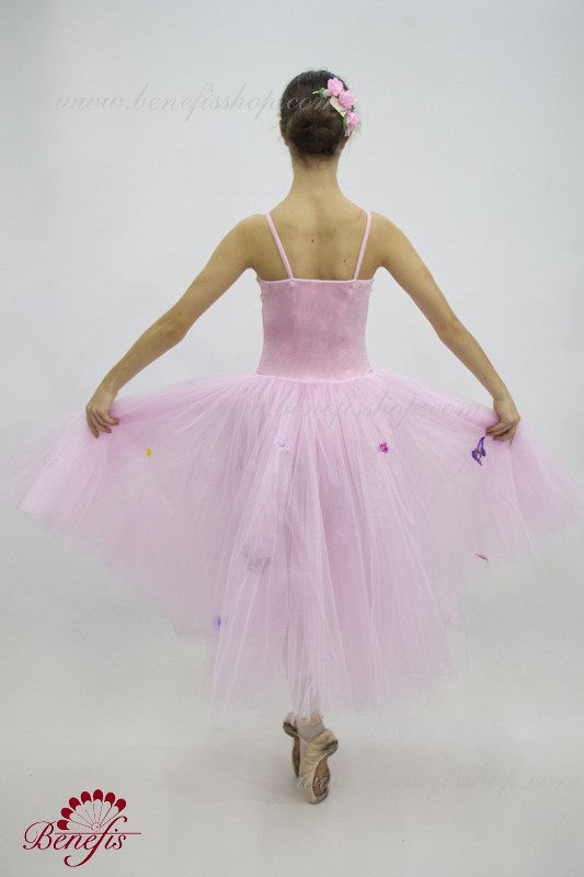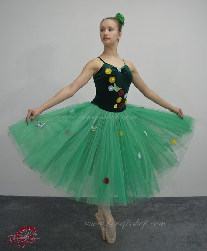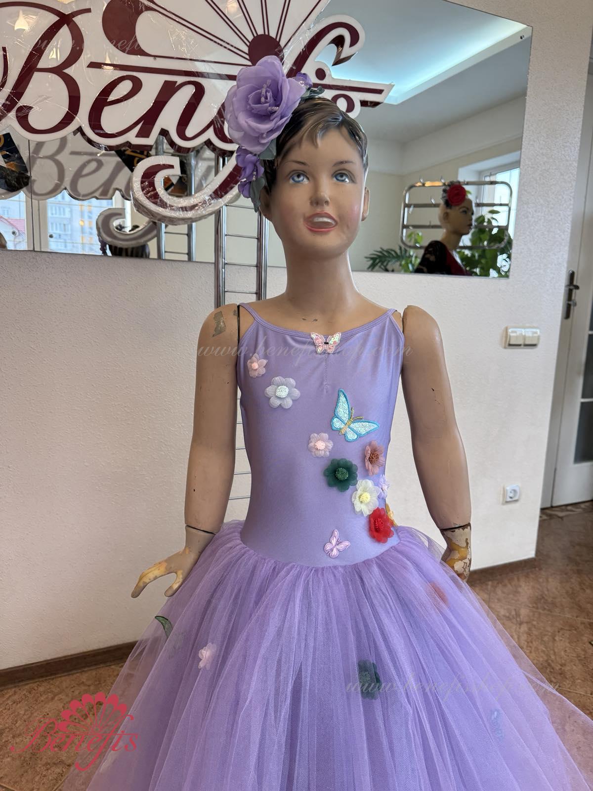 Acest costum profesional de balet este confectionat in baza unui tricou elastic (model T 0008) si unei fuste largi din patru straturi legere.