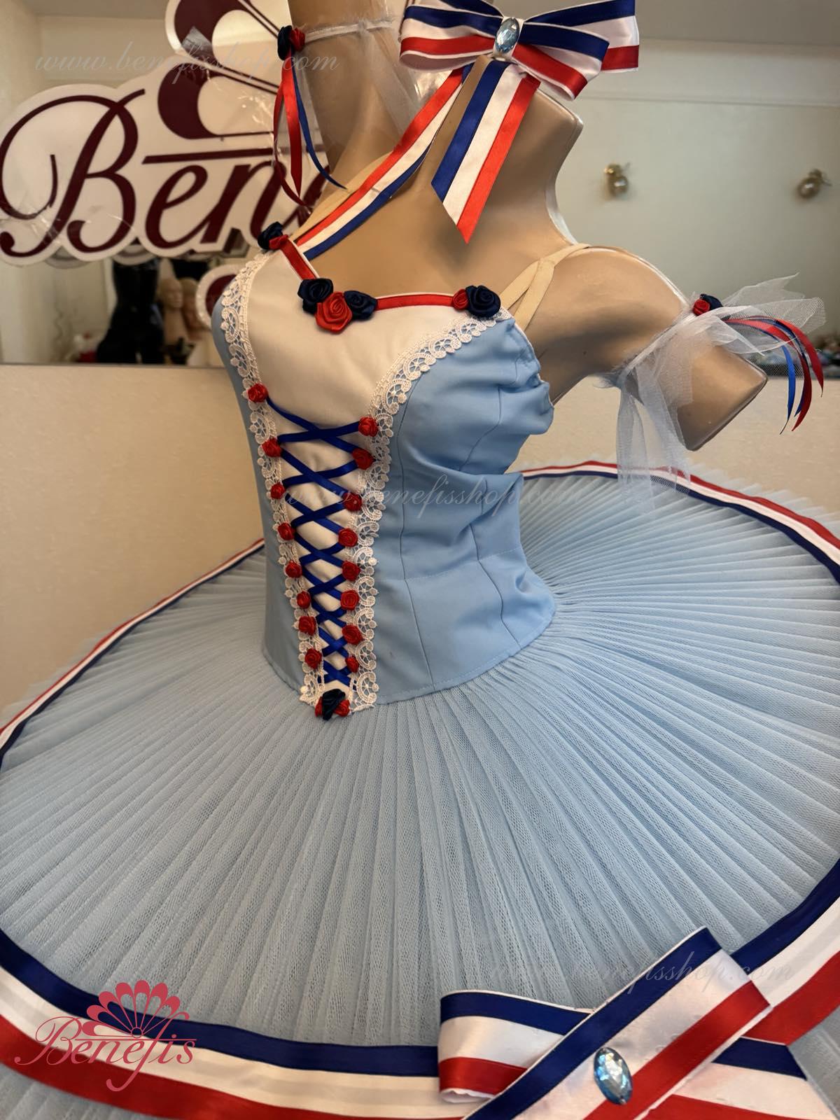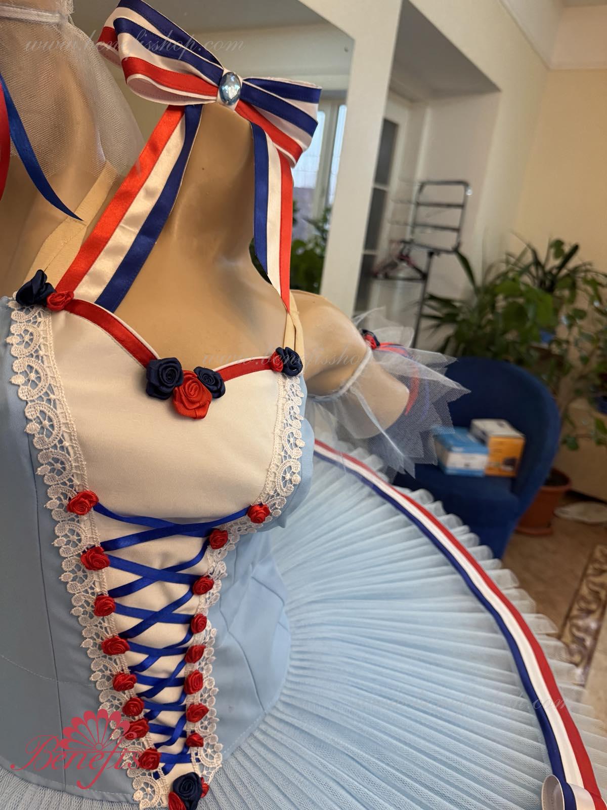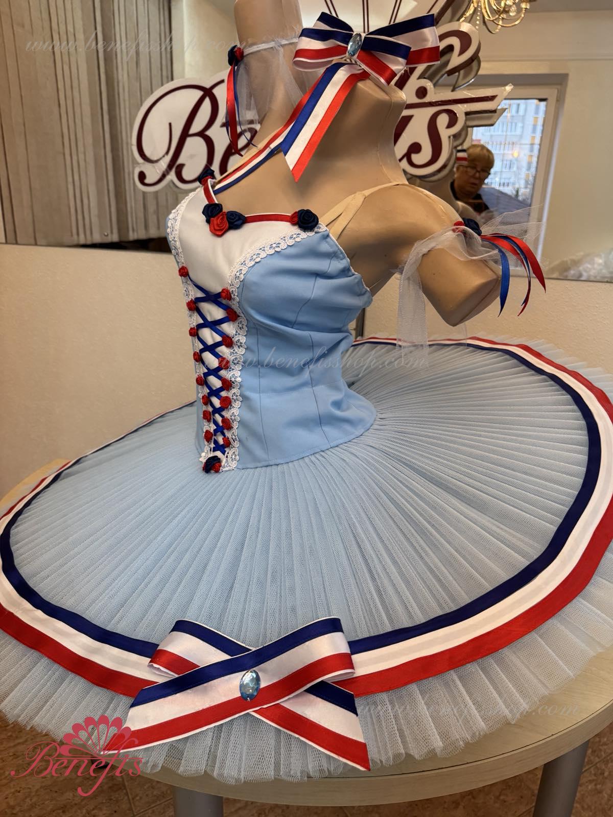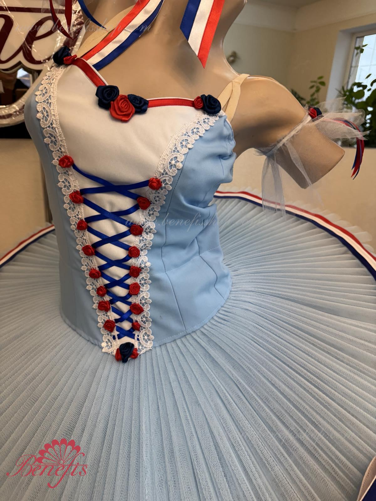 Panglica tricoloră care simbolizează steagul francez completează perfect costumul, care este conceput pentru baletul "Flacăra Parisului".