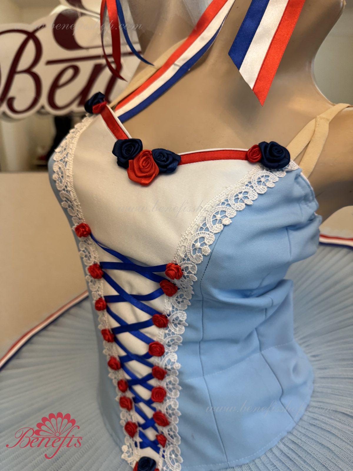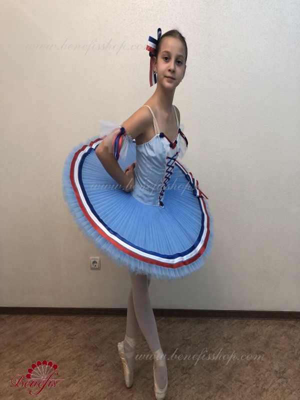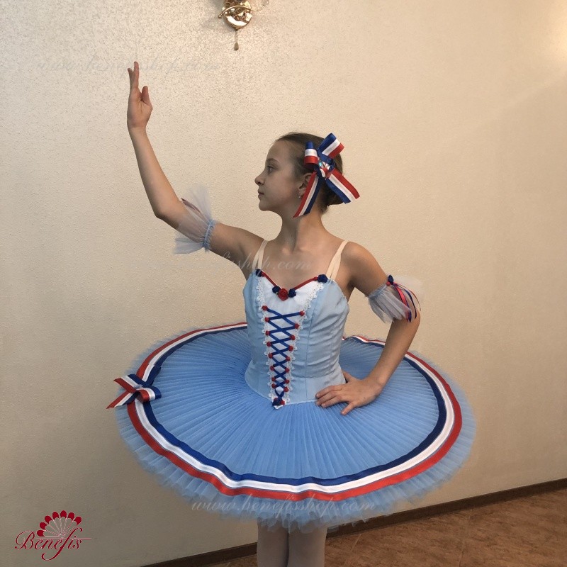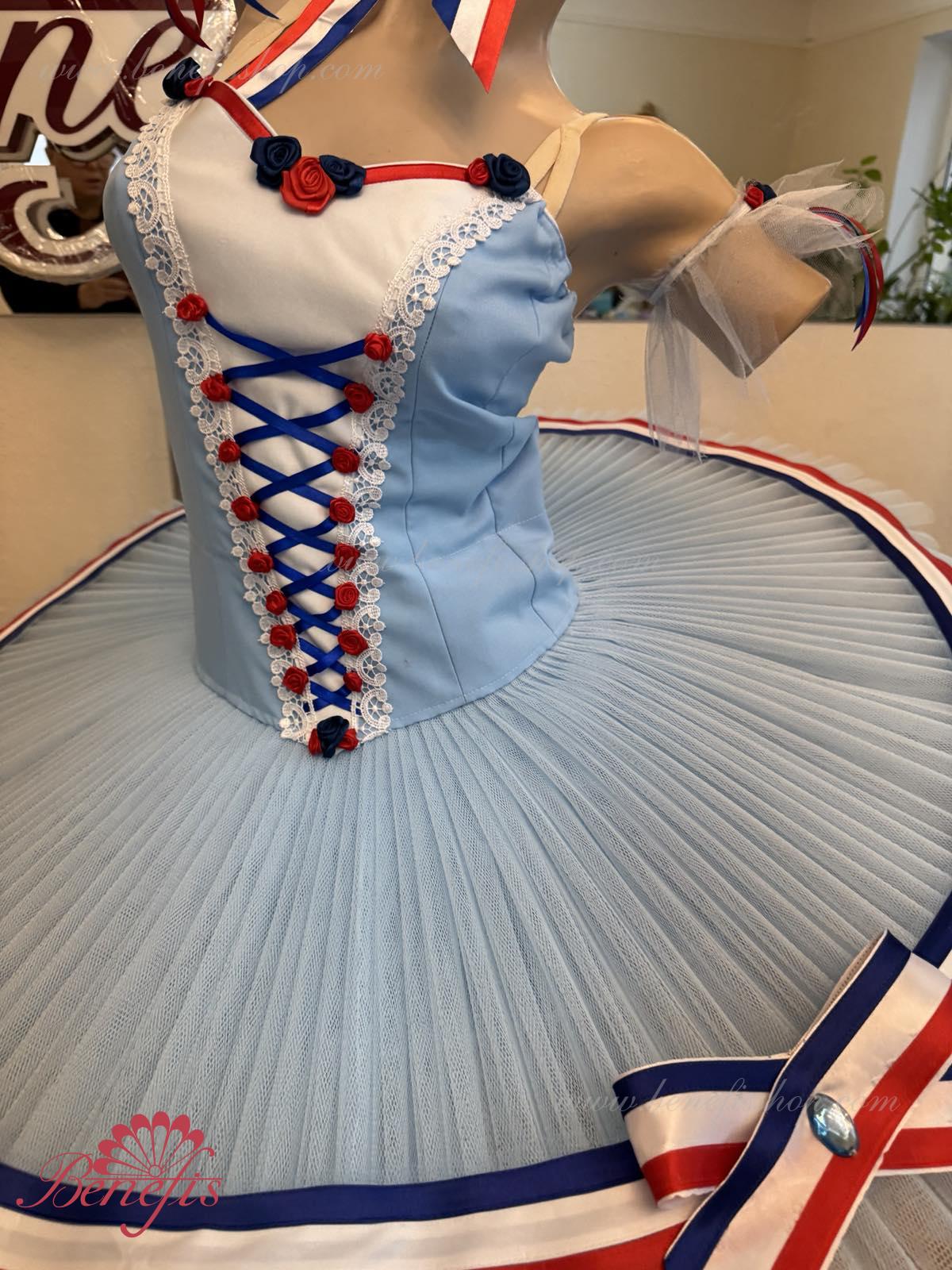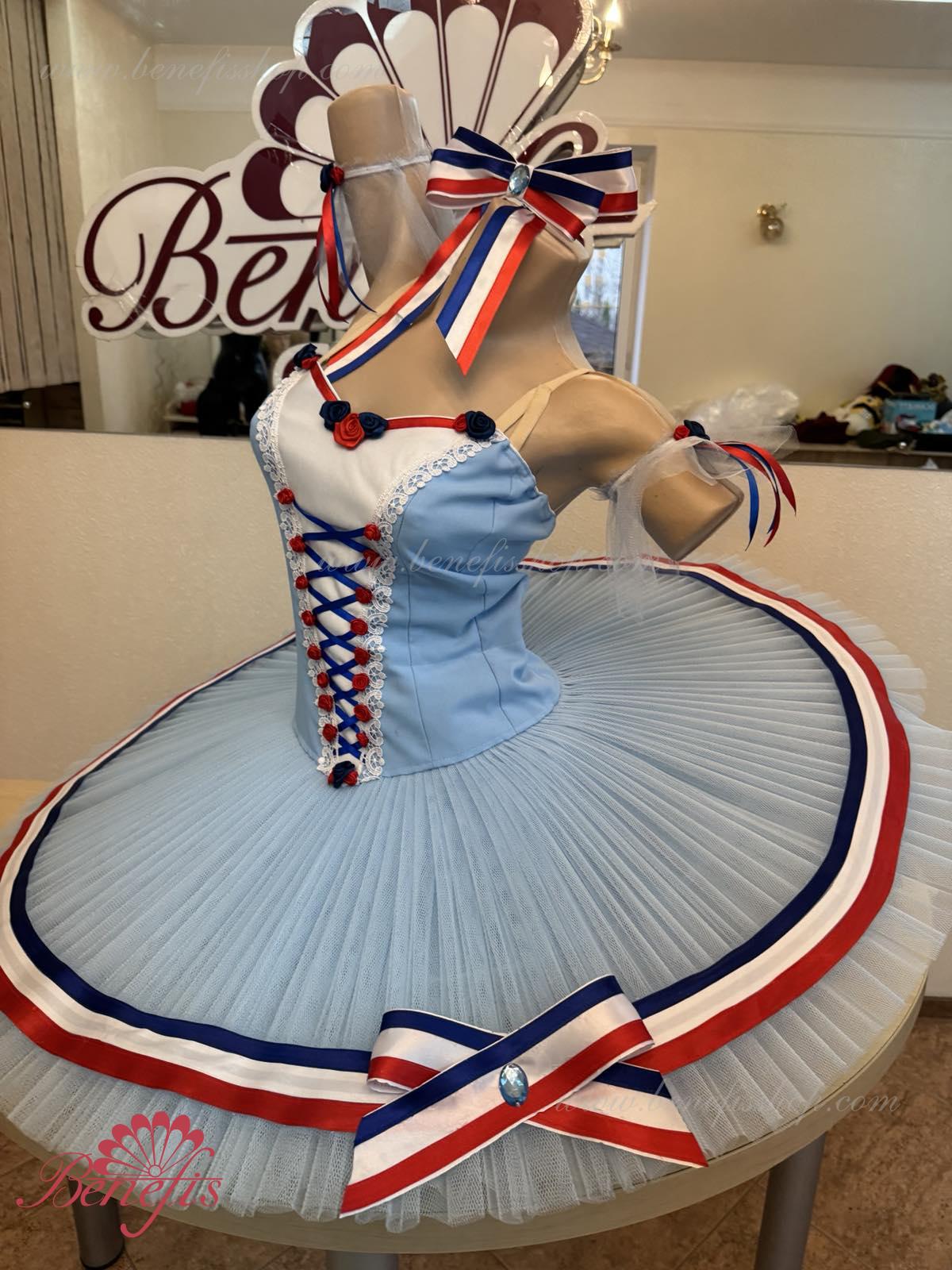 Panglica tricoloră care simbolizează steagul francez completează perfect costumul, care este conceput pentru baletul "Flacăra Parisului".