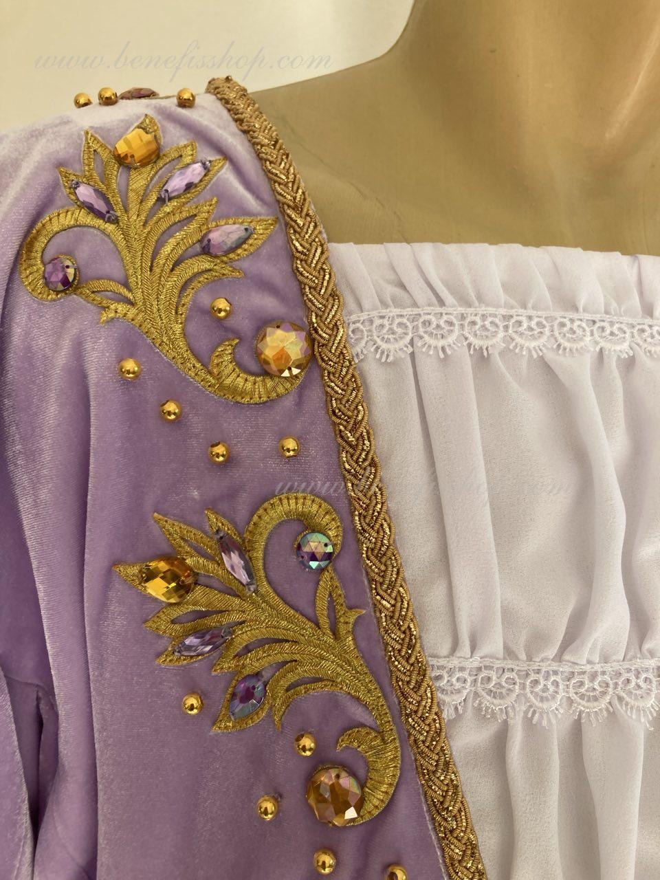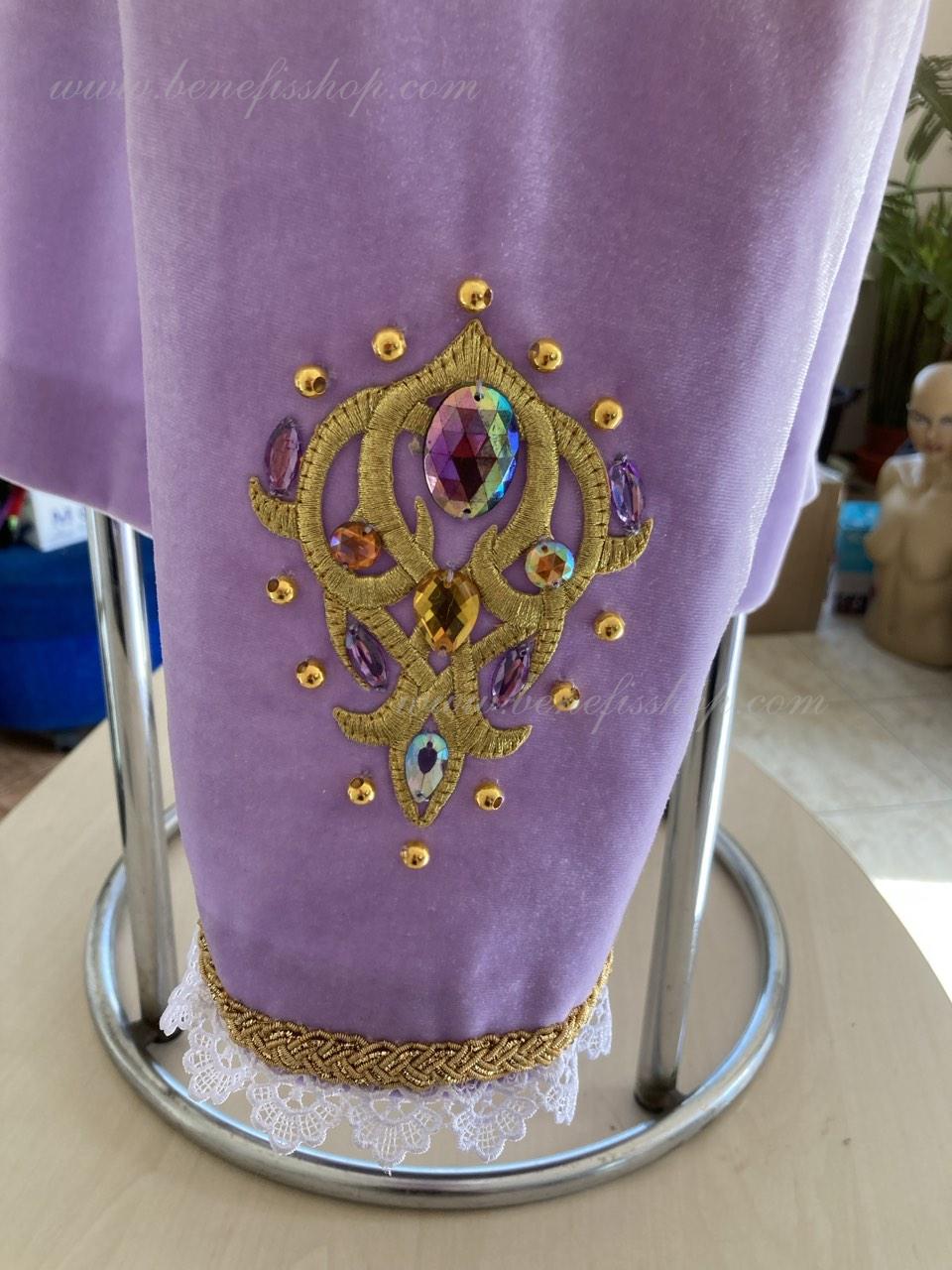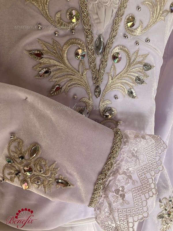 Se fixează în spate cu două rânduri de bucle. Ca decor, se folosesc împletituri, aplicații, paiete, strasuri și dantelă.