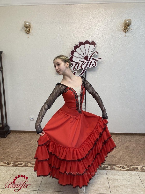 Detalii: costum, maneci. Acest costum profesional de balet este realizat pe baza unei fuste profesionale cu chiloți.