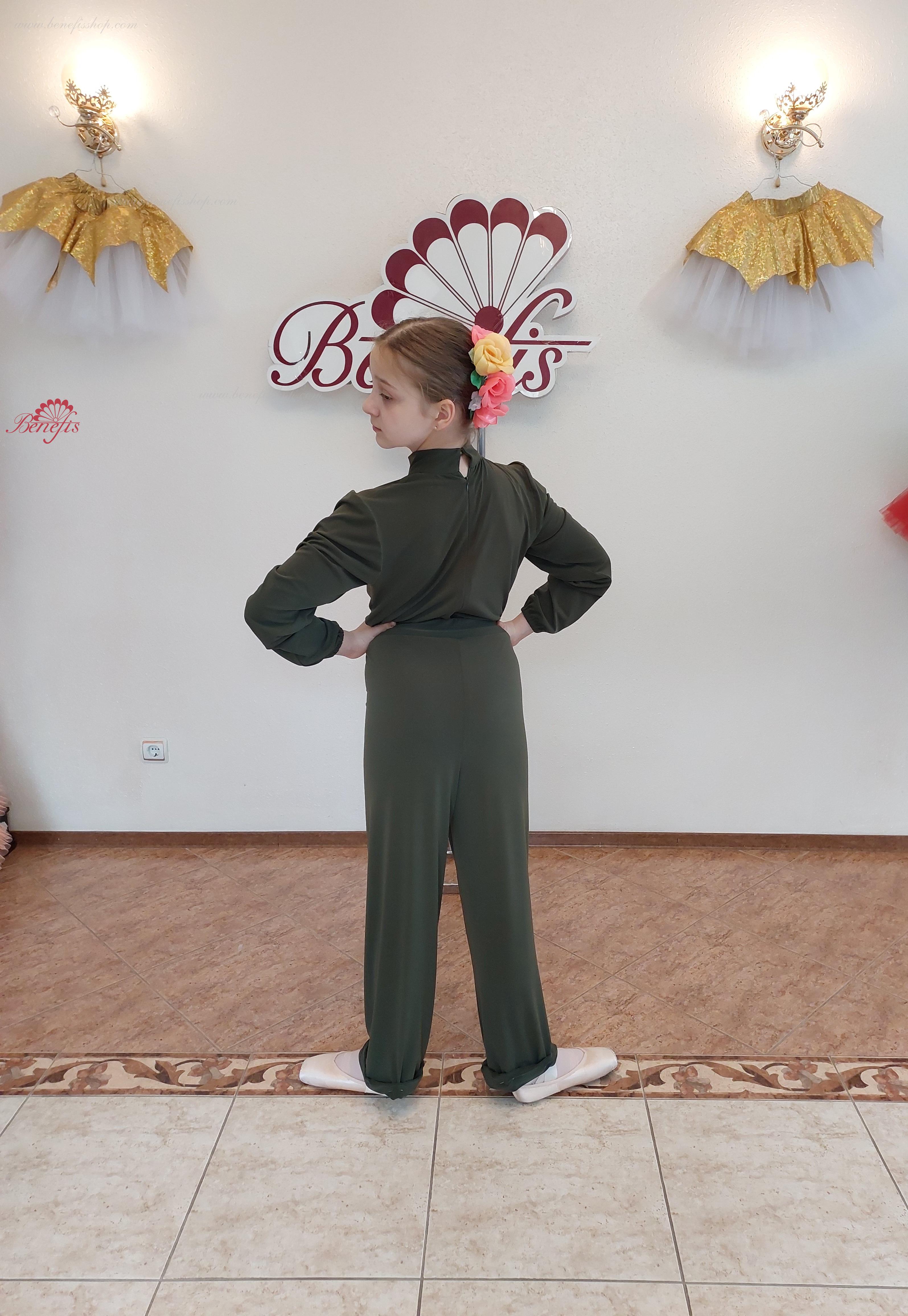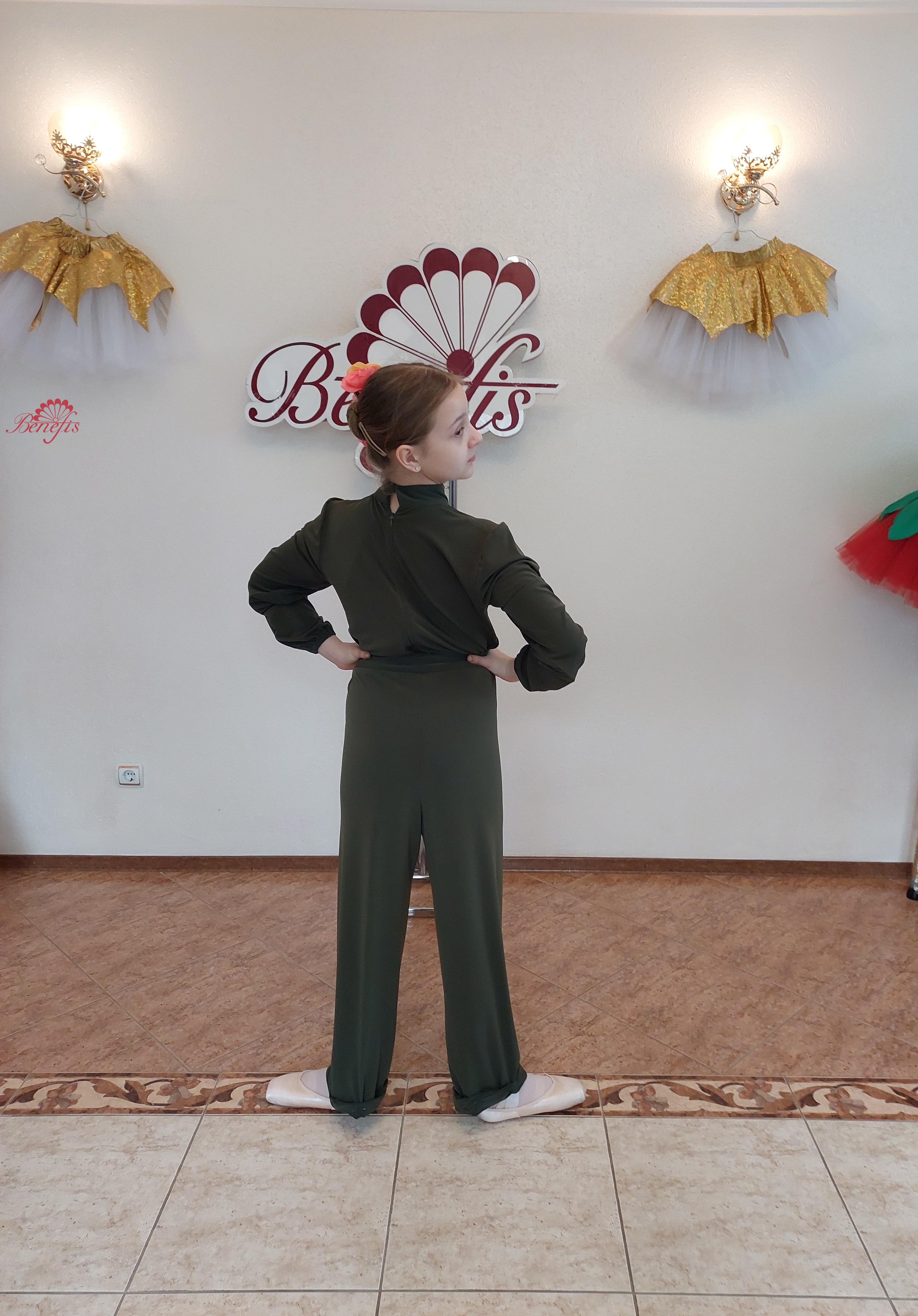 Detalii-salopetă și eșarfă. Produsul din țesătură elastică este fixat cu fermoar în spate. Eșarfă decorativă în jurul gâtului.